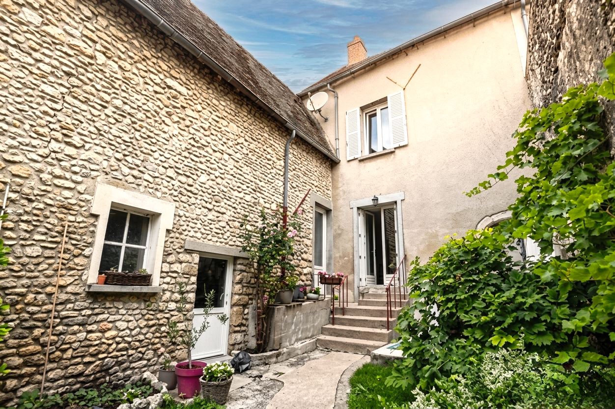 Attenant à la partie dhabitation, une grange en pierres en 2 volumes (chaufferie gaz de ville / buanderie et garage avec accès sur rue).