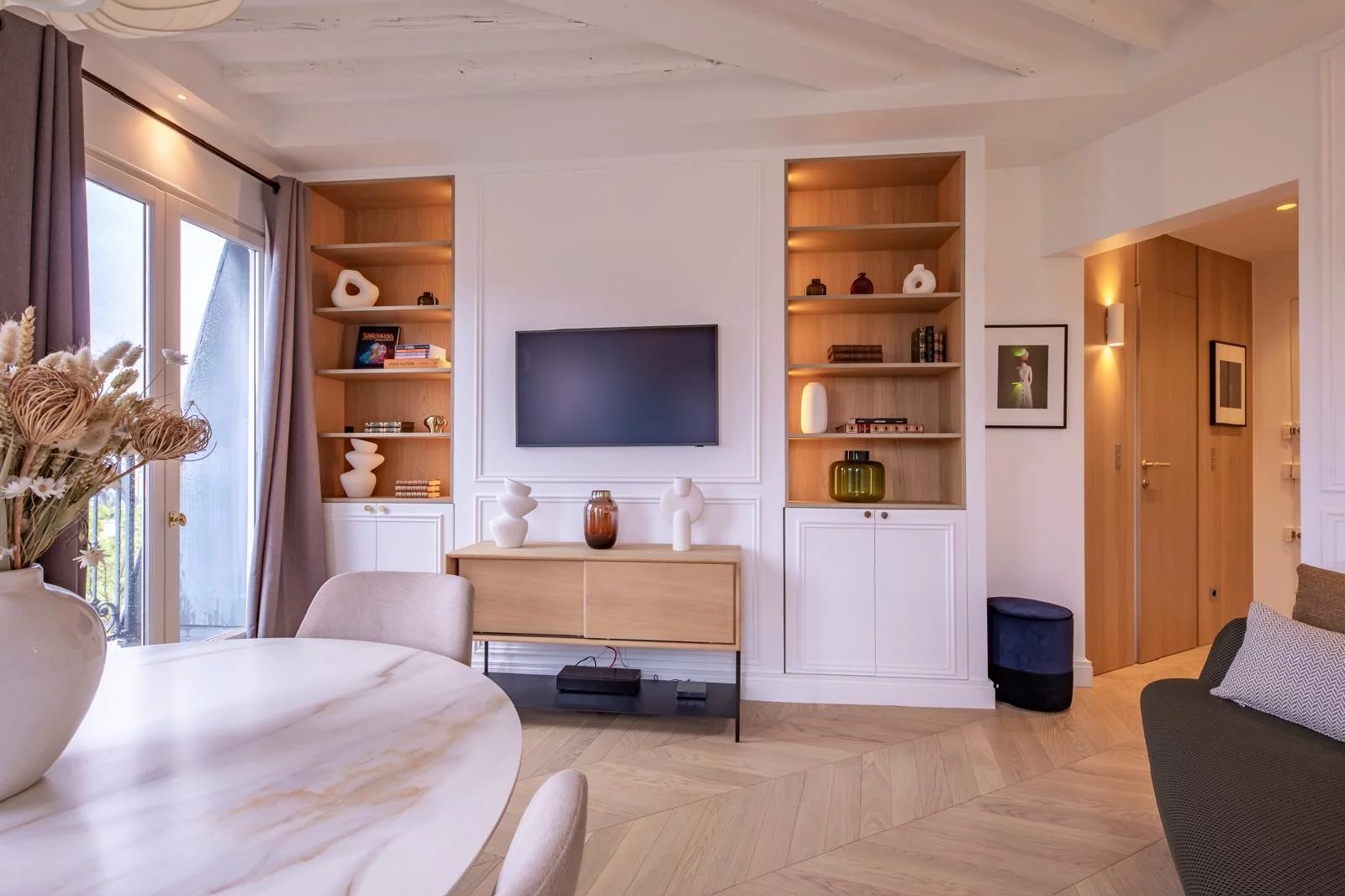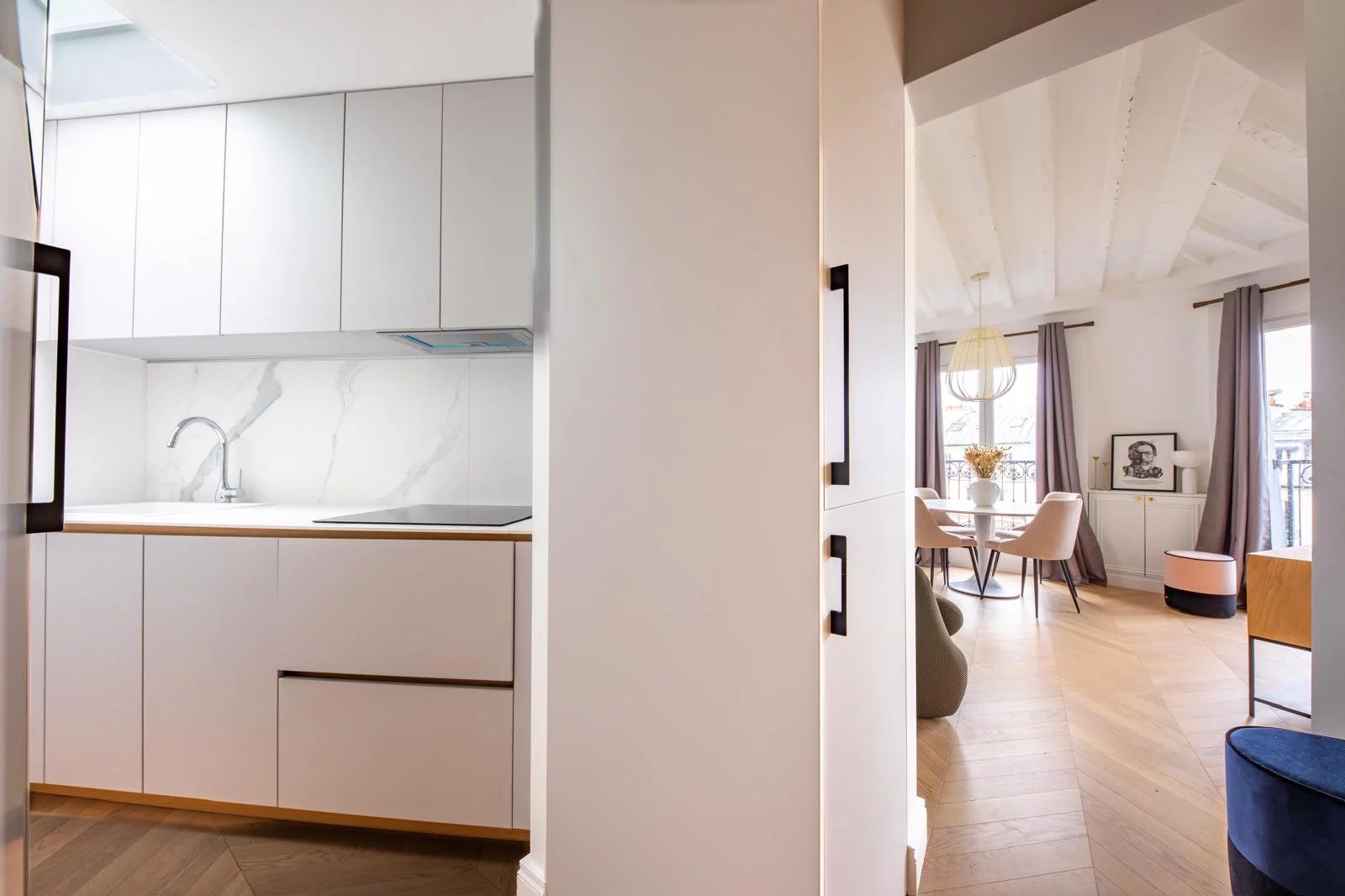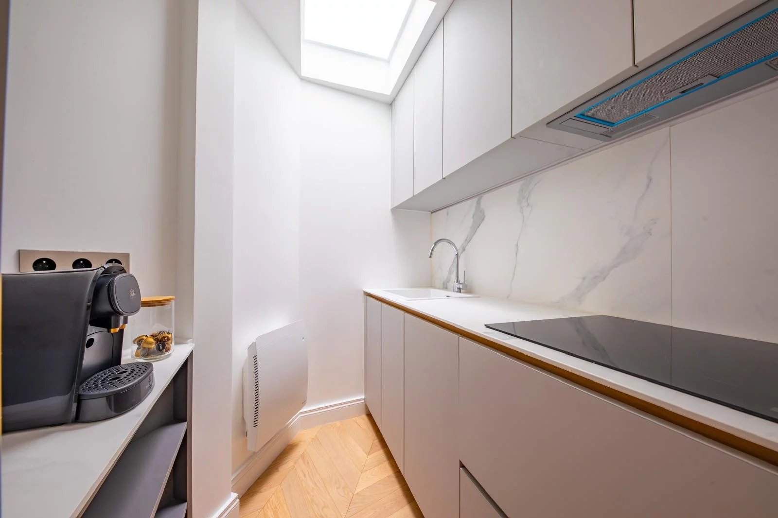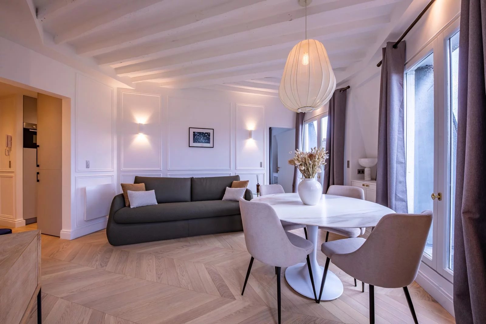 D’une surface de 36m2 carrez et 40m2 au sol, cet appartement a été entièrement rénové avec des matériaux de haute qualité, alliant le charme de l’ancien à un confort moderne. La pièce à vivre avec balcon, baignée de lumière bénéficie d’une exposition idéale, et une belle chambre.
