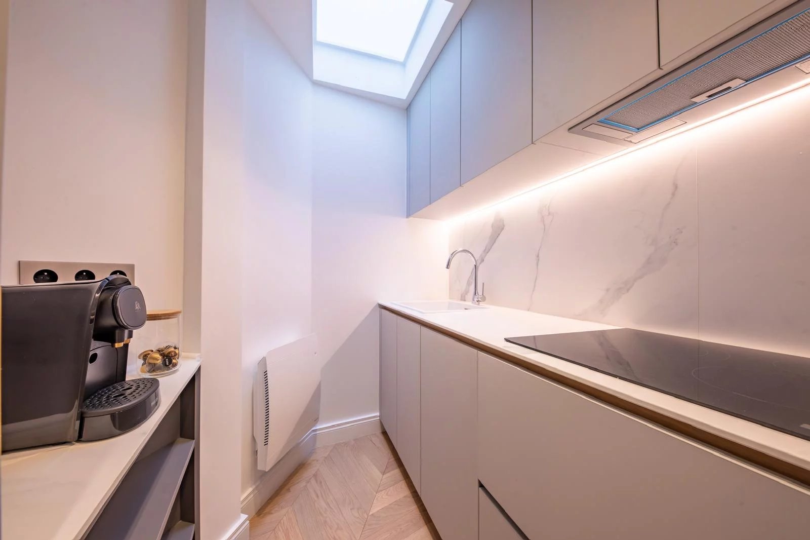 La cuisine, entièrement équipée, et la salle de bains luxueuse ajoutent à cet espace un confort optimal.