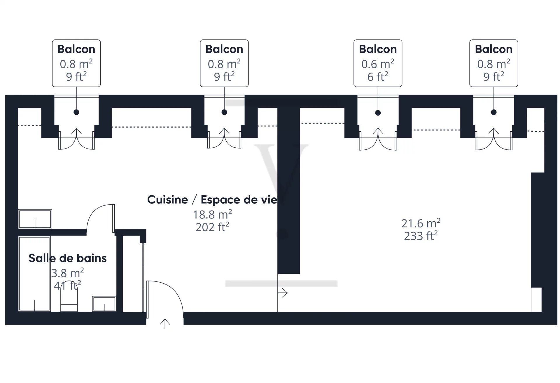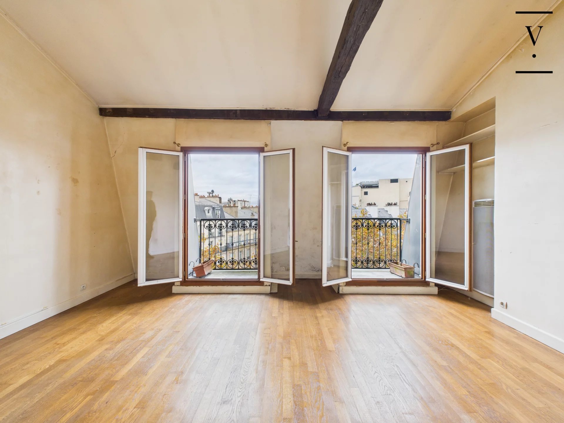 Au dernier étage d’un bel immeuble avec gardienne et ascenseur, appartement à rénover offrant un fort potentiel. D’une superficie de 41 m² Carrez (47 m² au sol), ce bien se distingue par ses volumes exceptionnels avec jusqu’à 3,80 m de hauteur sous plafond et ses quatre balcons donnant sur le Boulevard Saint-Germain. Actuellement distribué en 2 pièces, il offre la possibilité d’une transformation en 3 pièces, bénéficiant d’une vue dégagée et panoramique sur les monuments emblématiques de Paris : Saint-Sulpice, la Tour Eiffel et la Seine. Une belle adresse, un étage élevé avec ascenseur, et un magnifique potentiel pour un projet sur mesure.