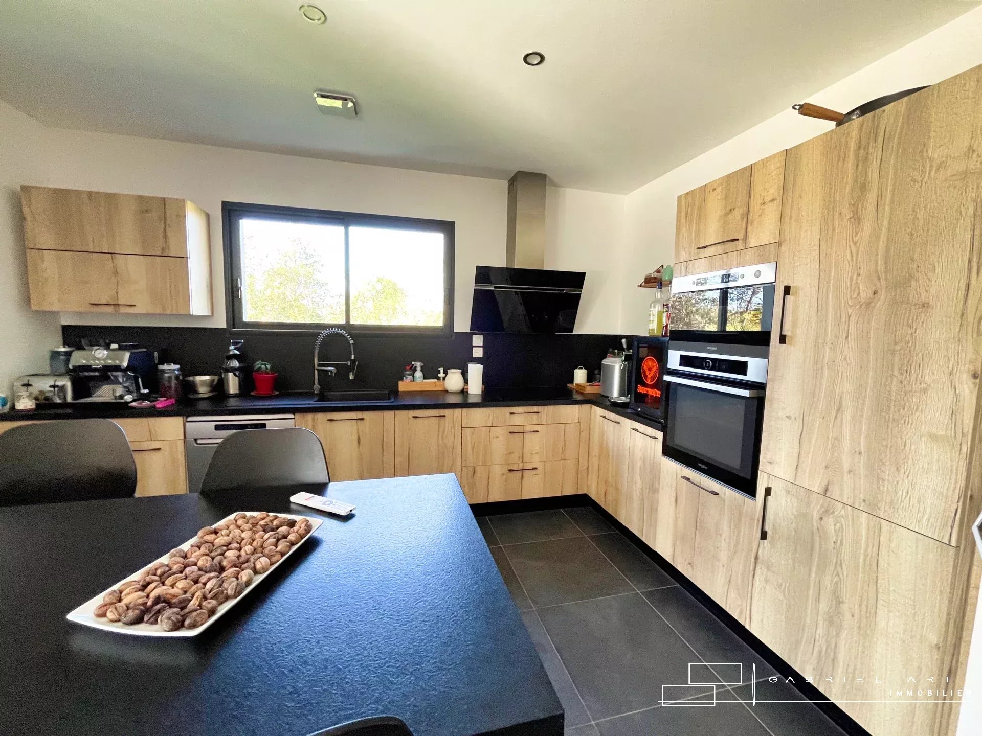 Dès l’entrée, vous serez séduit par la belle pièce de vie baignée de lumière, ouverte sur le jardin grâce à de larges baies vitrées. La cuisine aménagée et entièrement équipée s’intègre harmonieusement à l’espace, invitant à la convivialité et au partage.