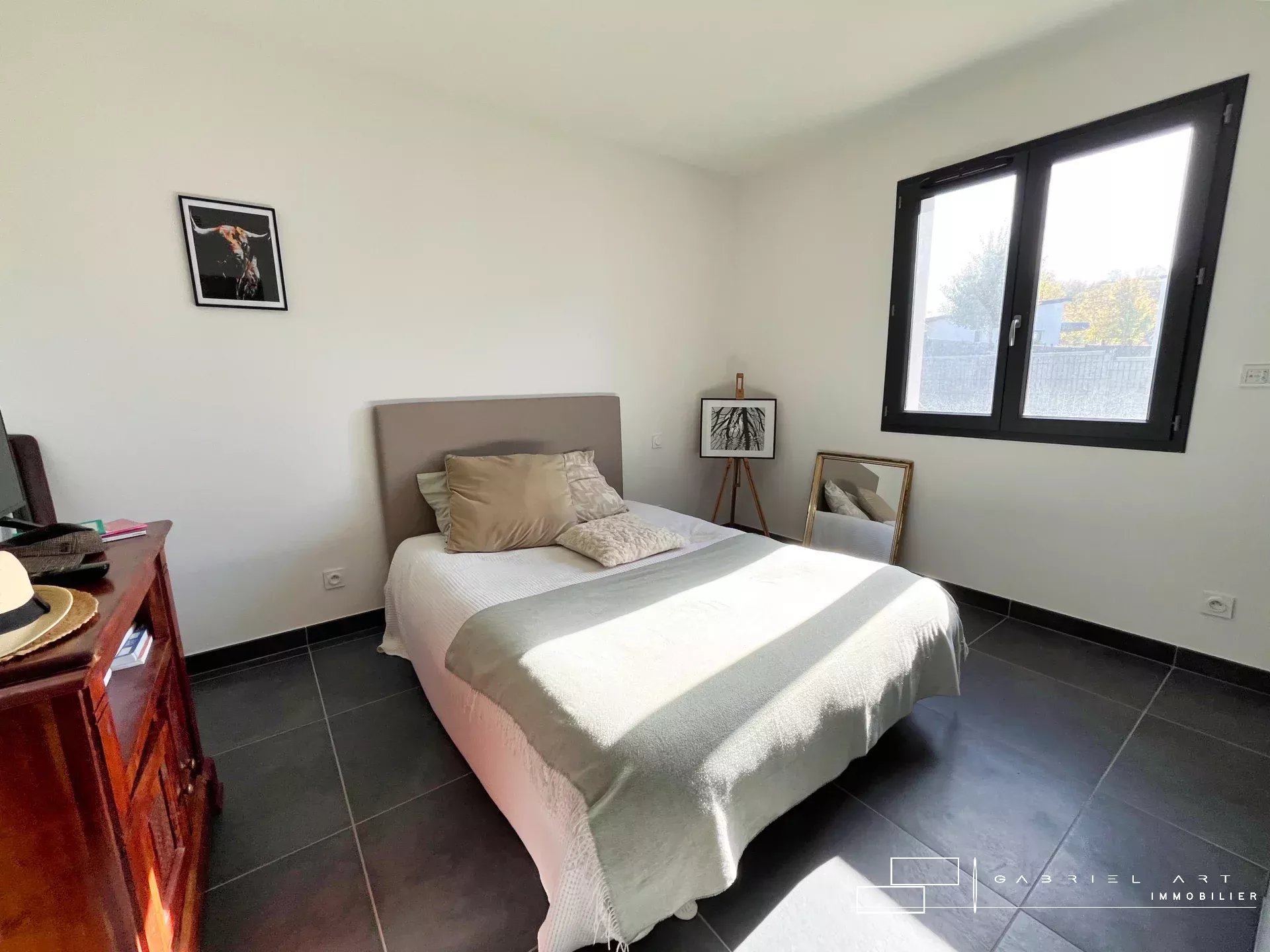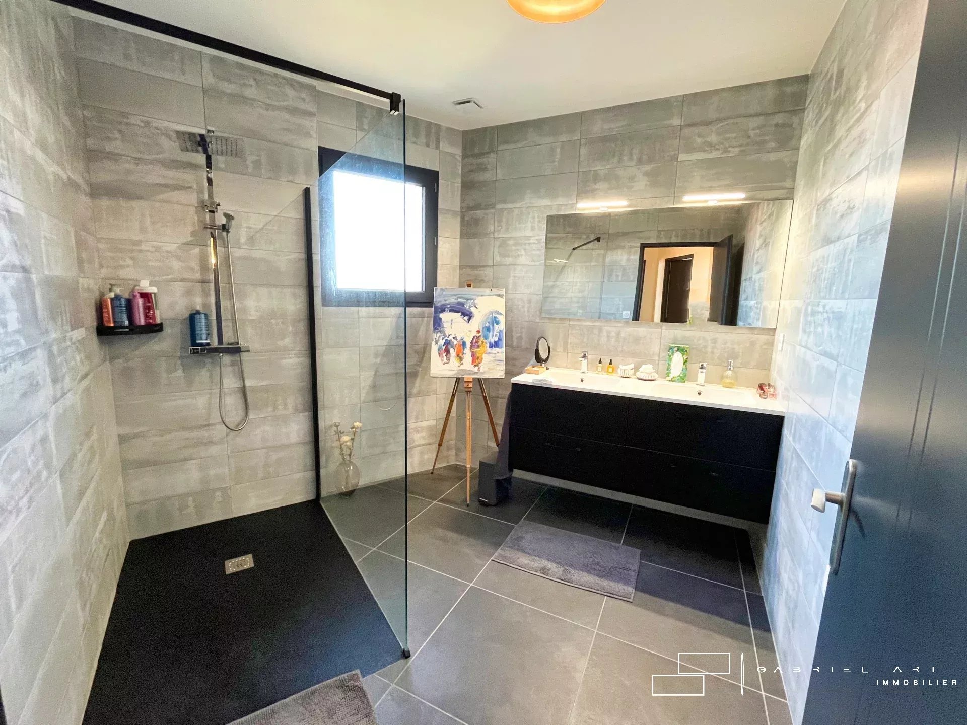 La maison dispose de quatre chambres, dont une suite parentale avec salle d’eau privative, alliant confort et intimité. Une buanderie pratique et un garage complètent cet espace parfaitement pensé pour le quotidien.