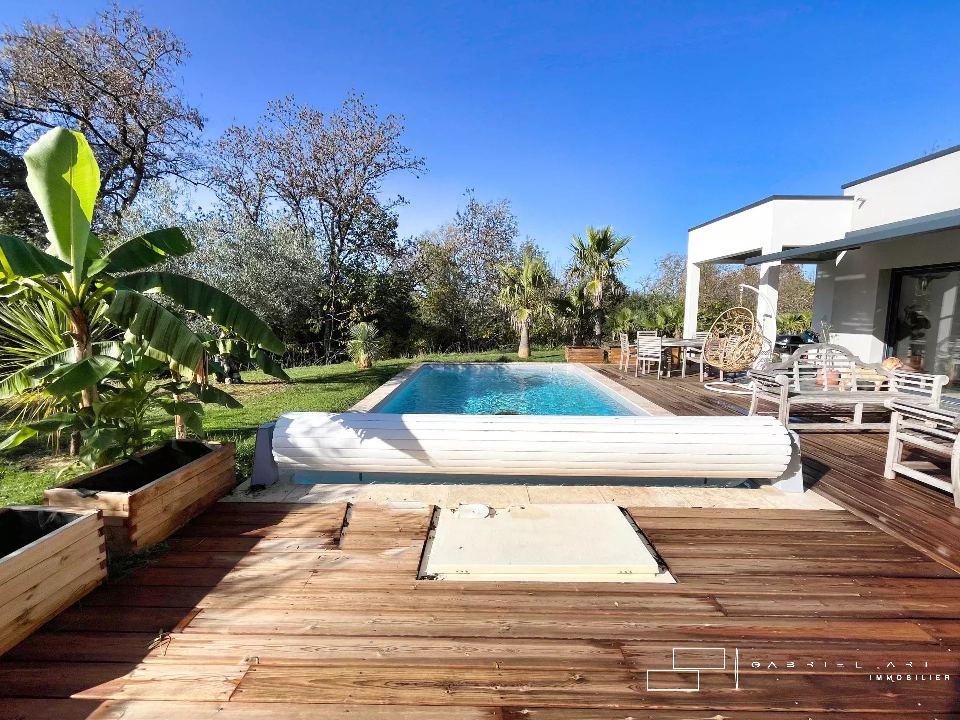 À l’extérieur, laissez-vous charmer par le jardin paysagé, la terrasse en bois exposée plein sud, et la piscine qui promet de beaux moments de détente sous le soleil.