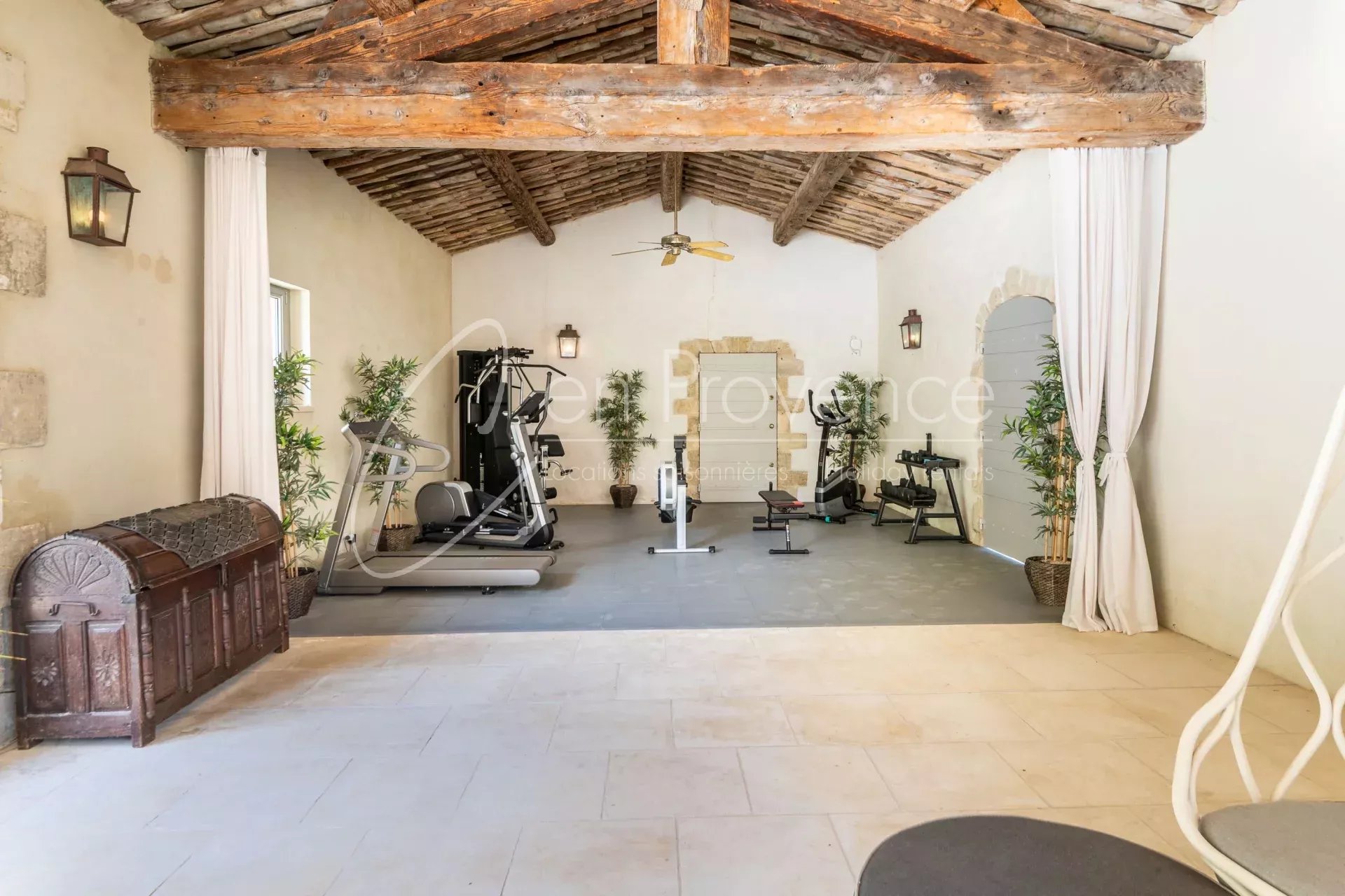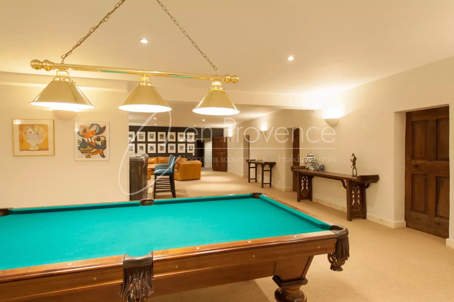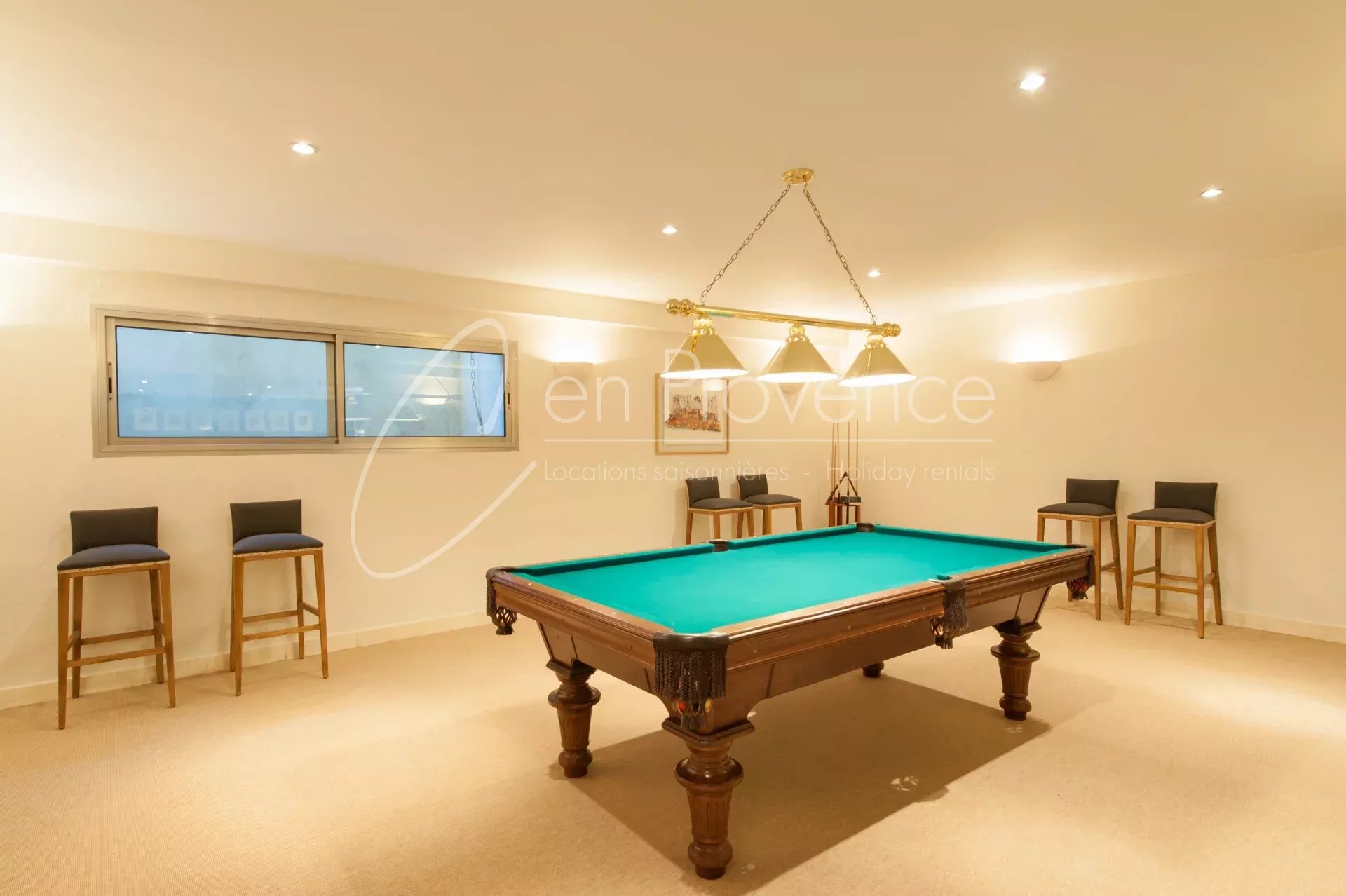 Les équipements de loisirs sont à la hauteur du lieu : piscine chauffée, court de tennis privé, terrain de pétanque, salle de sport, home cinéma, bibliothèque et cave à vins.