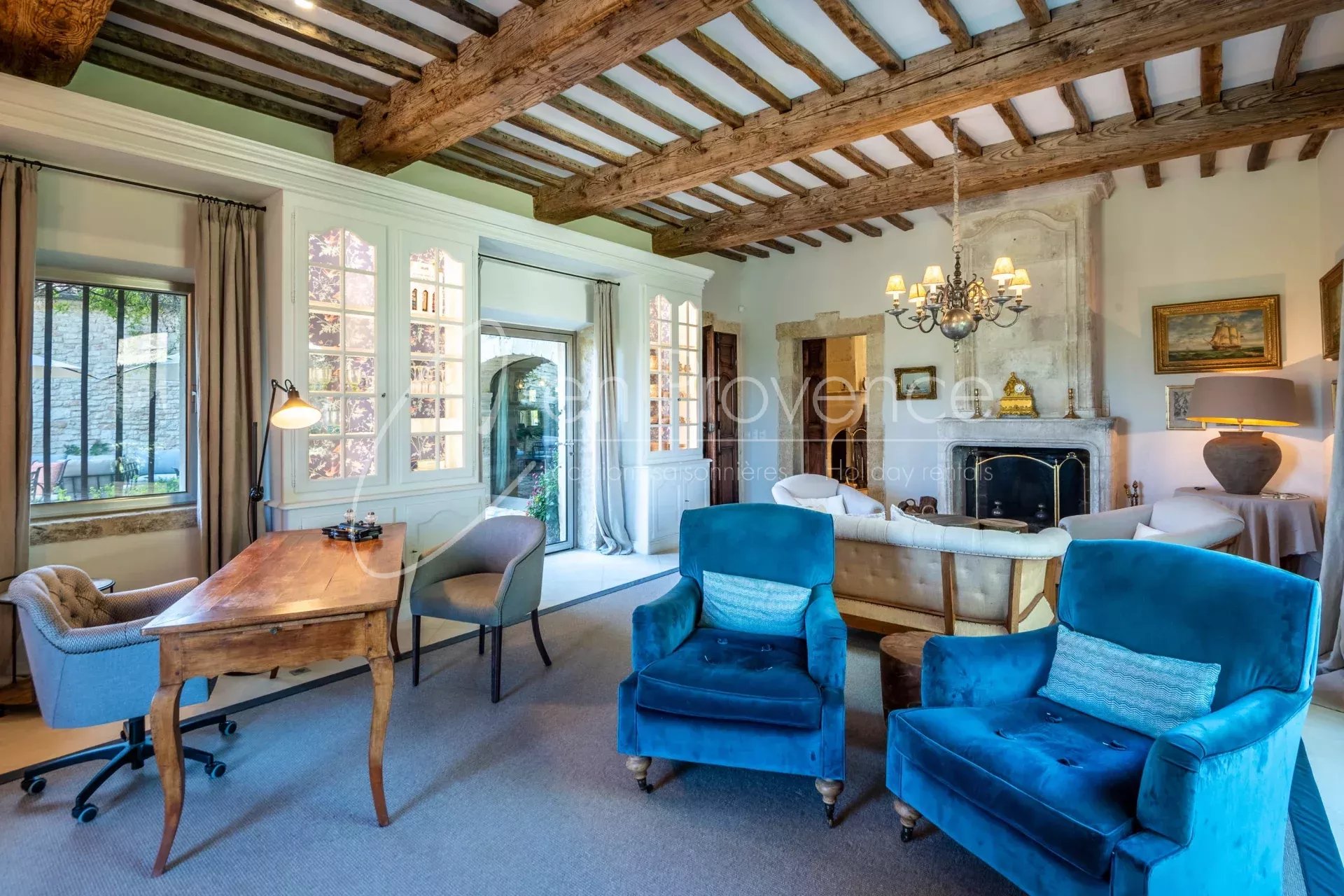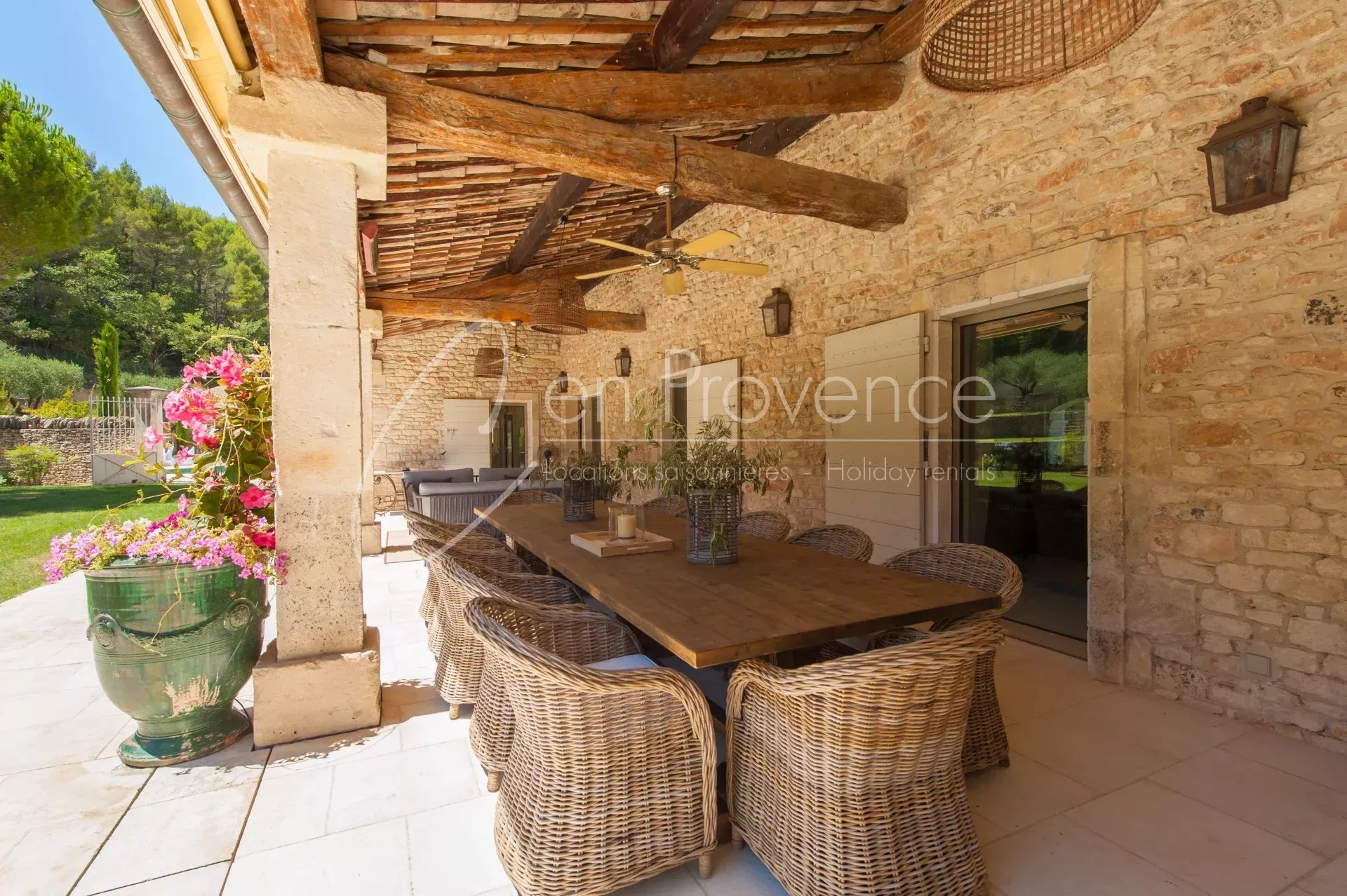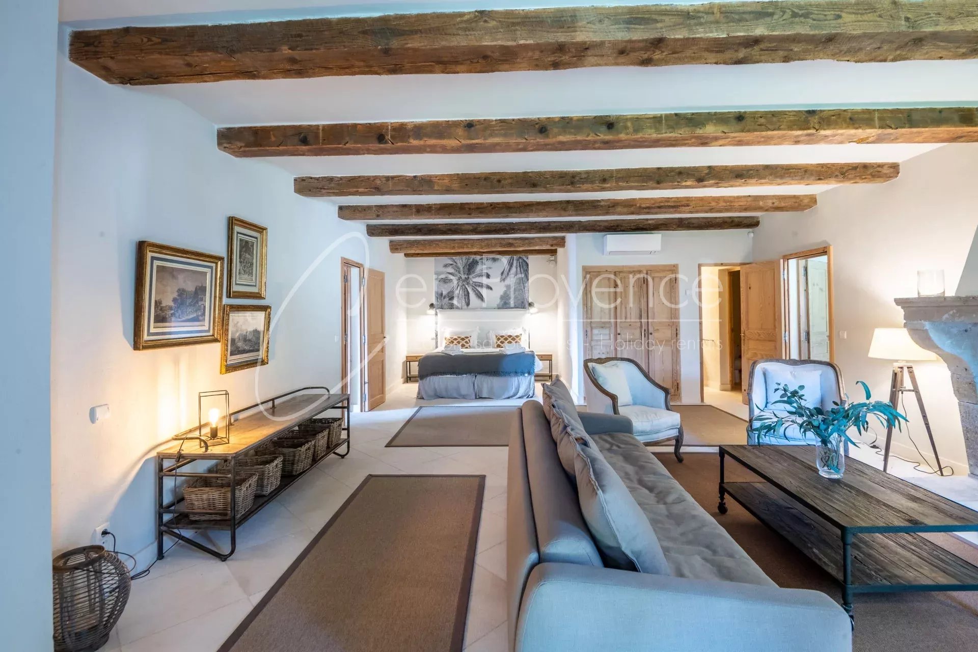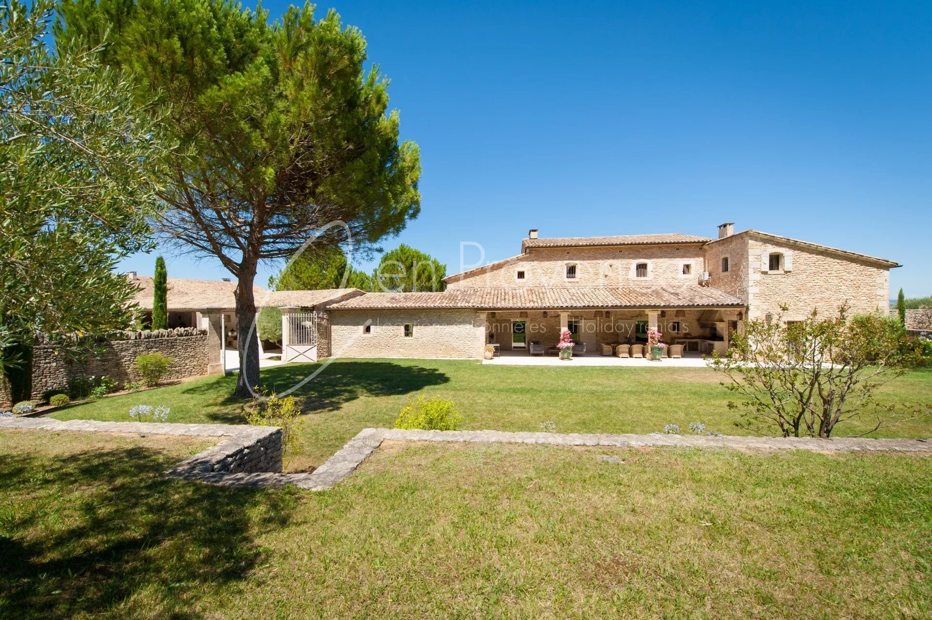 Idéale pour des vacances haut de gamme en Provence, la propriété accueille jusqu’à 24 personnes avec ses 11 chambres et 10 salles de bains réparties entre la maison principale et deux annexes indépendantes. Les intérieurs allient authenticité et confort moderne : cuisine semi professionnelle, vastes salons lumineux, climatisation, terrasses et espaces extérieurs aménagés.