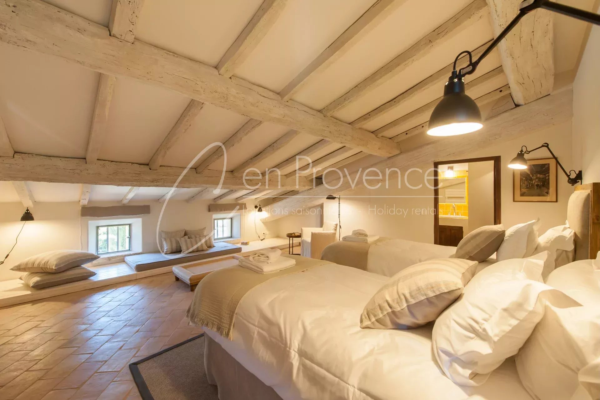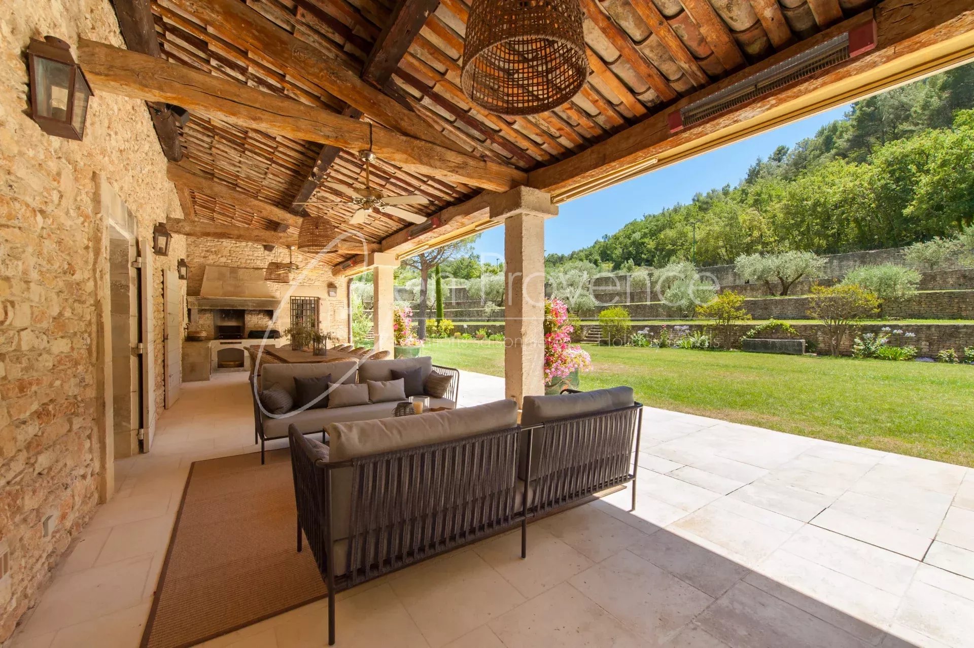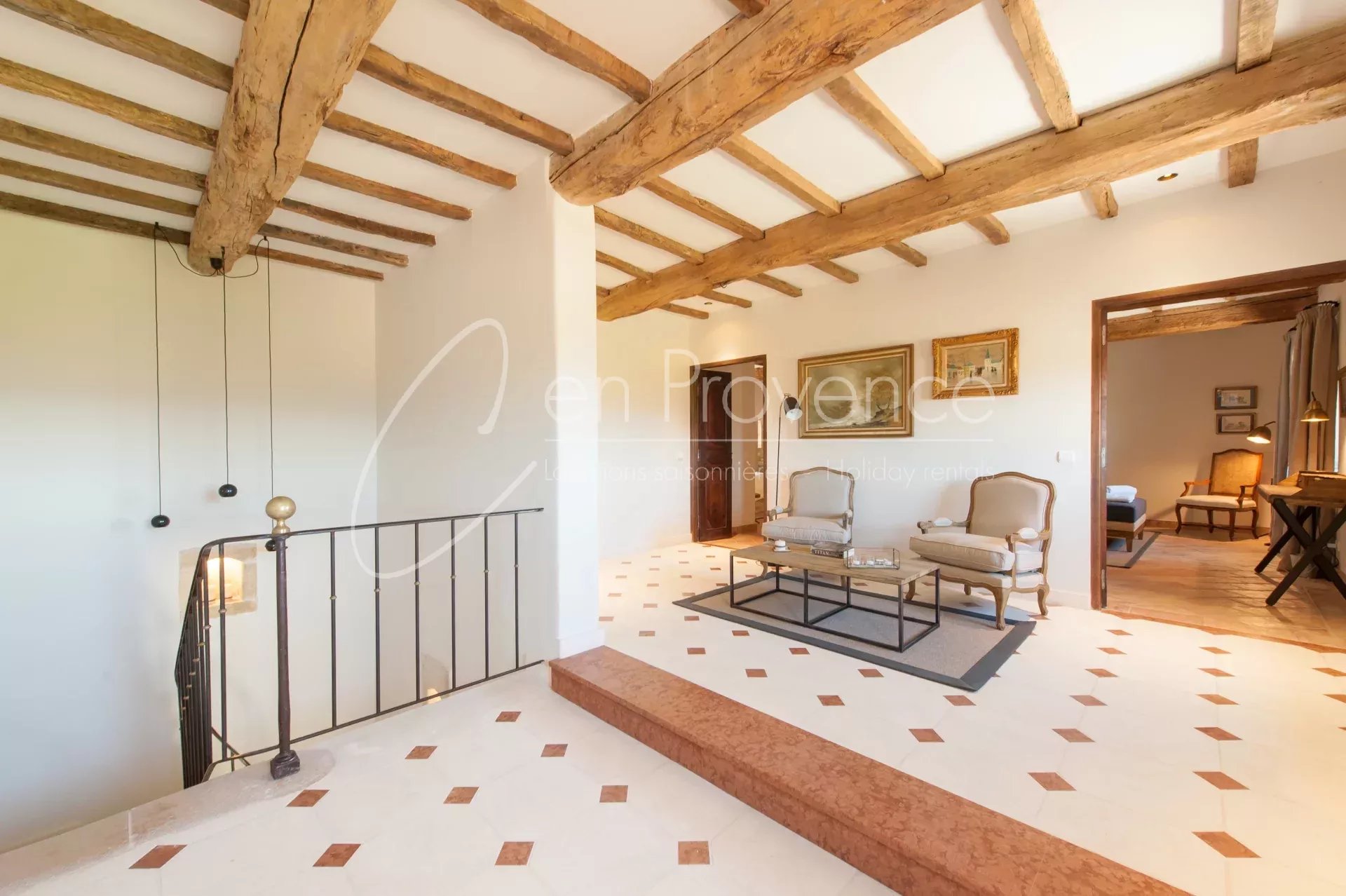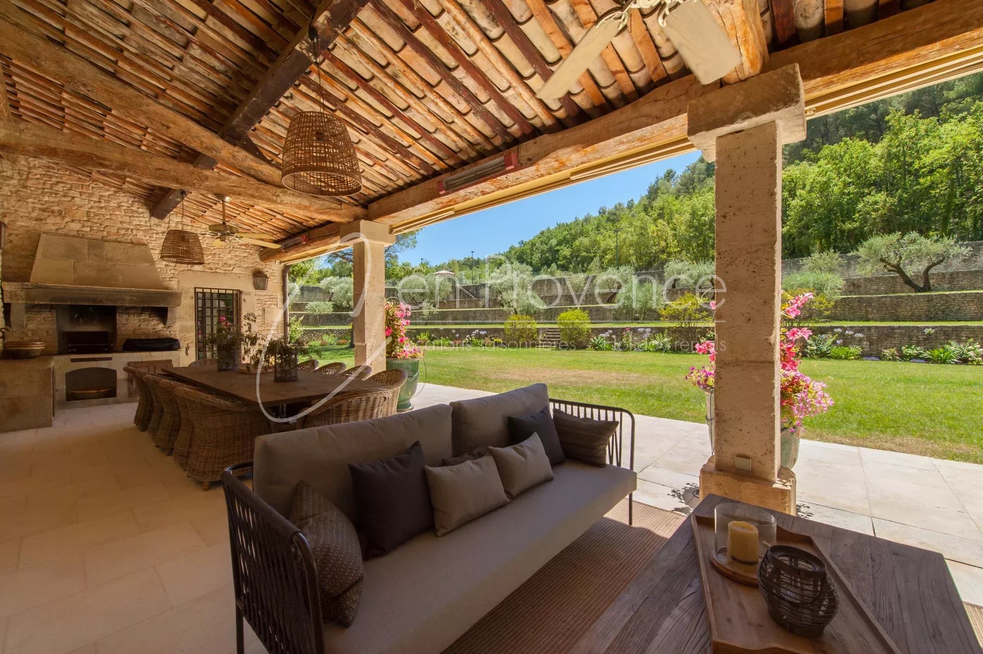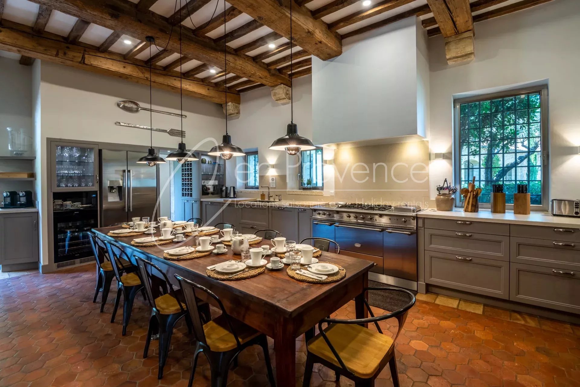 Idéale pour des vacances haut de gamme en Provence, la propriété accueille jusqu’à 24 personnes avec ses 11 chambres et 10 salles de bains réparties entre la maison principale et deux annexes indépendantes. Les intérieurs allient authenticité et confort moderne : cuisine semi professionnelle, vastes salons lumineux, climatisation, terrasses et espaces extérieurs aménagés.