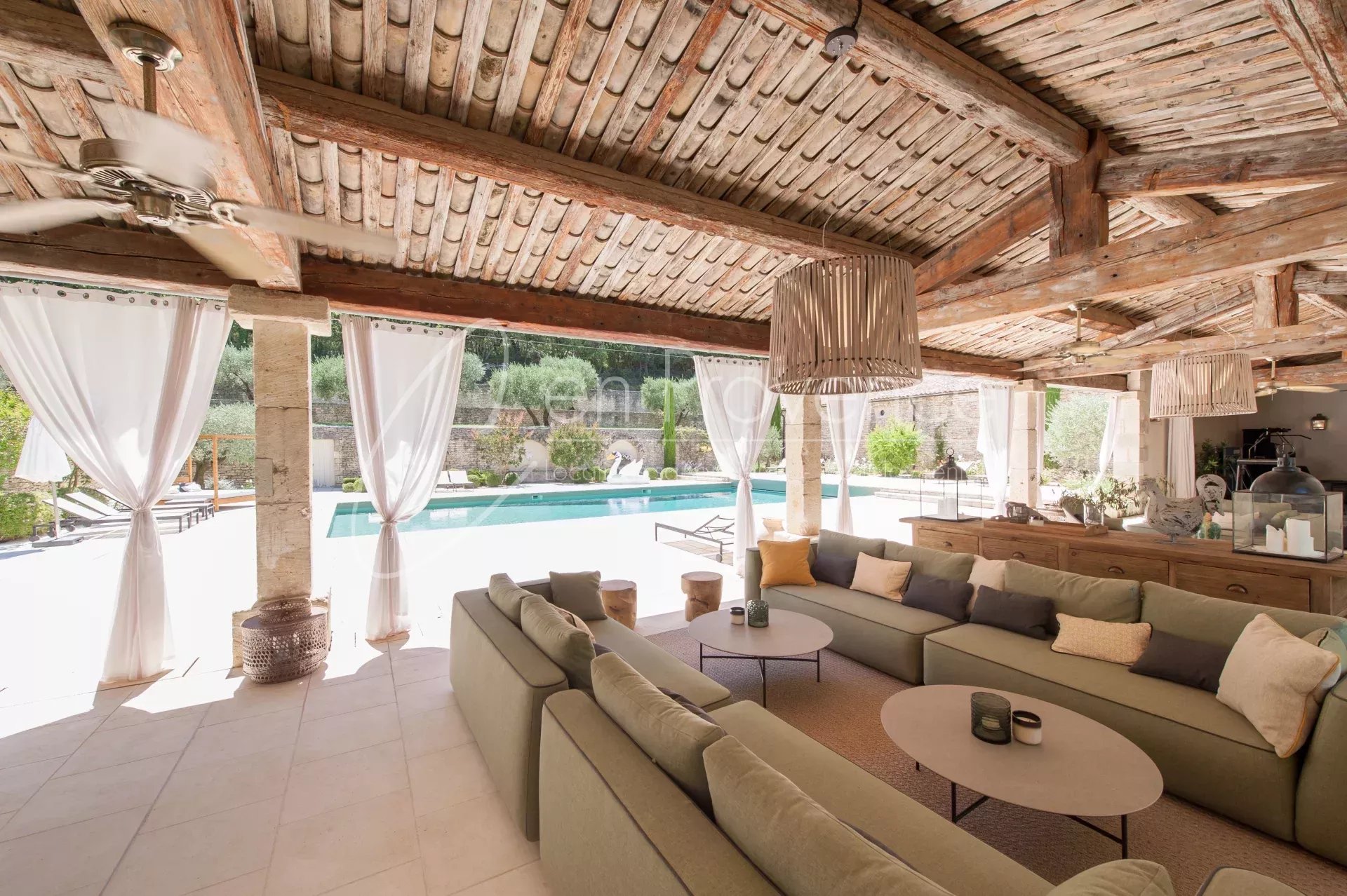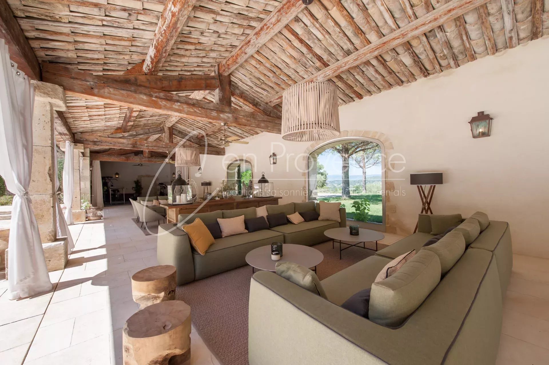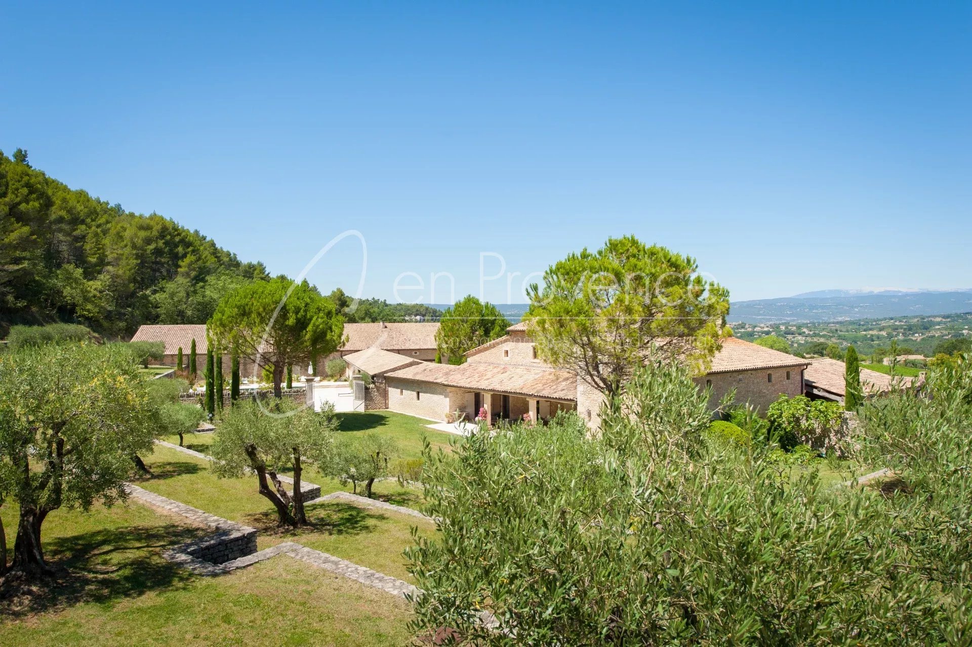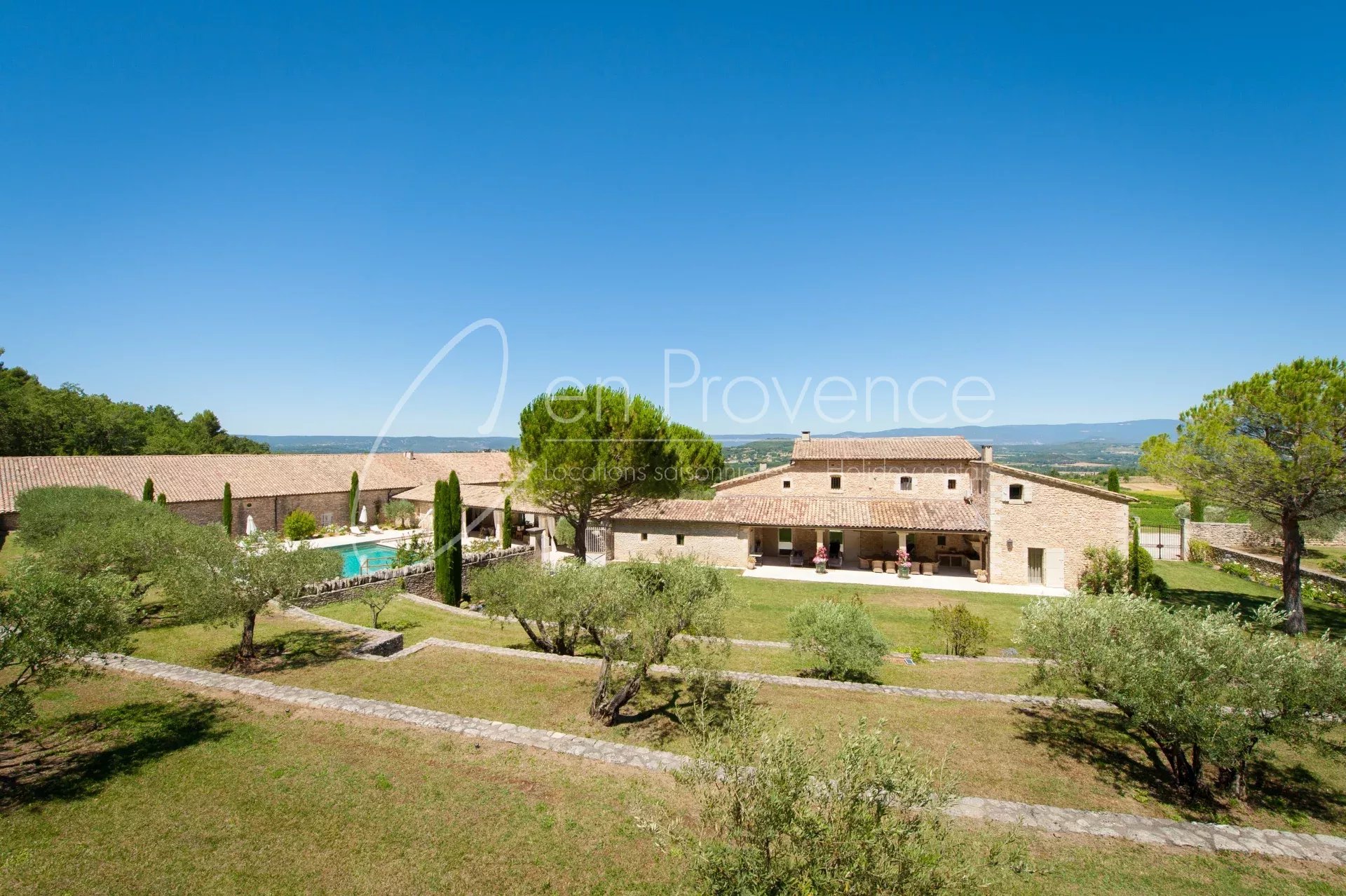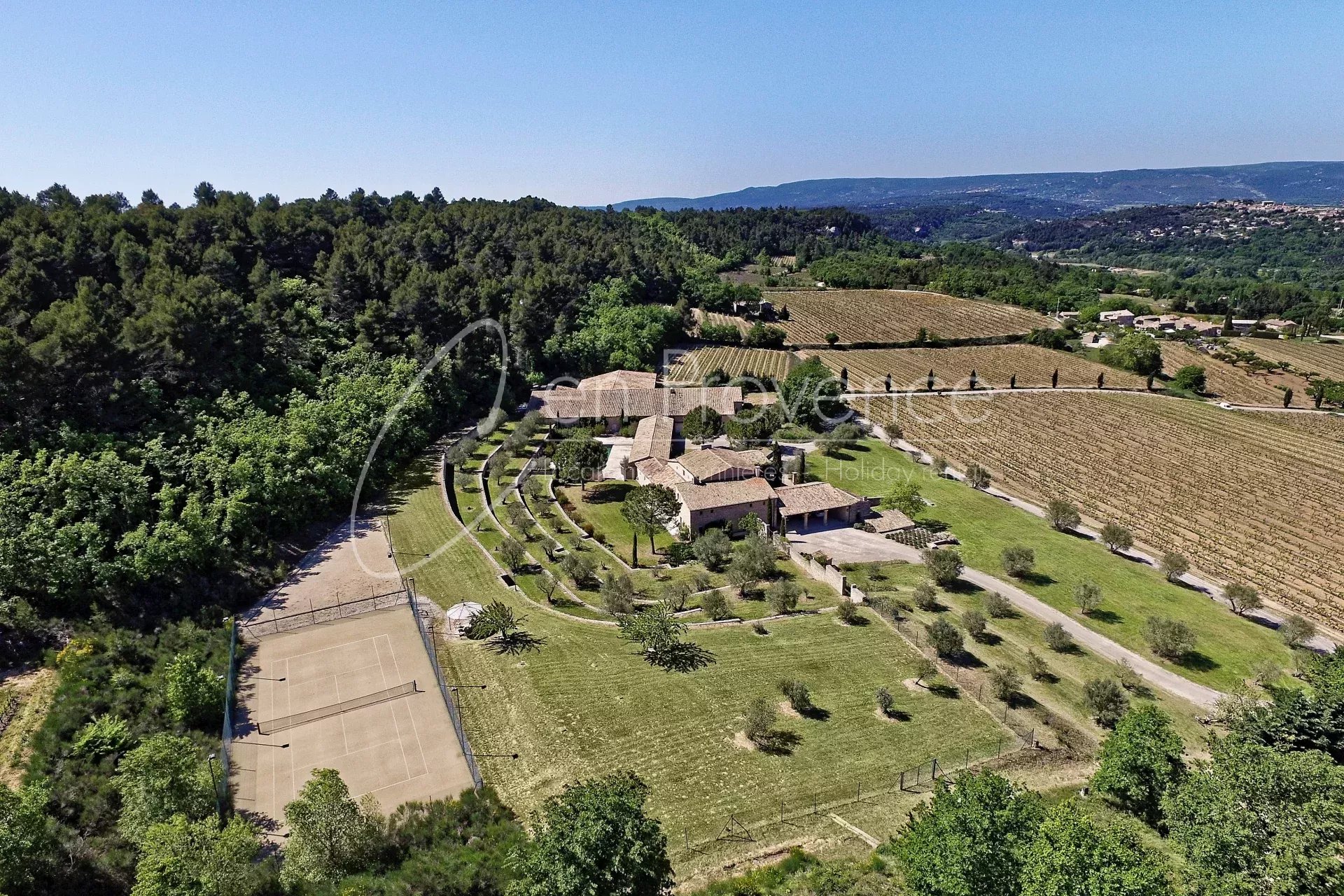 Au cœur d’un domaine viticole privé de 48 hectares, ce mas de prestige à louer en Provence offre un cadre idyllique au sein du parc naturel régional du Luberon. Entourée de vignes et de nature, la propriété bénéficie d’une vue panoramique spectaculaire sur la vallée, les villages perchés et le Mont Ventoux.