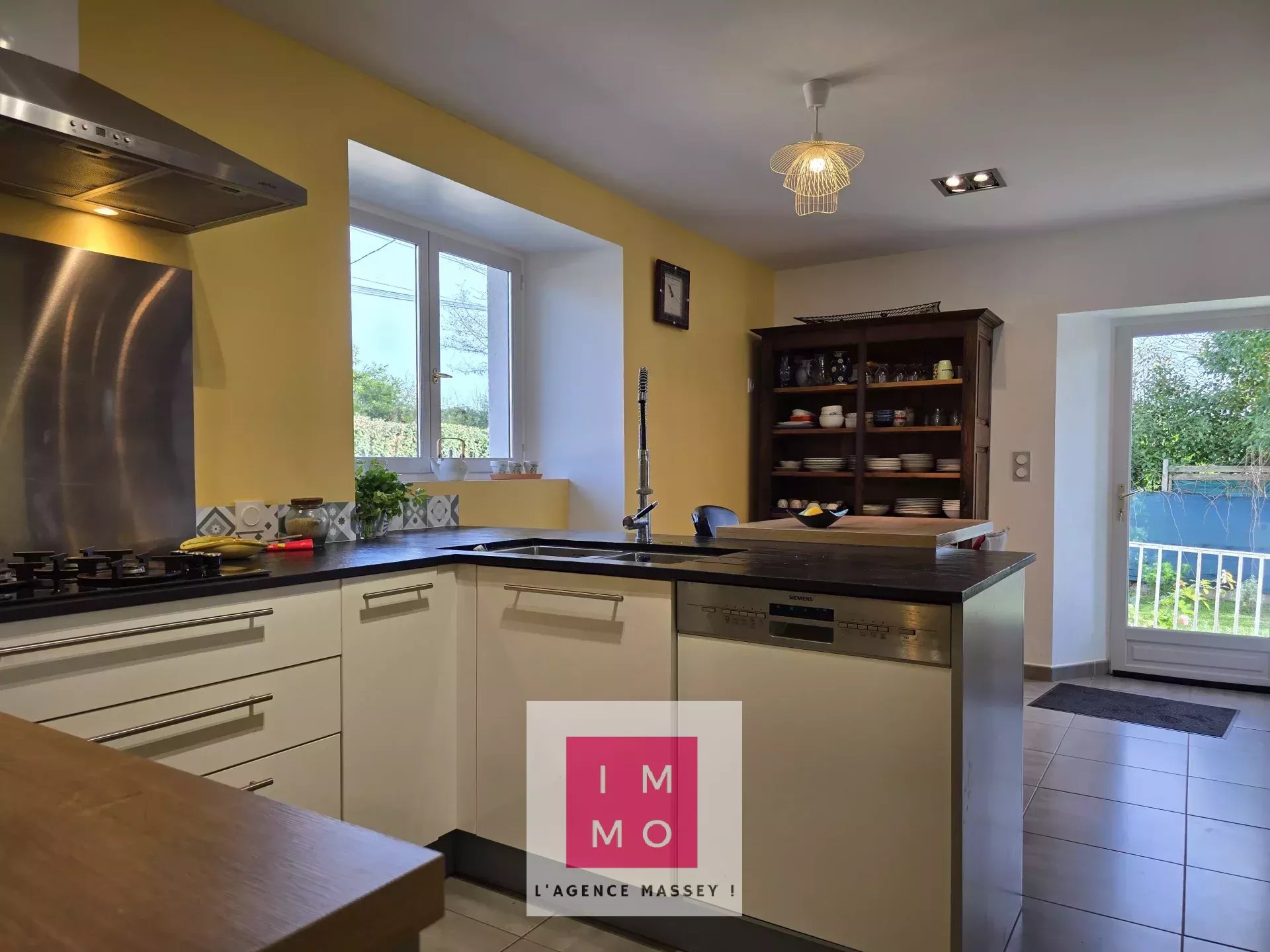 - une belle salle à manger assez grande pour accueillir ais et familles : au sol d'anciens carreaux ciment d'origine (parfaitement conservés). La pièce est bien éclairée par une fenêtre et une double porte-fenêtre donnant sur une terrasse couverte 27m² et le jardin. Un poêle à bois récent et performant assure une douce ambiance. Attenante à la salle à manger, vous aurez une cuisine assez grande pour accueillir un espace repas. Cuisine bien équipée, esthétique et fonctionnelle avec une grande arrière cuisine/chaufferie et buanderie.