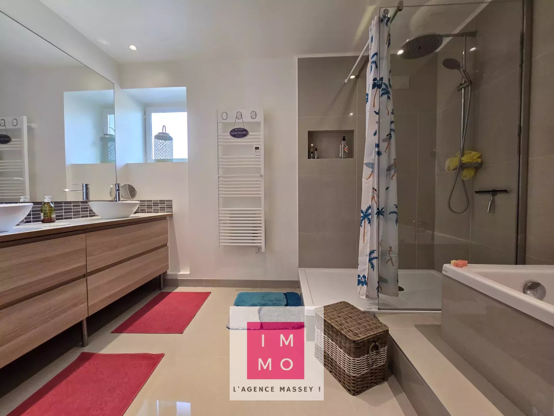- une salle de bain avec douche, baignoire, double vasques : élégance et confort.