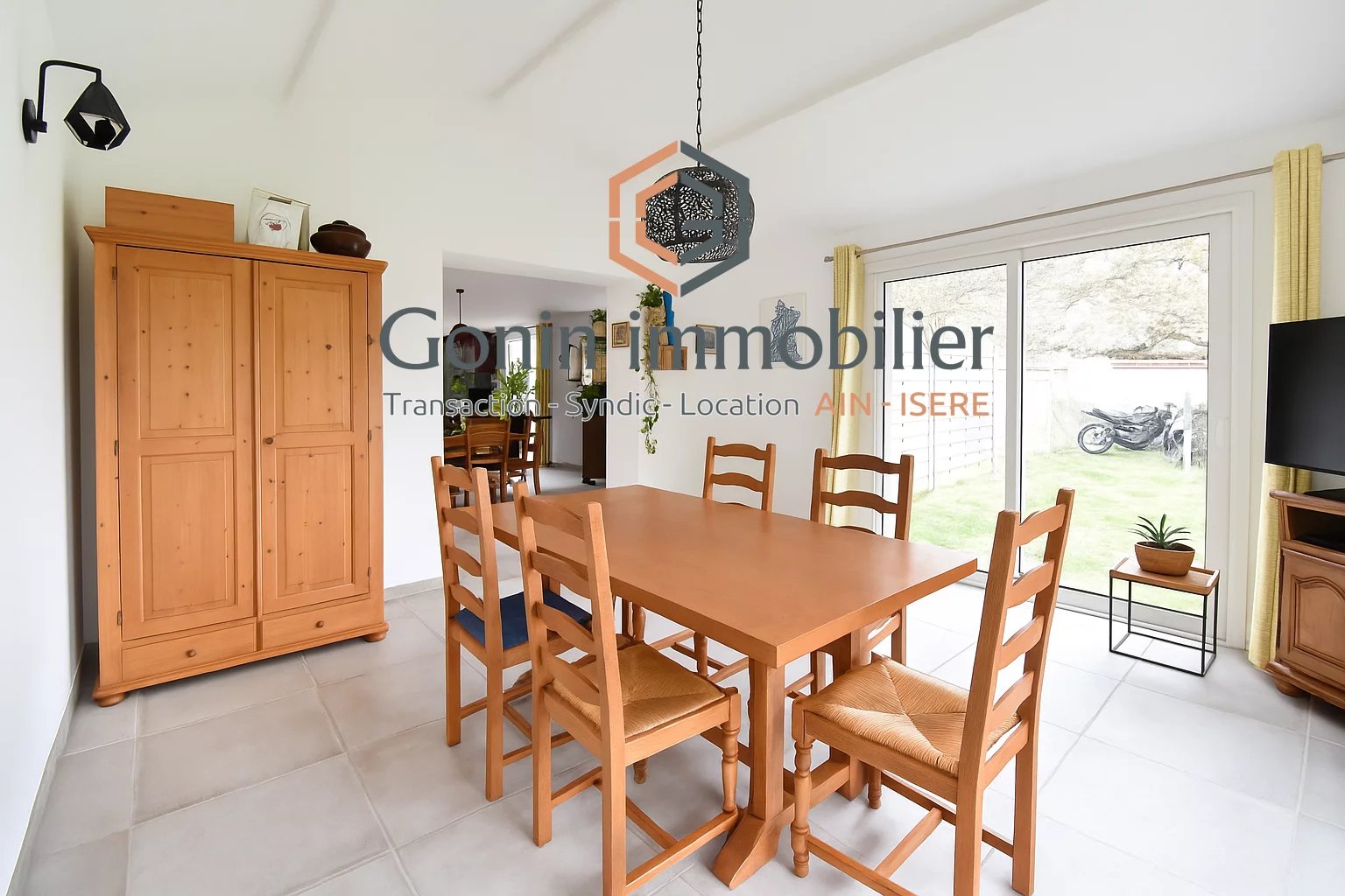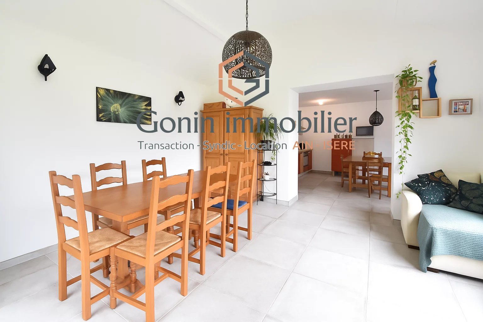 La maison se compose, au rez-de-chaussée: d'un spacieux espace de vie, d'une salle à manger, d'une cuisine et d'un séjour de 82 m², d'une salle de bains et d'un WC. Une partie pourrait être facilement transformée en chambre.