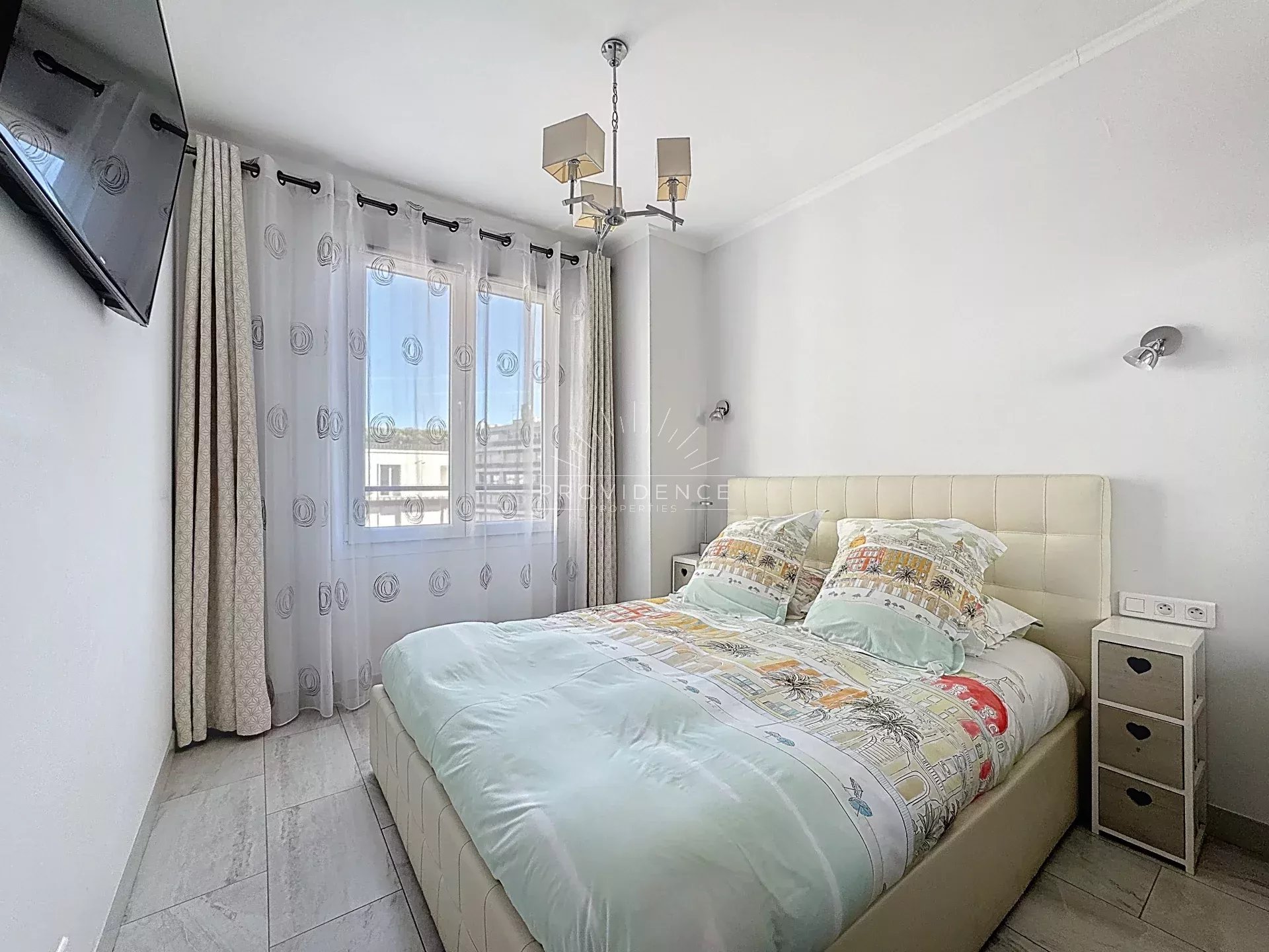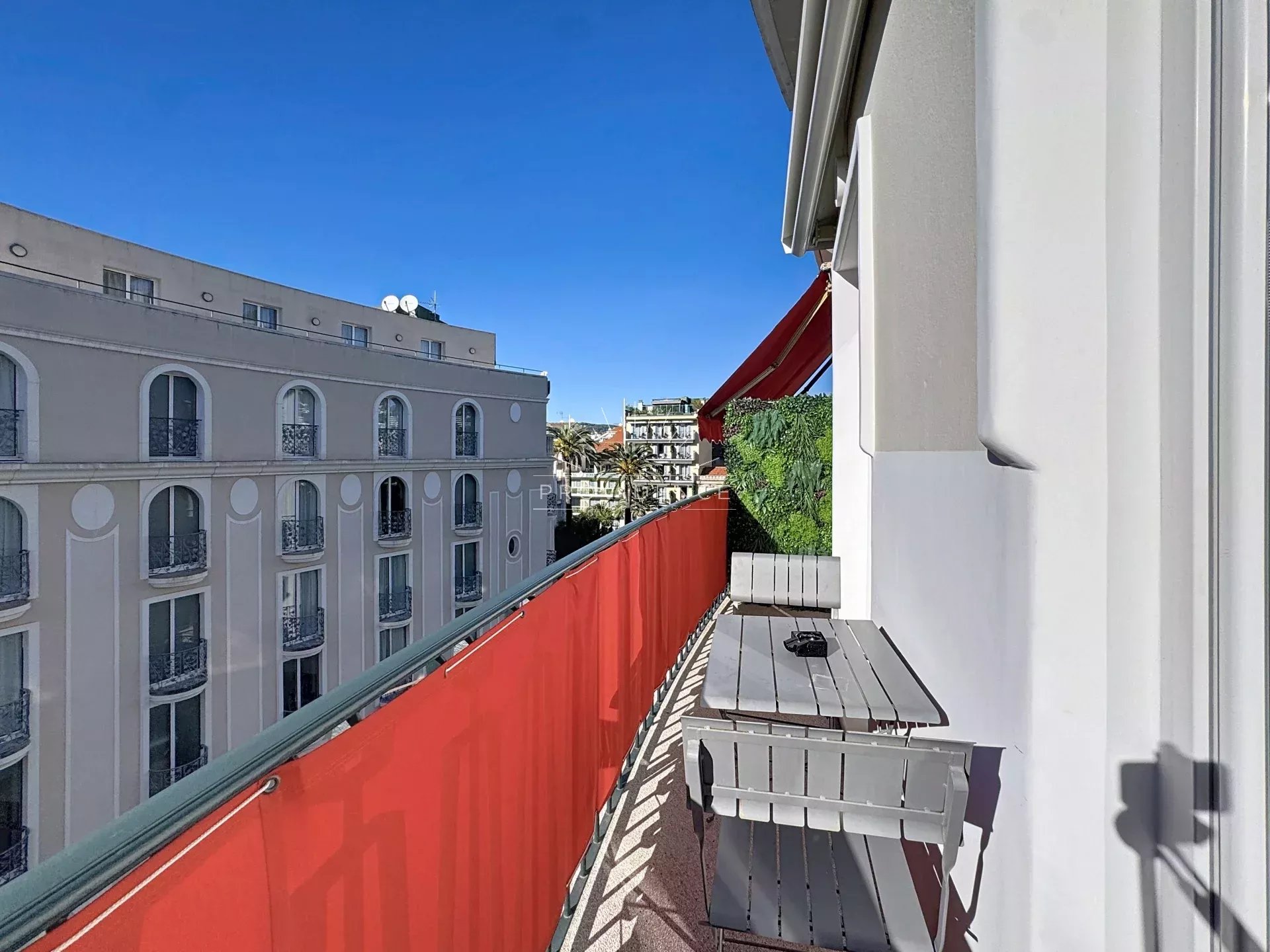 Situé au 5ᵉ et dernier étage d’une résidence de standing avec gardien 7j/7, en plein cœur de Cannes et à seulement 2 minutes à pied des plages de la Croisette, cet appartement traversant de 3 pièces offre une surface de 65 m².