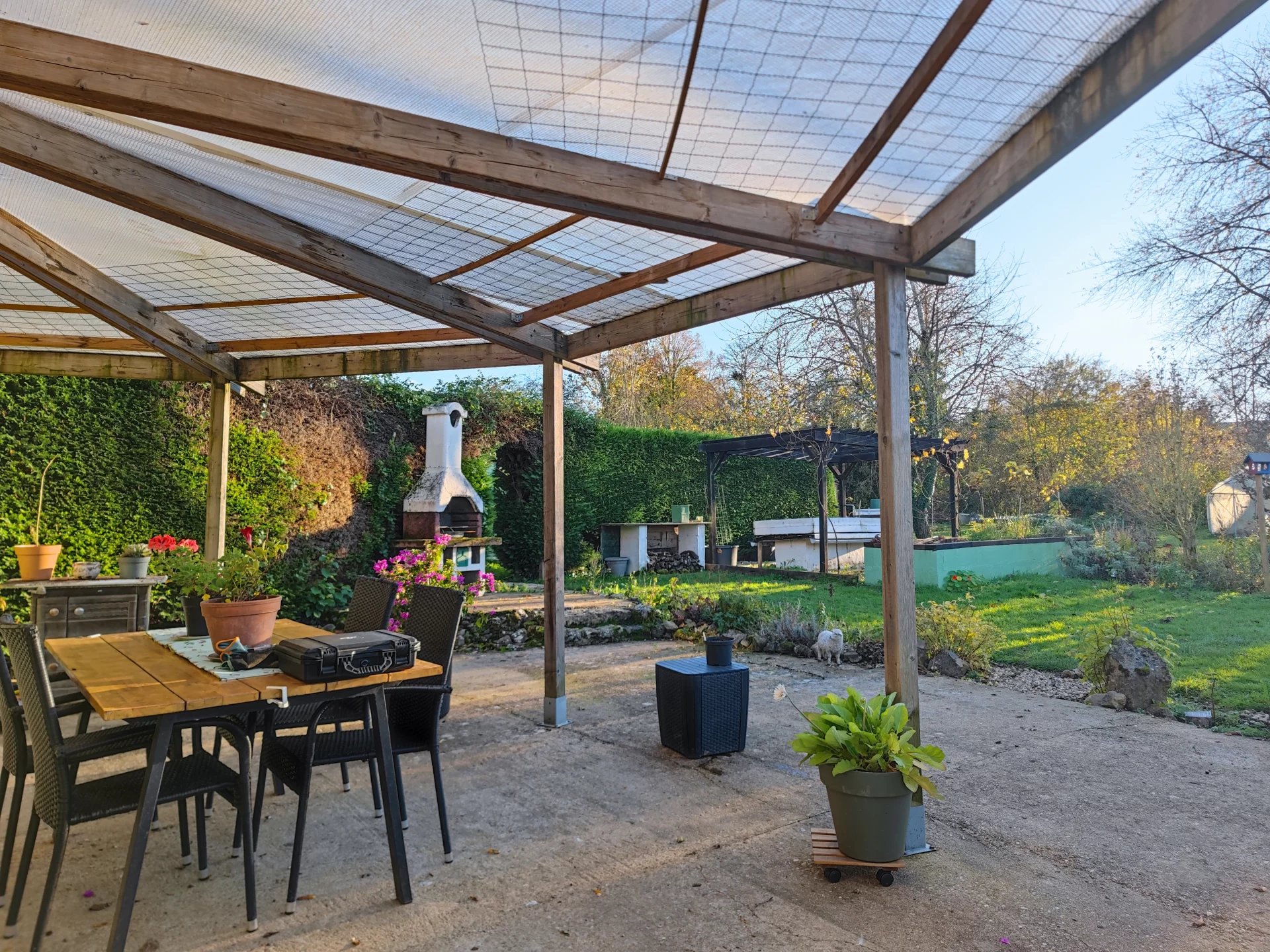 L’ensemble est implanté sur un beau terrain arboré d’une superficie de 2870m2.