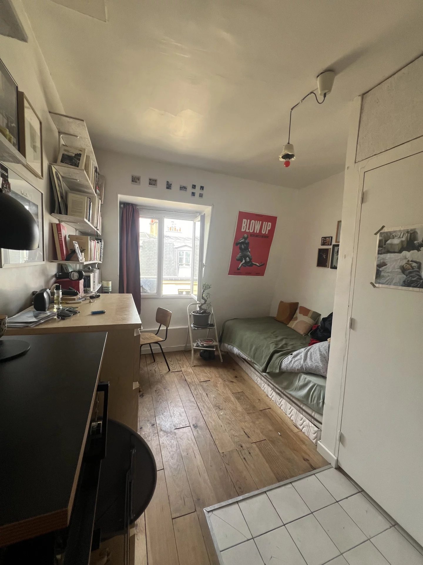 Dans bel immeuble en PDT, studio au dernier étage bénéficiant d'une bonne luminosité et composé d'une pièce de vie, kitchenette, salle d'eau et WC sur palier. Prestations ; Rue calme et résidentiel restant très proches des commerces et métros. Rafraichissement à prévoir, faibles charges. DPE 291 E et 8 B