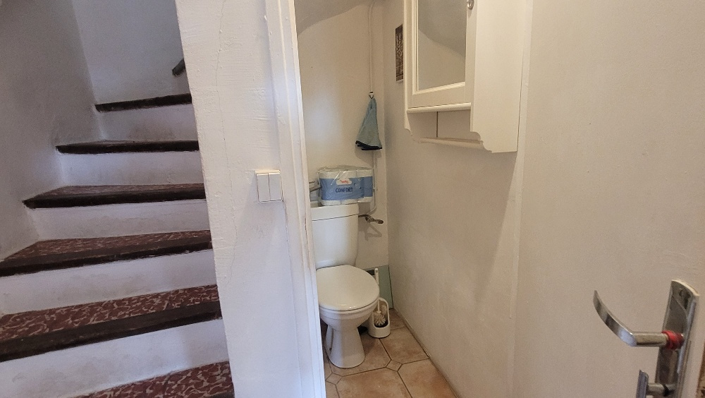 Réf 4588: Charmante maison de village R+1 deux faces avec terrasses comprenant une pièce de vie de 23m2 avec cuisine équipée, un toilette sous l'escalier qui donne accès à deux chambres (9.2m2 et 12m2) et une salle d'eau avec un second toilette.
