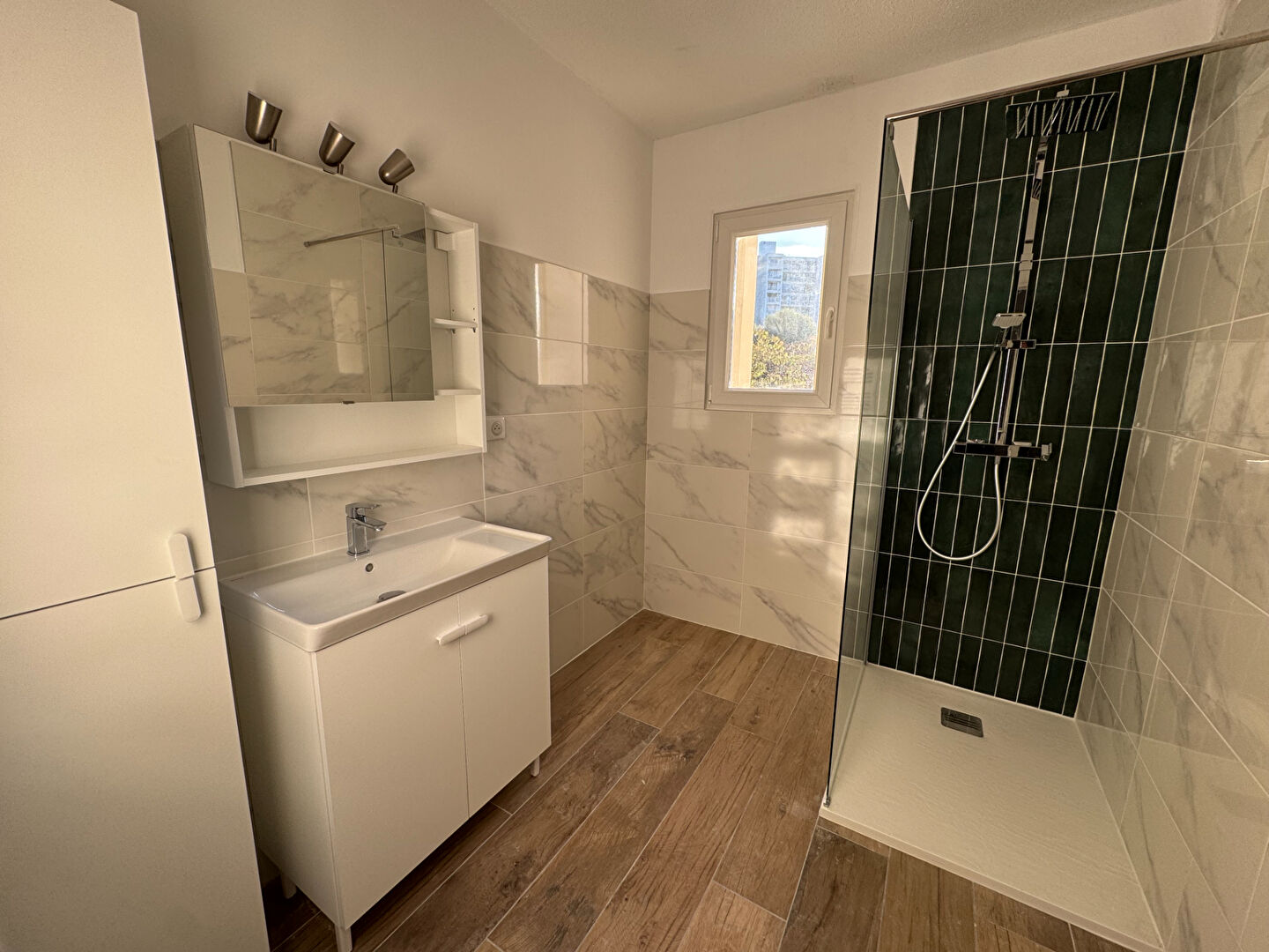 Appartement de Type 4, situé au 2ème étage avec ascenseur, composé d'une entrée, une cuisine équipée (éléments hauts et bas, plaques de cuisson à induction, four, hotte), un débarras, un balcon, un séjour climatisé, 3 chambres dont 2 avec placards, une salle d'eau, un wc, une terrasse, une place de parking en extérieur et une cave.