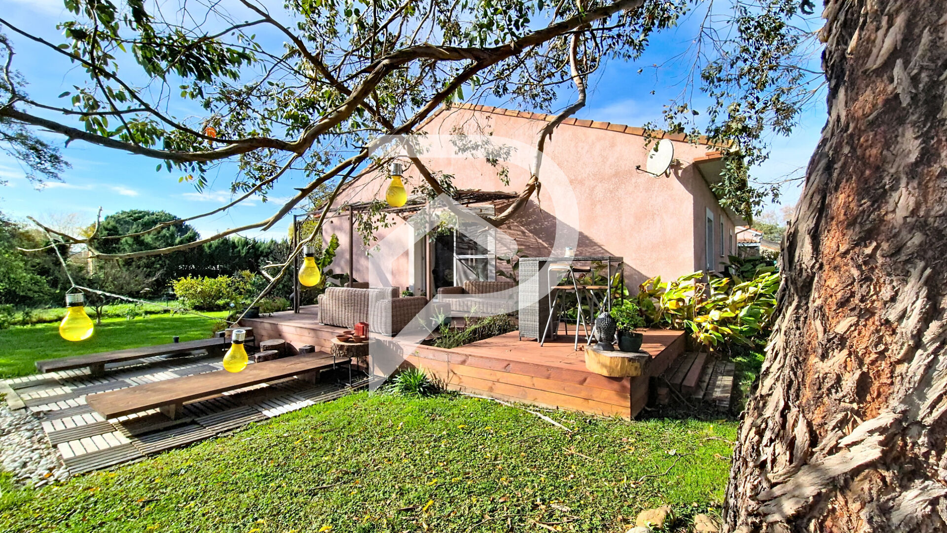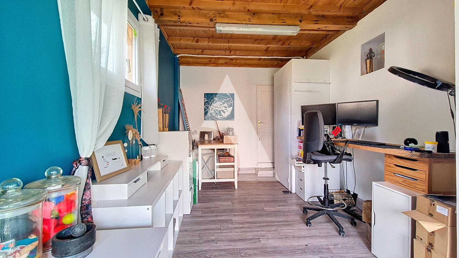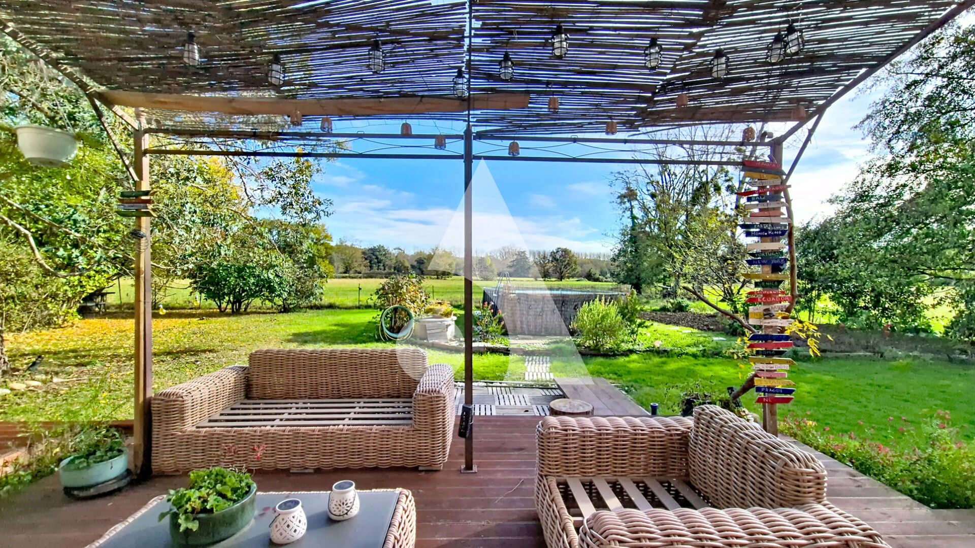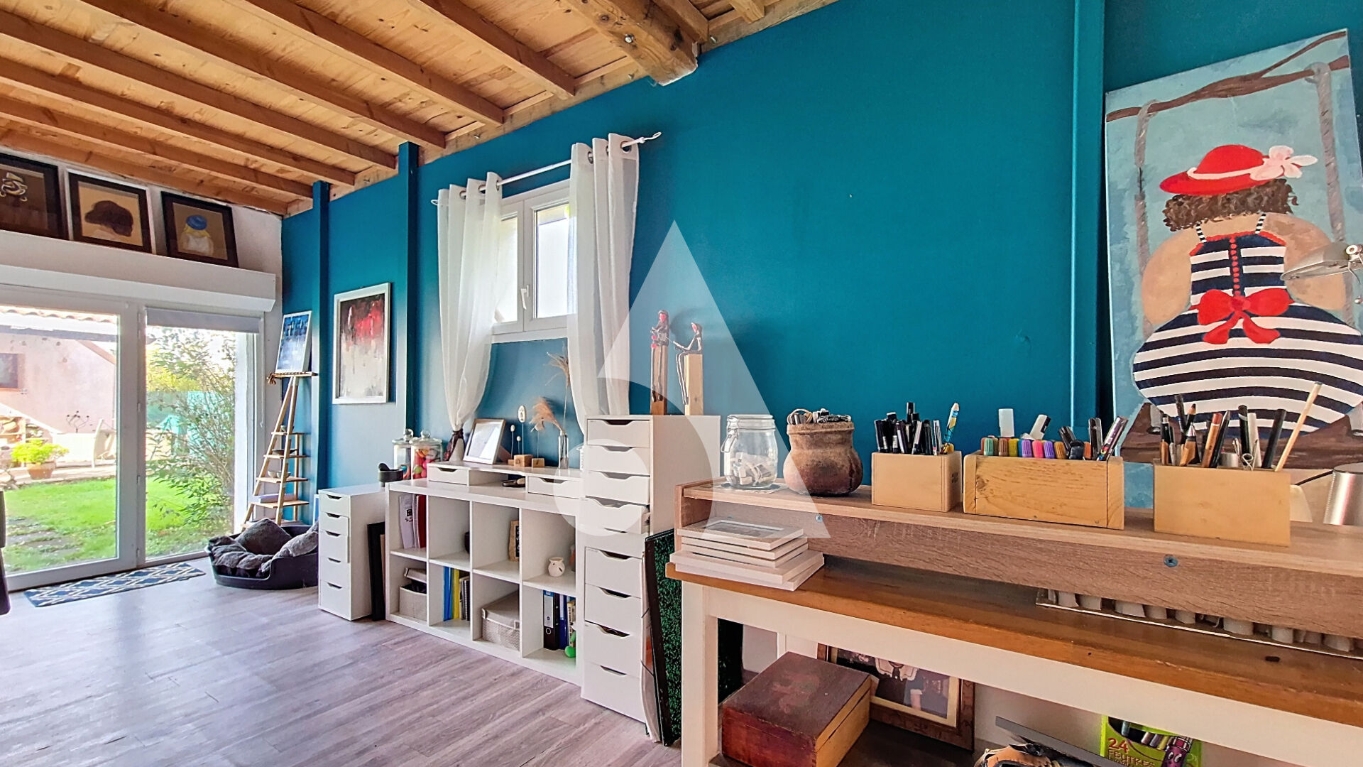 L'agence Stéphane Plaza Immobilier a le plaisir de vous présenter, en exclusivité cette belle villa récente de plain pied située dans un cadre champêtre, bucolique et paisible. Cette maison vous séduira par son charme, sa luminosité et son environnement verdoyant, offrant un véritable havre de paix pour toute la famille. Dès l'entrée, vous découvrirez une grande pièce de vie chaleureuse, et baignée de lumière naturelle. Son parquet élégant et son poêle à bois confèrent à cet espace une atmosphère conviviale et apaisante. La pièce de vie s'ouvre sur une cuisine équipée, fonctionnelle et accueillante, prolongée à l'arrière par une buanderie discrète, ainsi qu'une grande pièce lumineuse type atelier. Un bureau communiquant avec le séjour complète cet espace, idéal pour le télétravail ou un coin lecture. L'espace nuit propose deux chambres confortables et cocooning, Vous y trouverez également une salle de bains avec douche et vasque, ainsi qu'un WC indépendant. Les atouts supplémentaires de cette maison : une dépendance d'environ 20 m², parfaite pour un atelier, un bureau indépendant ou une chambre d'amis, déjà équipée de toilette et d'une petite salle d'eau. S'ajoutent également un garage, un grand local de rangement, et un terrain arboré offrant un bel espace extérieur. Depuis la pièce de vie, vous accédez directement à une terrasse en bois, exposée plein sud, avec une vue superbe sur la nature environnante. Un cadre idyllique où règnent calme et sérénité. Alors, si vous souhaitez en savoir plus, suivez moi pour une visite : je me ferai un plaisir de vous accompagner et de vous faire découvrir cette belle opportunité.