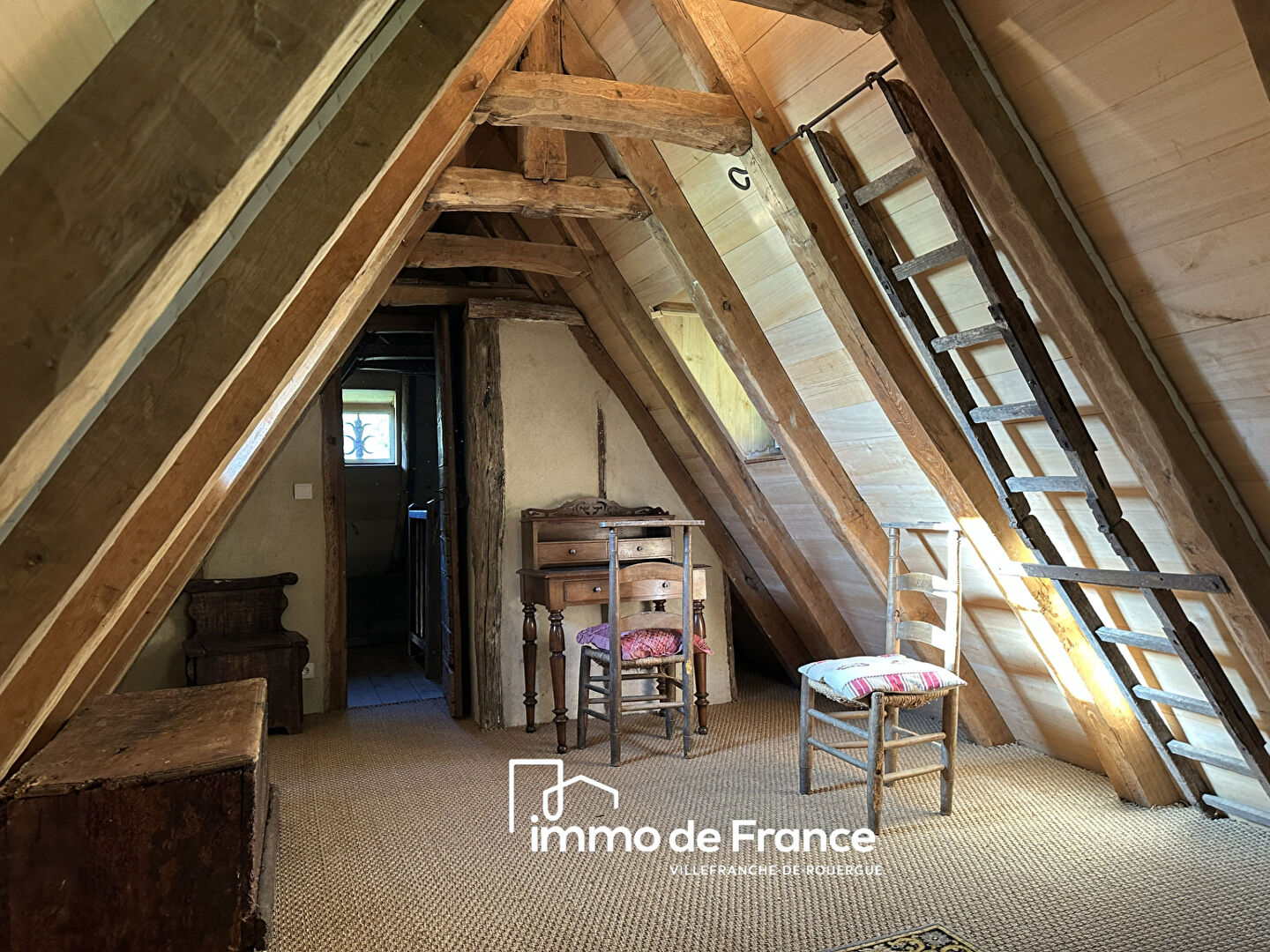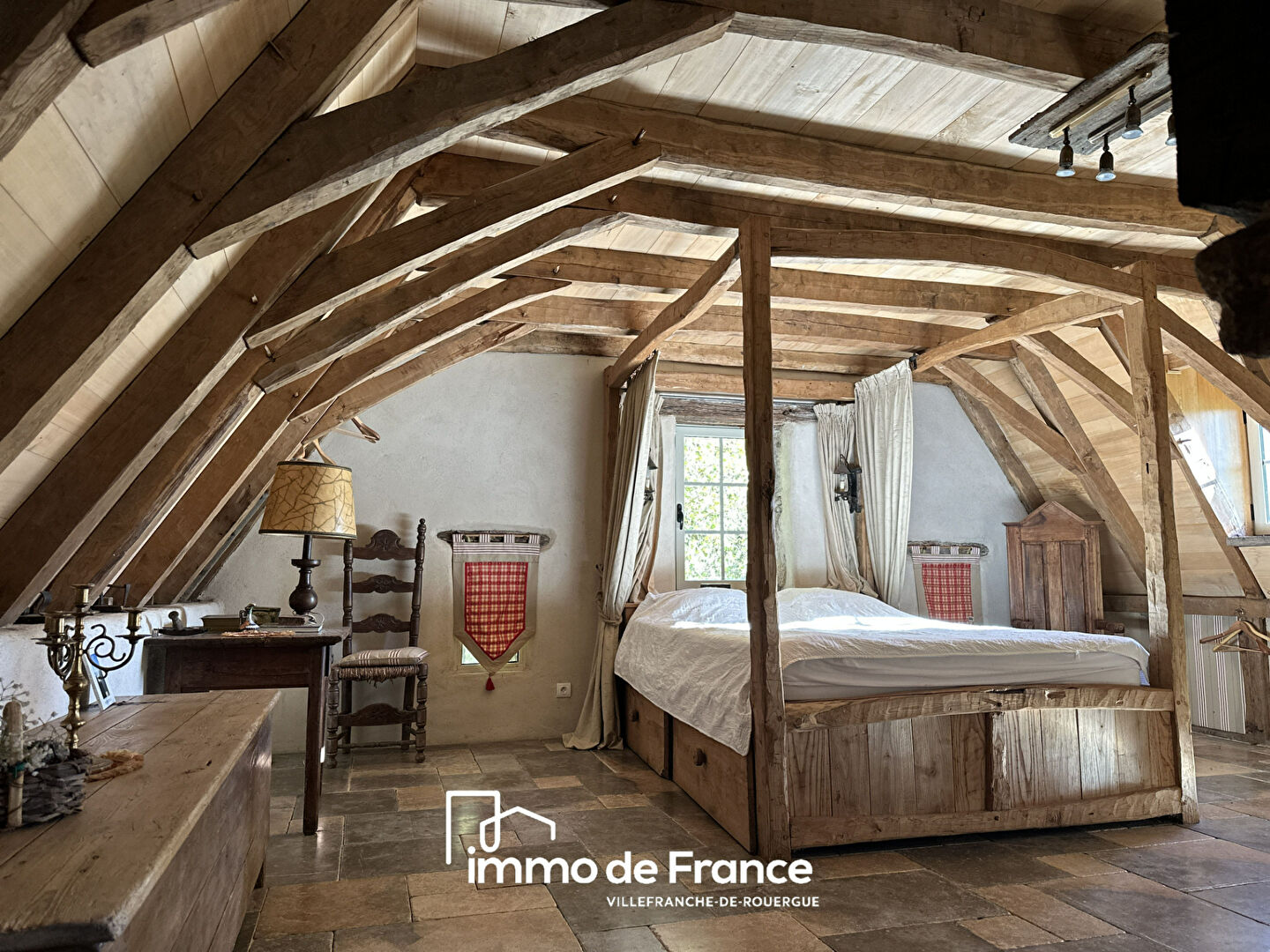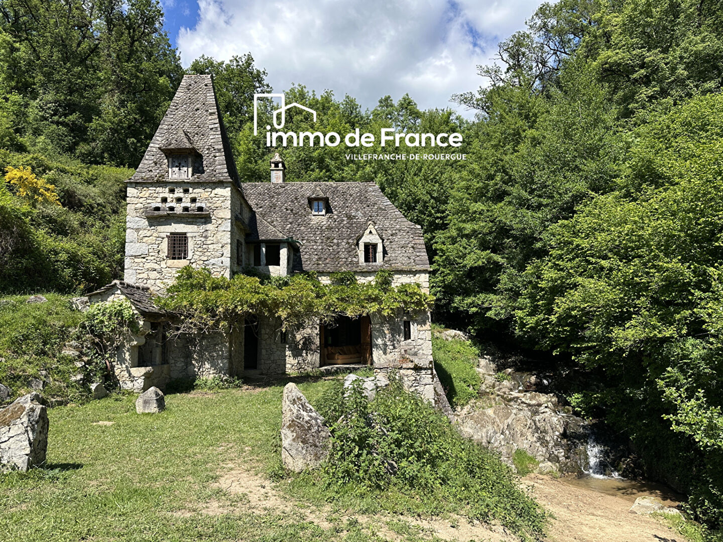 Maison pleine de charme et de caractère au coeur d'un domaine de 13 704 m² longé par un ruisseau. Près d'une jolie cascade, à l'abri de toute nuisance et de voisinage trop proche, au calme absolu, cette ravissante maison en pierre et toiture lauze, construction récente réalisée par des artisans passionnés avec les techniques et le savoir-faire d'autrefois est une bâtisse unique. Elle propose de plain-pied un séjour de 30 m² avec cuisine équipée et four à pains, salle d'eau et toilettes, au 1ier étage une chambre en suite de 40 m² avec cheminée, balcon, salle de bain et wc suspendu, une chambre mansardée au second et un couchage dans le pigeonnier. Maison aux belles prestations et matériaux de qualité à découvrir dans un bel environnement de nature, où le temps s'arrête, et pourtant à seulement quelques kilomètres du village et de ses commerces et à 10 minutes seulement de VILLEFRANCHE DE ROUERGUE. (5.00 % honoraires TTC à la charge de l'acquéreur.) Jérôme PONS (EI) Agent Commercial - Numéro RSAC : 483910717 - RODEZ.