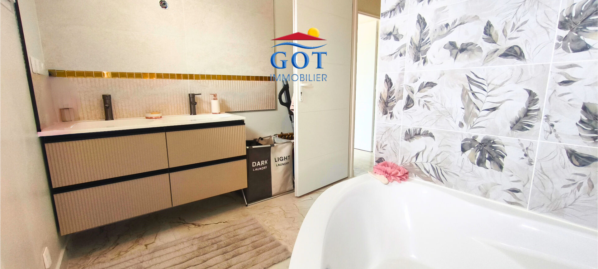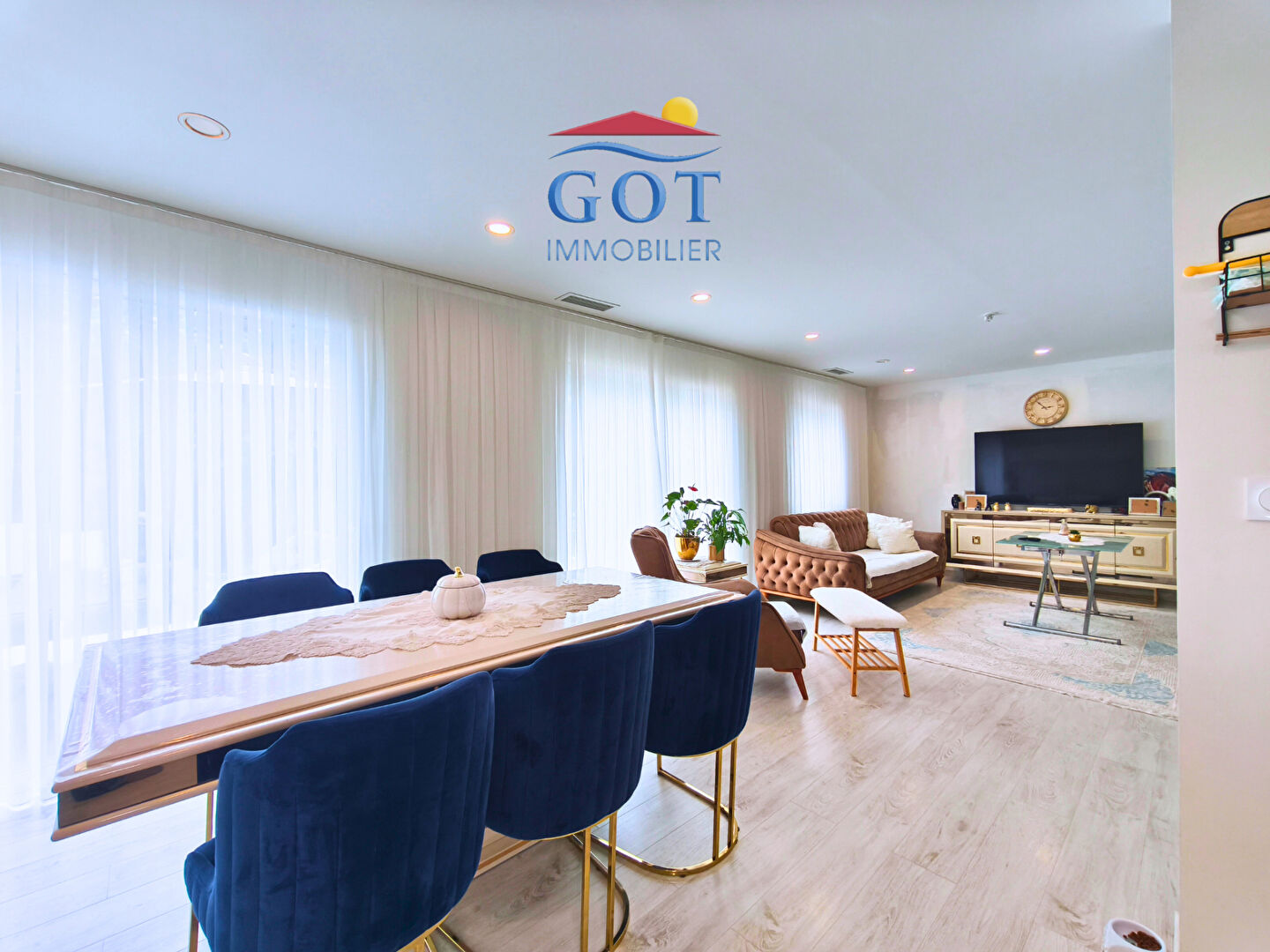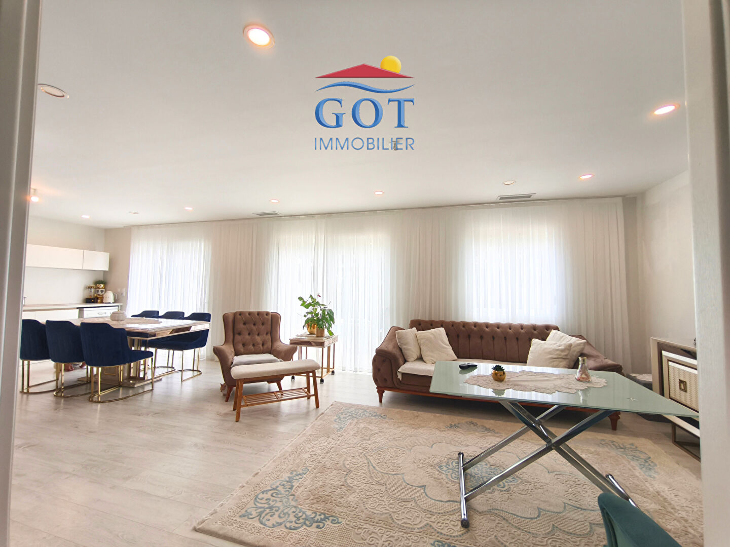 Maison récente de 2024, prête à habiter, DPE A, prestations de qualité, sans travaux. 127 m², 2 suites parentales avec salle d'eau, dont une en rez-de-chaussée, 2 chambres supplémentaires, très lumineuse, climatisation gainable, garage, terrasses, quartier résidentiel calme. Nouvelle opportunité suite à ajustement de prix. GOT Immobilier vous propose en exclusivité, à Estagel, cette maison récente achevée fin 2024, située dans un quartier résidentiel calme, sans vis-à-vis direct, dans un environnement recherché entre mer et montagnes. La maison développe 127 m² habitables environ et offre une distribution idéale pour une vie confortable au quotidien. Au rez-de-chaussée, une vaste pièce de vie de plus de 42 m², très lumineuse, accueille un séjour convivial avec cuisine ouverte entièrement équipée, pensée comme un véritable espace de vie. Une suite parentale avec salle d'eau privative permet une vraie vie de plain-pied. Toilettes indépendantes. A l'étage, une seconde suite parentale plus spacieuse avec salle d'eau, deux chambres supplémentaires, une salle de bain familiale et un second toilette indépendant. Deux terrasses, exposées est et ouest, permettent de profiter du soleil tout au long de la journée. Édifiée sur une parcelle de 267 m², la maison dispose d'un garage, d'une place de stationnement sur la parcelle ainsi que de nombreux stationnements à proximité. Le chauffage par climatisation gainable et la qualité de l'isolation expliquent son excellent DPE A, garantissant un confort thermique constant et une consommation maîtrisée en toutes saisons. La maison est lumineuse, aérée, agréable à vivre à toute heure de la journée. Les matériaux ont été choisis avec soin, les finitions sont soignées, et l'ensemble est immédiatement prêt à accueillir ses futurs occupants, sans travaux à prévoir. Une visite virtuelle complète est librement accessible, permettant de découvrir la maison à distance avant toute visite sur place. A moins de 5 minutes des écoles, commerces et services, Estagel est un village typique et vivant. Perpignan est accessible en environ 20 minutes en voiture, offrant un équilibre recherché entre calme résidentiel et proximité des services, commerces et axes principaux. Maison récente, aux prestations soignées et au confort de vie durable, 2 suites parentales, 2 chambres supplémentaires, terrasses, garage, calme, DPE A, visite virtuelle libre, exclusivité GOT Immobilier. Pour tout renseignement ou organiser une visite : Thierry Giro pour GOT Immobilier : 06 14 13 37 92