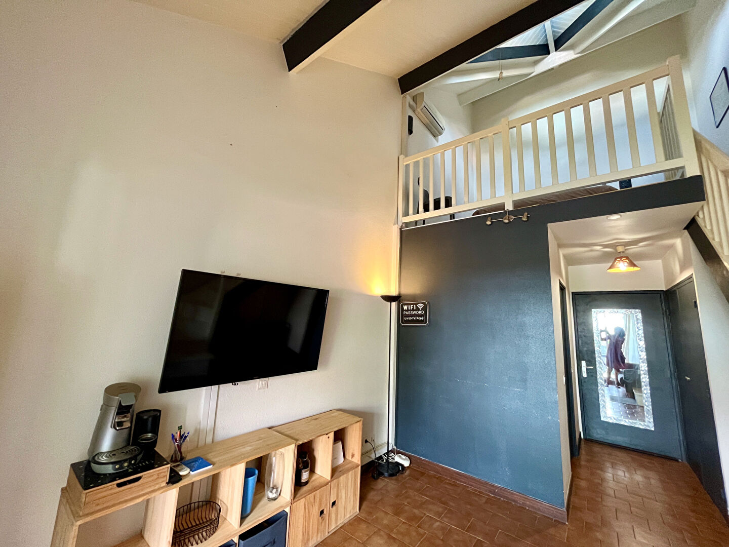 Environnement balnéaire réputé, proche du Club Med et de la célèbre plage de la Pointe Marin. Au premier étage d'une résidence paysagée et sécurisée avec piscine. Entrée sur salon, chambre en mezzanine, salle de bains avec WC, climatisation, terrasse avec kitchenette. SH : 29,01m2. Terrasse : 6,37 m2 Résidence en copropriété de 44 lots. Montant des charges moyennes annuelles : 2000 euros Prix : 134440 euros HAI (dont honoraires charge acquéreur de 7,76 % TTC soit 124 000 euros hors honoraires). Les informations sur les risques auxquels ce bien est exposé sont disponibles sur le site Géorisques : www.georisques.gouv.fr (8.42 % honoraires TTC à la charge de l'acquéreur.) Copropriété de 44 lots - dont 44 lots habitation. (Pas de procédure en cours). Charges annuelles : 2000 euros.