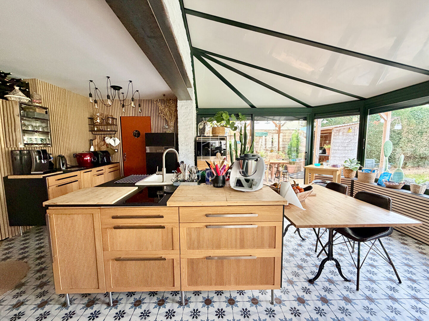 TRANGE - A vendre belle maison de 180 m² située à dans le centre-ville, offrant un cadre de vie agréable et calme. Cette propriété dispose de 8 pièces, avec 5 chambres, dont une au rez-de-chaussée avec salle d'eau. Vous apprécierez son espace de vie lumineux de 80 m² donnant sur une belle et grande véranda prête à accueillir vos futurs moments de famille. Laissez vous séduire par une cuisine moderne, lumineuse et entièrement aménagée, pensée pour allier convivialité et fonctionnalité au quotidien. , Le chauffage est assuré par une pompe à chaleur et un poêle à granulés pour un confort optimal. L'extérieur de la maison est en excellent état, avec des fenêtres en PVC double vitrage et des volets roulants en PVC. Le terrain arboré et paysagé est entièrement clos, sans vis-à-vis, offrant ainsi une belle intimité. Localisée à proximité de plusieurs établissements scolaires, dont le Lycée d'enseignement général et technologique agricole, ainsi que des commerces tels que boulangeries et restaurants, cette maison est idéale pour une famille. Prix de vente : 369 000 euros. Référence : 342756-CC. Pour plus d'informations, contactez l'agence IHOME. Agent commercial Cédric COLLET / 945 255 990 R.S.A.C. Le Mans. (3.94 % honoraires TTC à la charge de l'acquéreur.)
