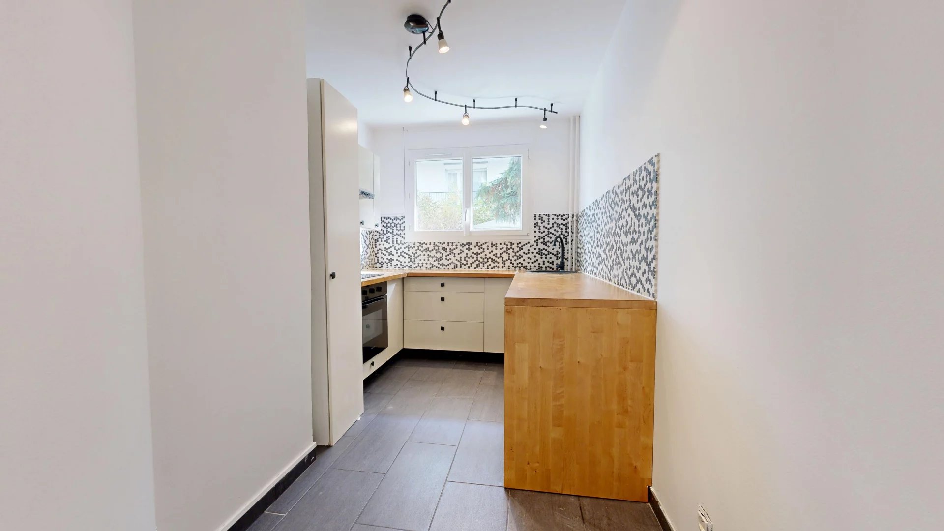 L’appartement s’organise autour d’une grande cuisine indépendante, spacieuse et fonctionnelle, idéale pour préparer vos repas en famille. Le séjour, lumineux, ouvre directement sur le jardin privatif, offrant un véritable prolongement de l’espace de vie dès les beaux jours.