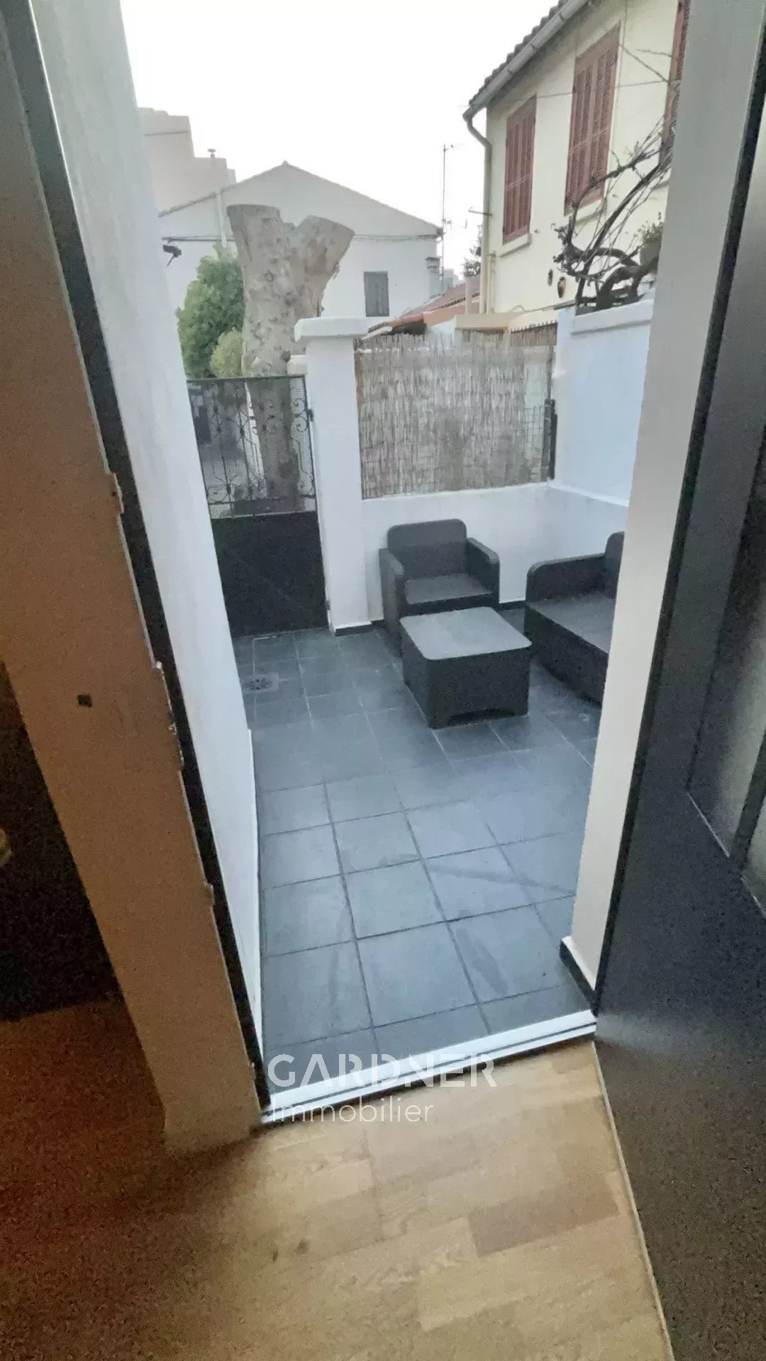 MARSEILLE 10 /Rue GARNIER. Maison de ville mitoyenne des deux côtés. Type 3 de 38,47m2 avec terrasse. Au calme. Composée d’une entrée donnant sur le séjour, cuisine ouverte équipée, salle d’eau, toilette séparé. Une petite chambre et un dressing. Logement parfaitement décoré et soigné. Possibilité de louer un garage dans la rue environ 90€/mois. Toiture et façade refaites. Double vitrage, climatisation. Le DPE du logement est en cours. Actuellement loué 1 100€/ mois, rentabilité env 7%33. Le locataire partira sur demande. Taxe foncière 718€.