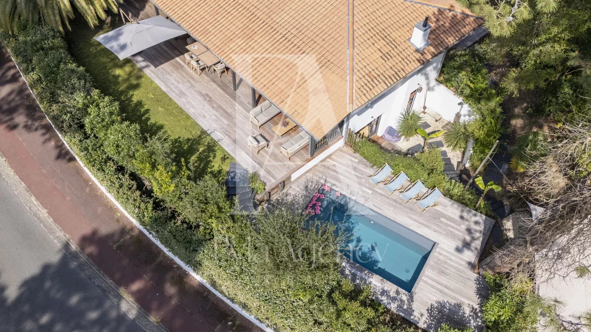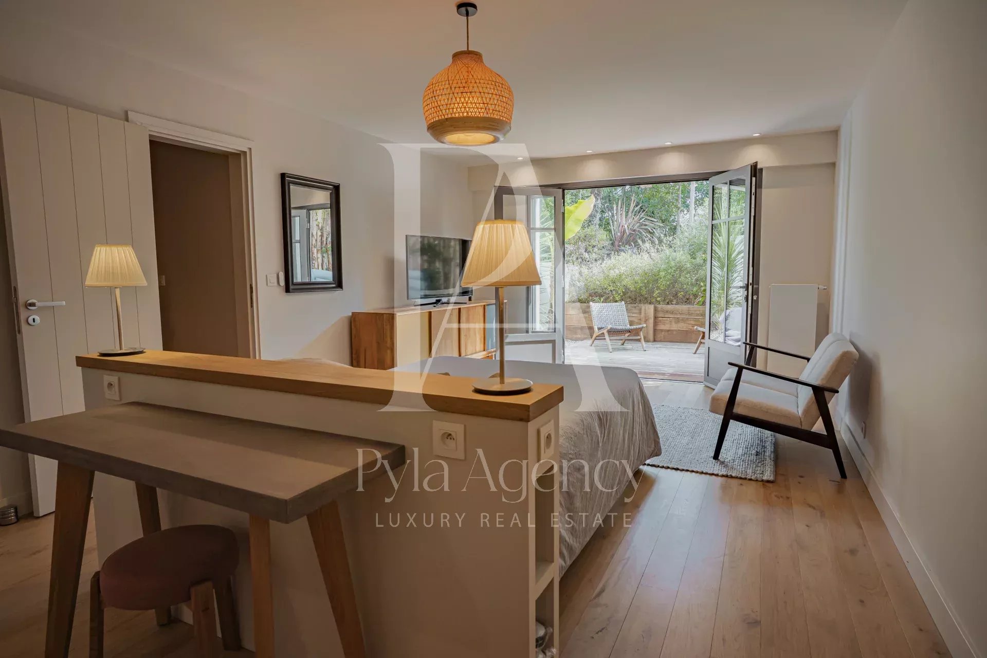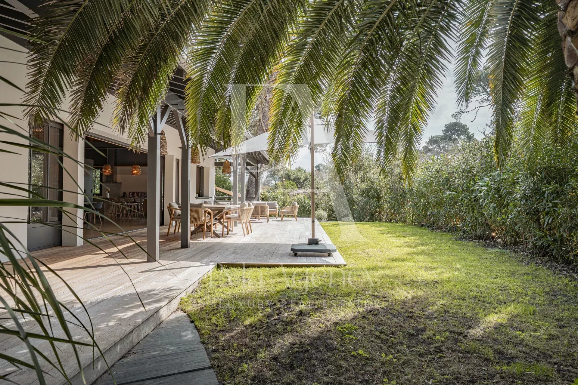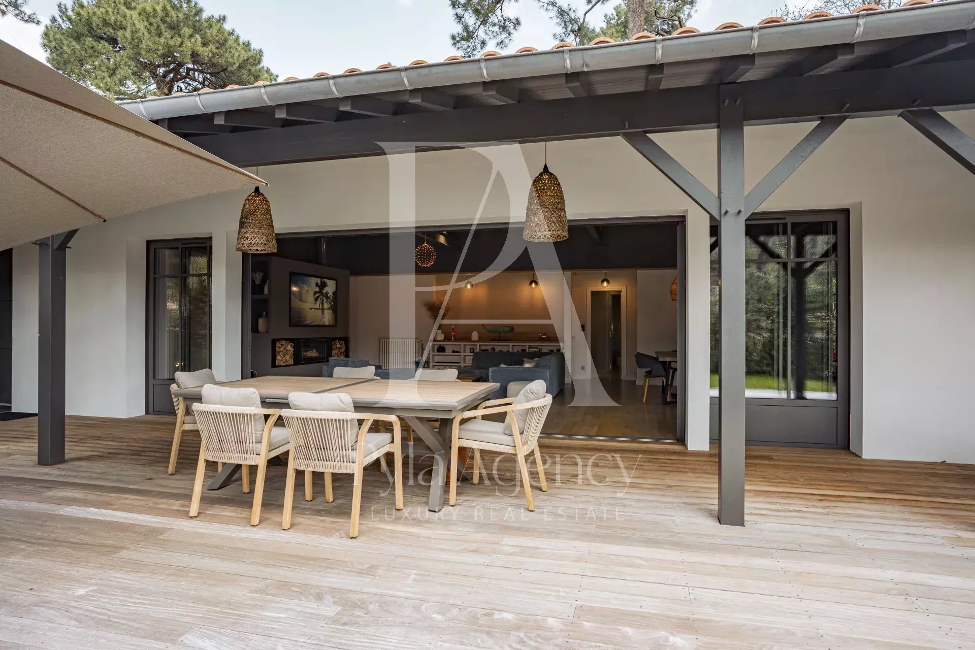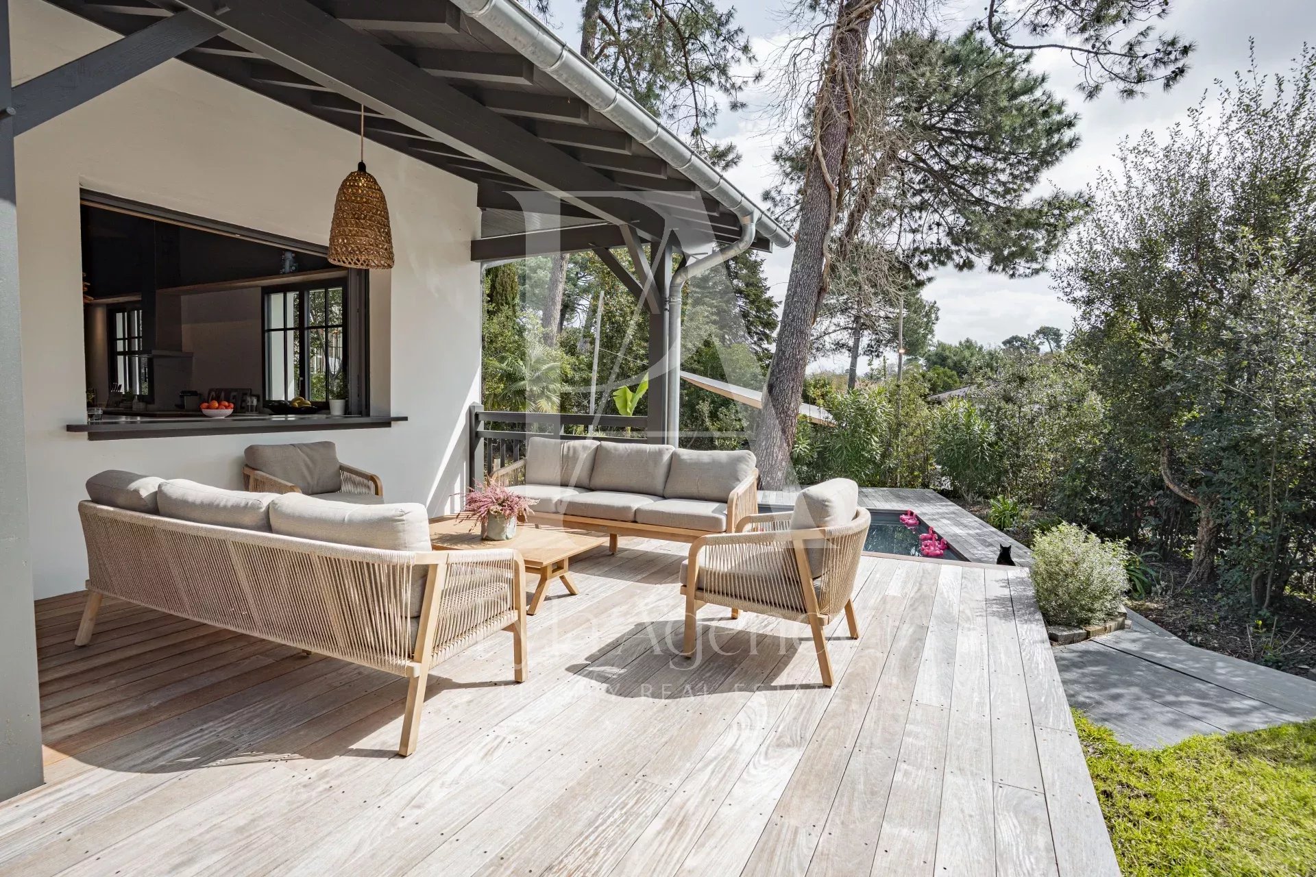 Située au cœur du prestigieux quartier de Pereire, à quelques pas des plages, cette villa contemporaine d’architecte incarne le raffinement et l’élégance. Dès l’entrée, vous serez séduit par ses volumes généreux et son atmosphère lumineuse. Le vaste espace de vie de plus de 80 m² réunit un salon et une cuisine conviviale aux lignes épurées, ouvrant sur la terrasse et la piscine. La villa dispose de 5 chambres spacieuses, dont une somptueuse suite parentale, pensées pour offrir confort et intimité à toute la famille. À l’extérieur, une piscine élégante bordée de terrasses invite à la détente dans un cadre paisible et ensoleillé. Les matériaux nobles et les prestations haut de gamme confèrent à ce bien un caractère unique, alliant design contemporain et confort absolu. Une adresse rare où luxe, sérénité et art de vivre se rencontrent.