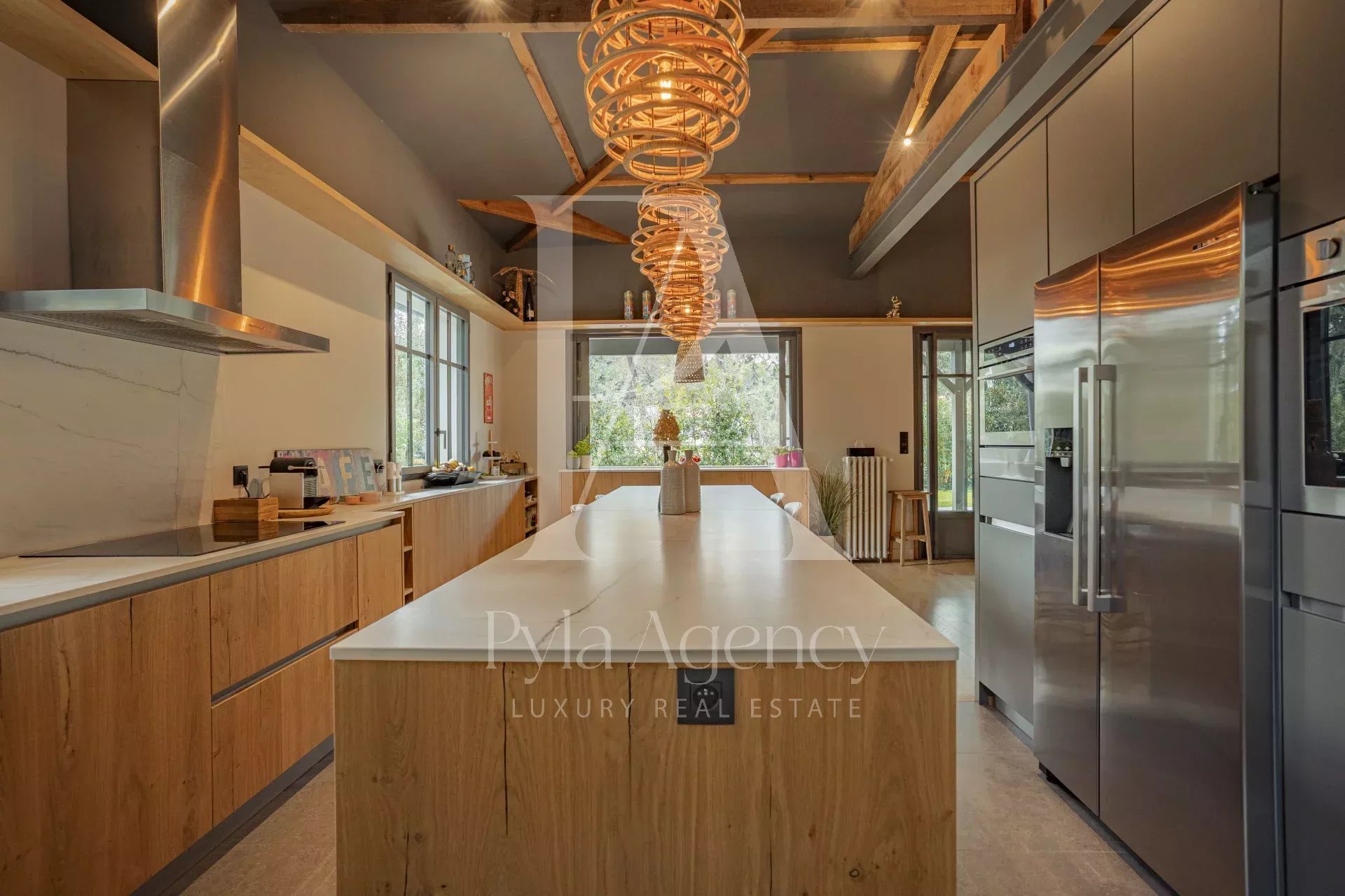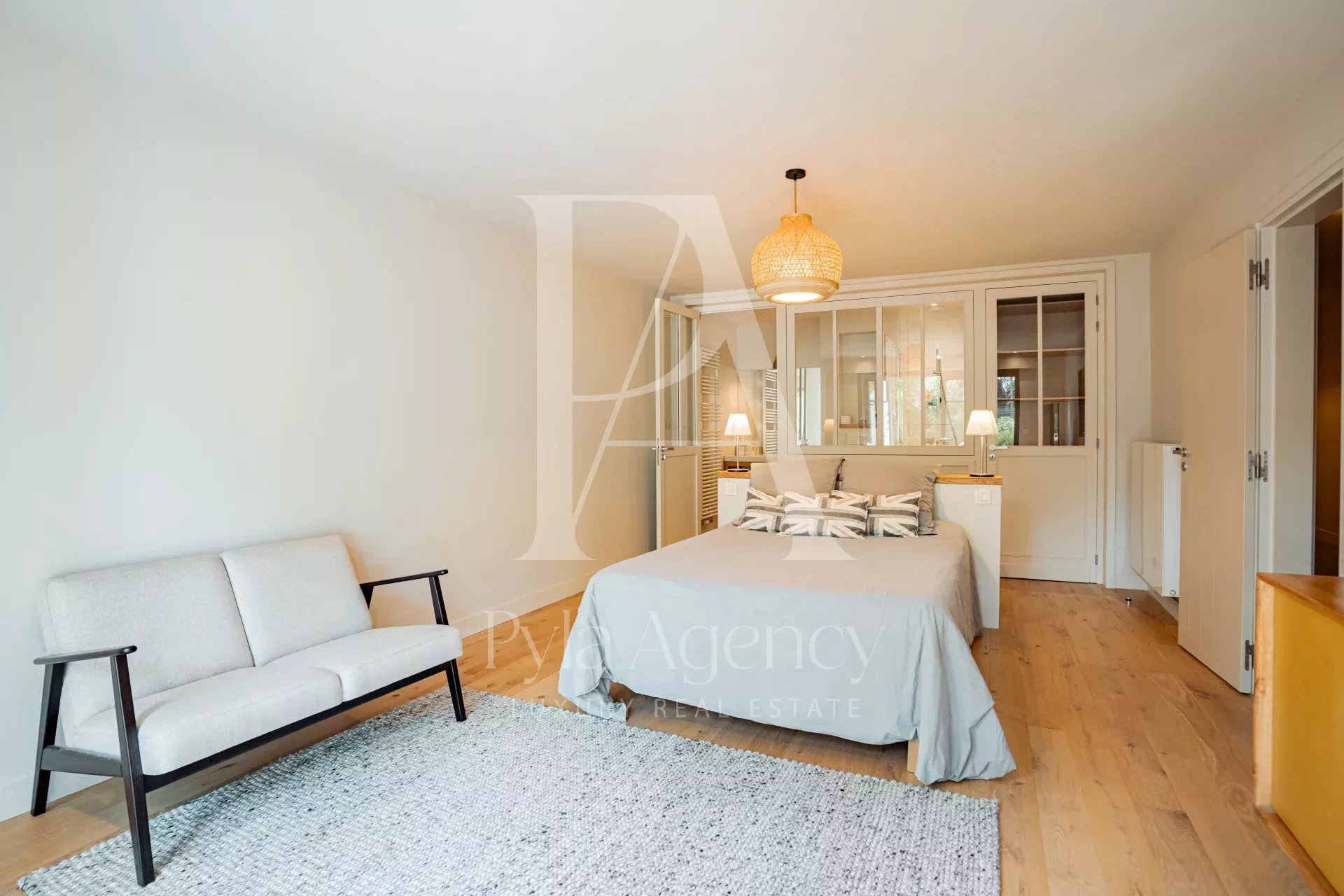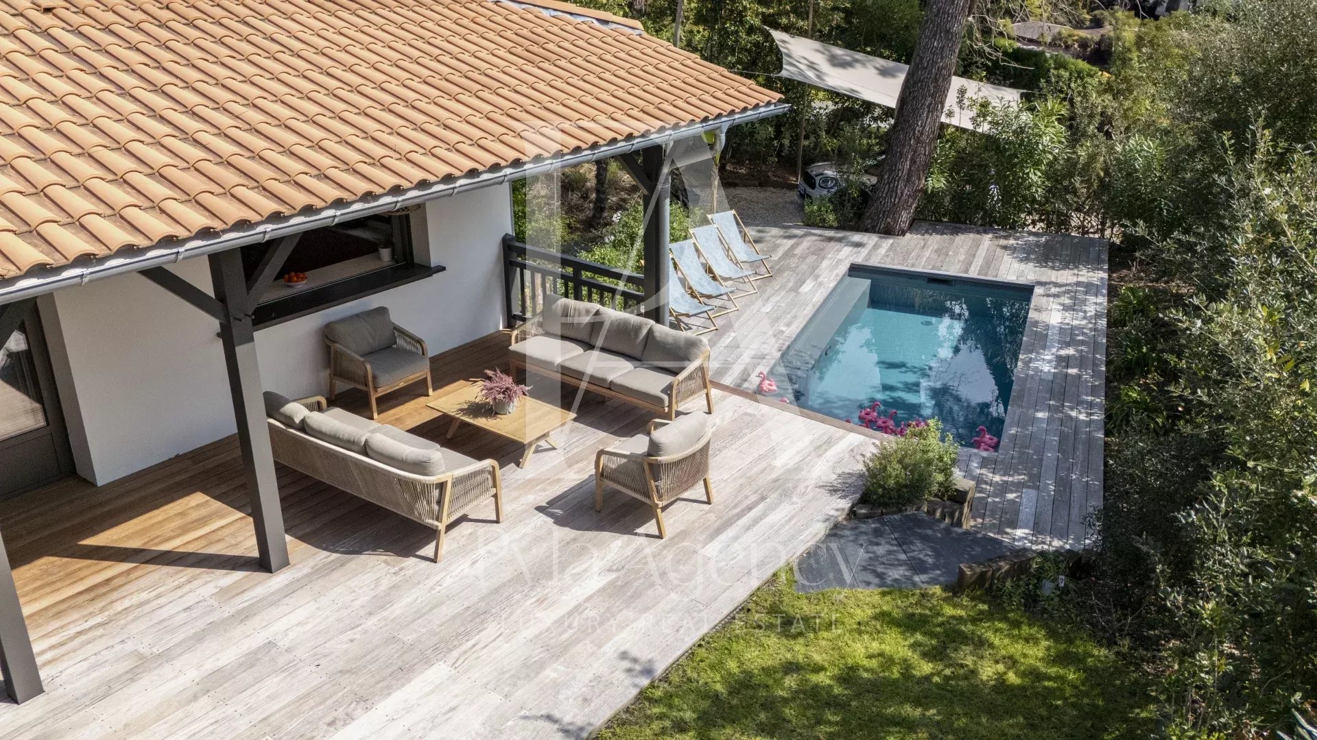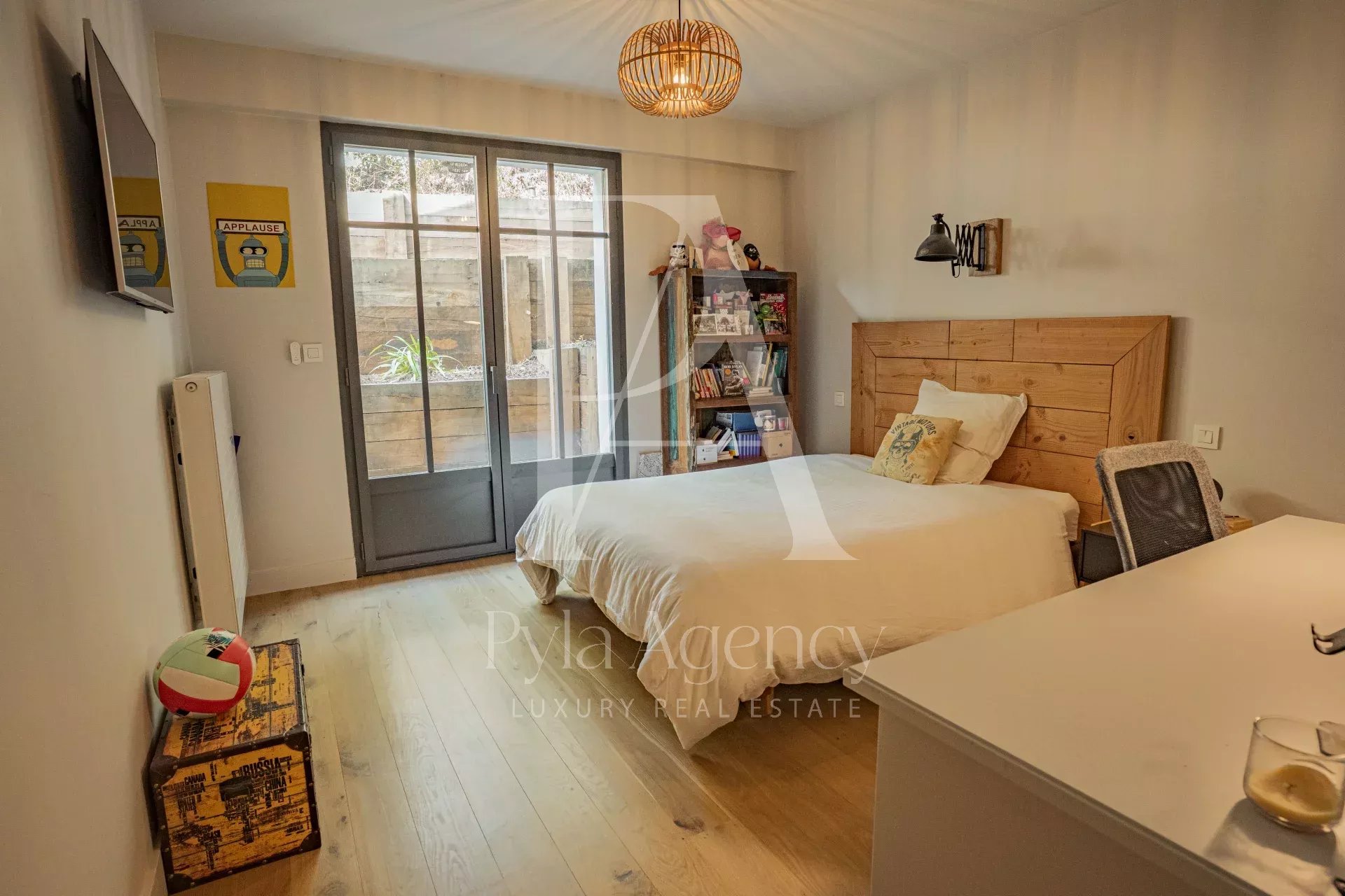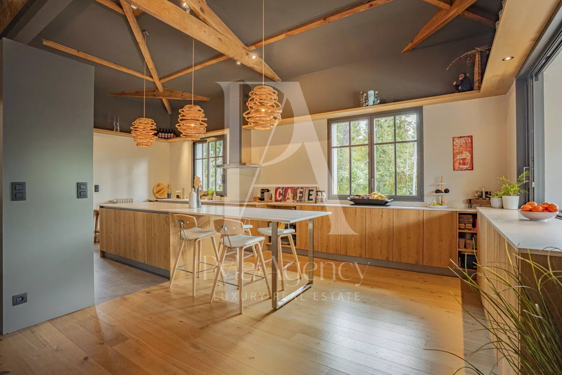 Située au cœur du prestigieux quartier de Pereire, à quelques pas des plages, cette villa contemporaine d’architecte incarne le raffinement et l’élégance. Dès l’entrée, vous serez séduit par ses volumes généreux et son atmosphère lumineuse. Le vaste espace de vie de plus de 80 m² réunit un salon et une cuisine conviviale aux lignes épurées, ouvrant sur la terrasse et la piscine. La villa dispose de 5 chambres spacieuses, dont une somptueuse suite parentale, pensées pour offrir confort et intimité à toute la famille. À l’extérieur, une piscine élégante bordée de terrasses invite à la détente dans un cadre paisible et ensoleillé. Les matériaux nobles et les prestations haut de gamme confèrent à ce bien un caractère unique, alliant design contemporain et confort absolu. Une adresse rare où luxe, sérénité et art de vivre se rencontrent.