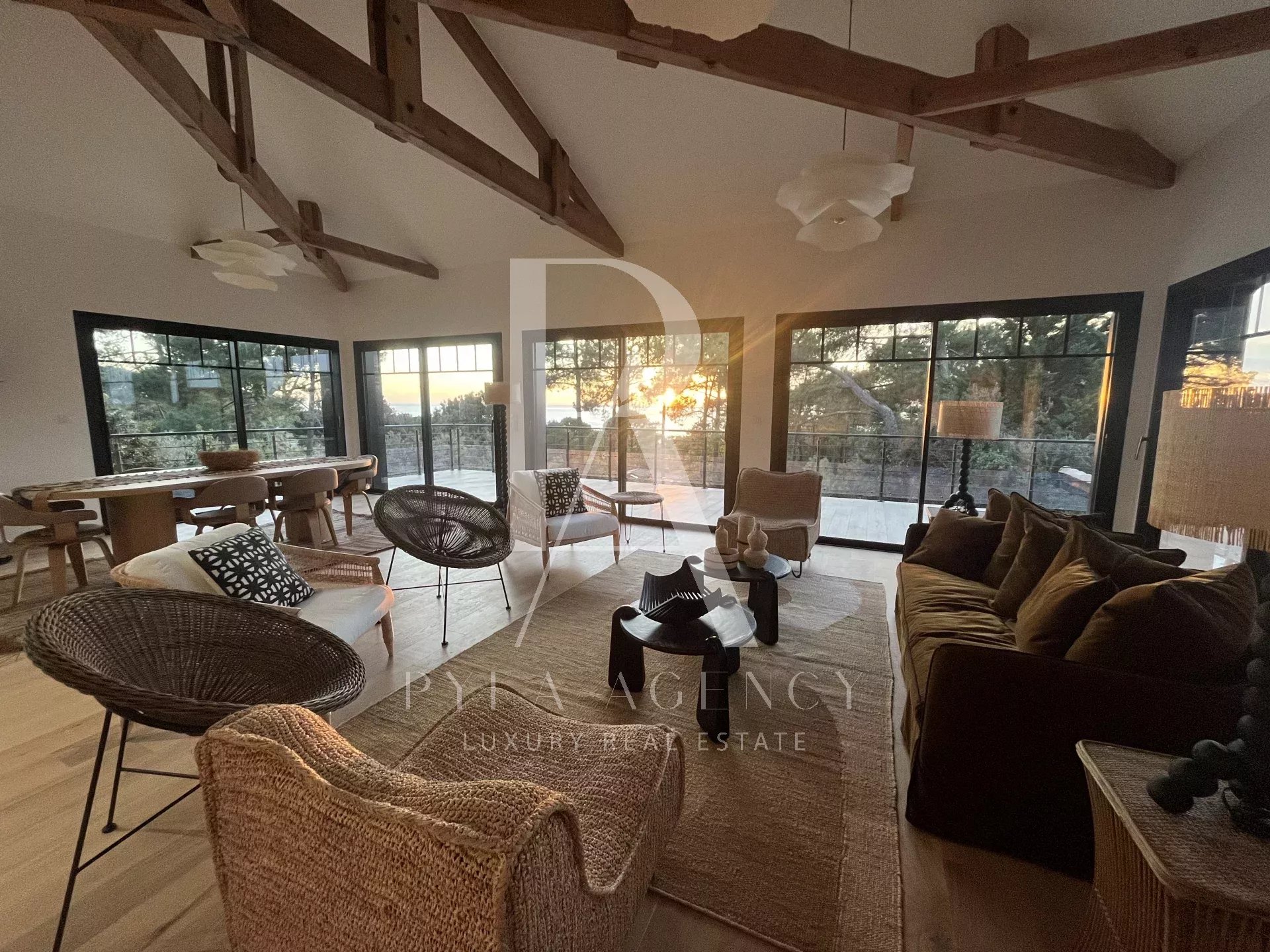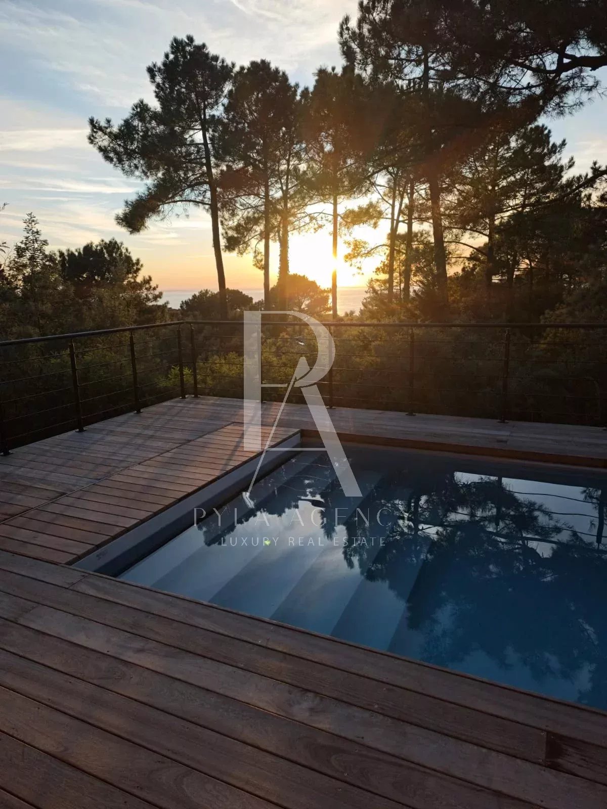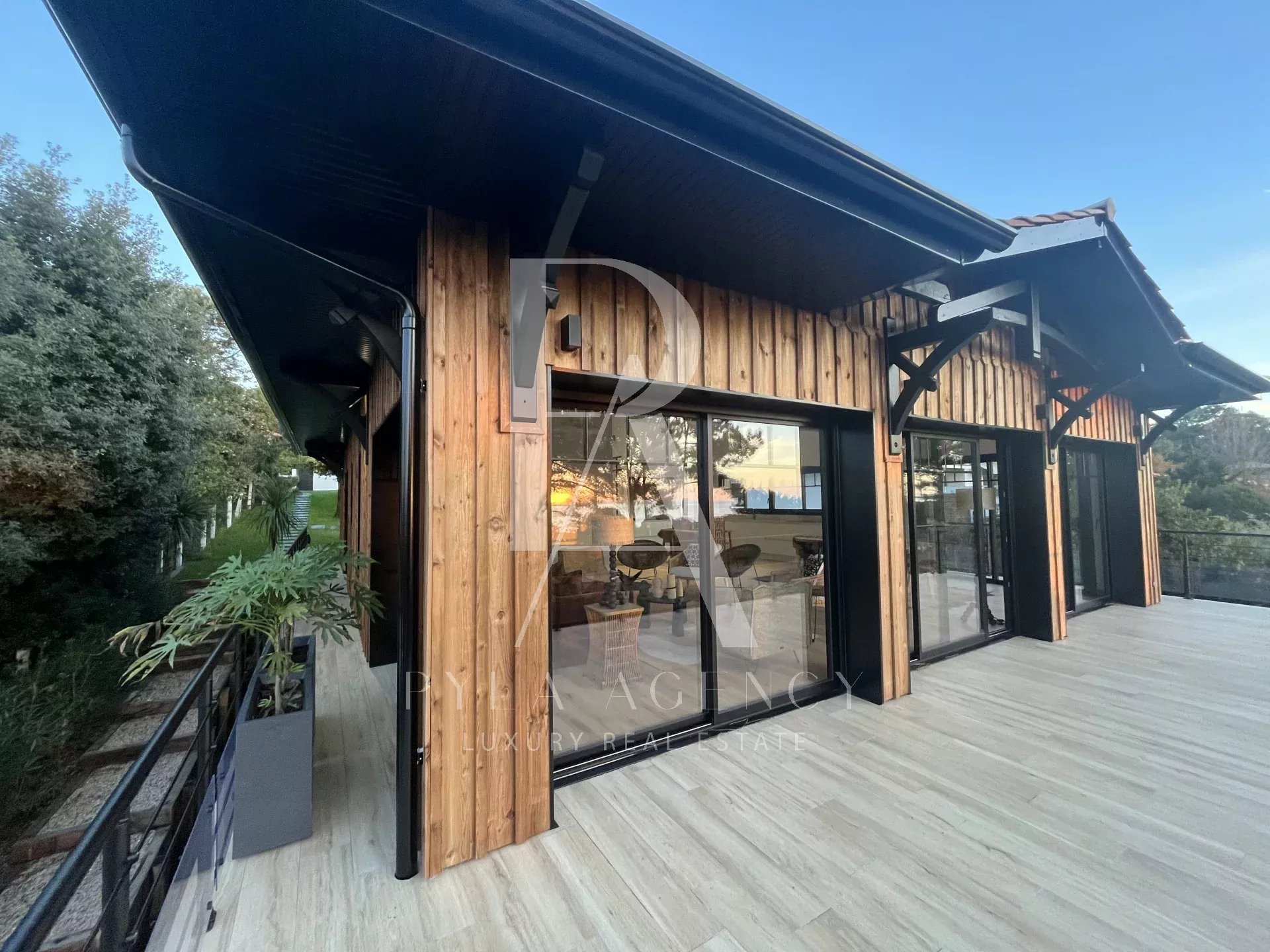 Cette magnifique villa entièrement rénovée offre de belles prestations et un cadre de vie d'exception avec vue imprenable sur le bassin. La cuisine moderne, ouverte sur un vaste séjour lumineux doté d'un plafond cathédrale crée un espace convivial et chaleureux. Une suite parentale avec son dressing et sa salle d'eau, un cellier et un toilette indépendante complètent le niveau principal. Au rez-de-chaussée vous trouverez quatre chambres, trois salles d'eau, une buanderie et un garage. Coté extérieur profitez d'un agréable espace détente avec une piscine de 27m² avec son pool house idéal pour les journées ensoleillées.
