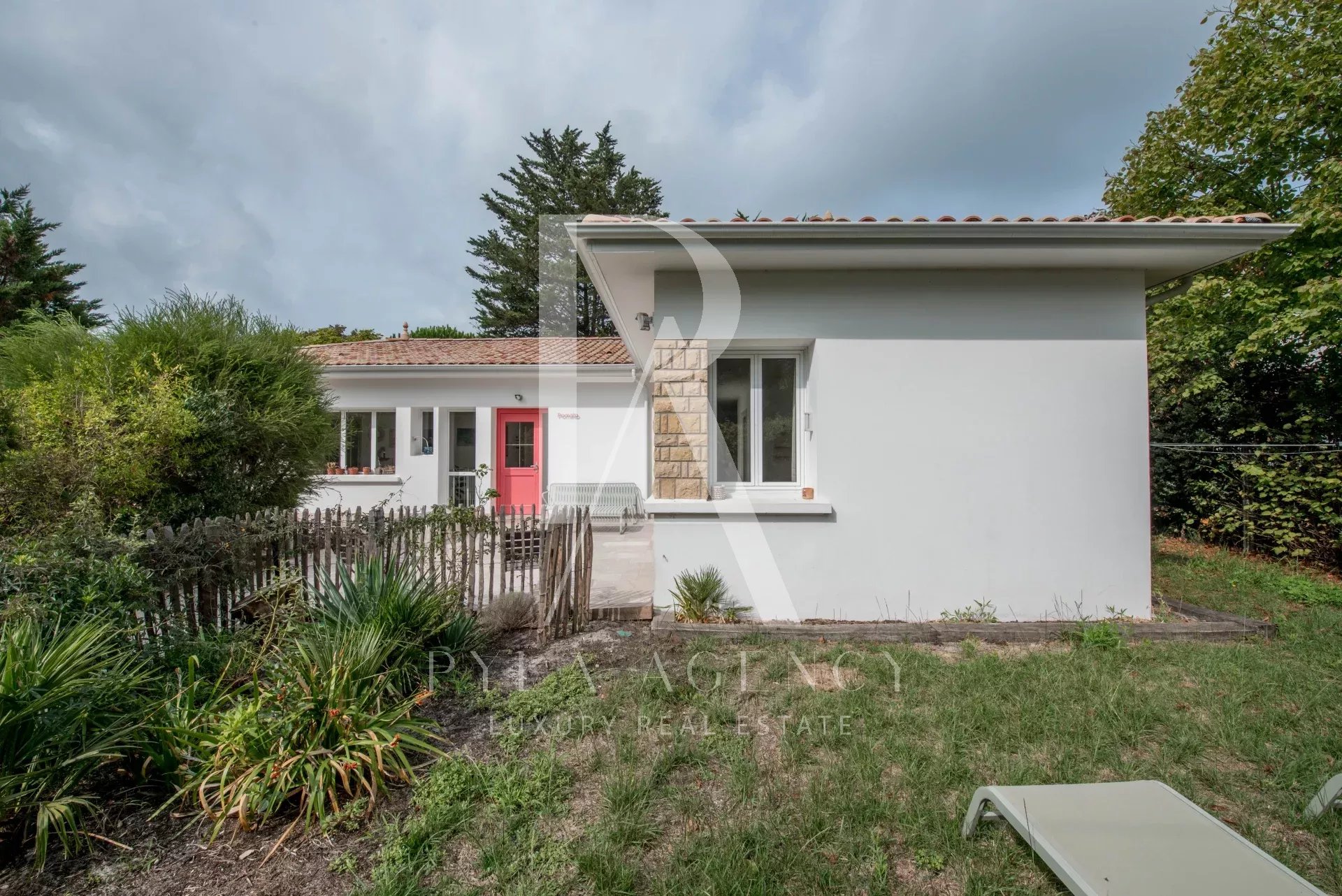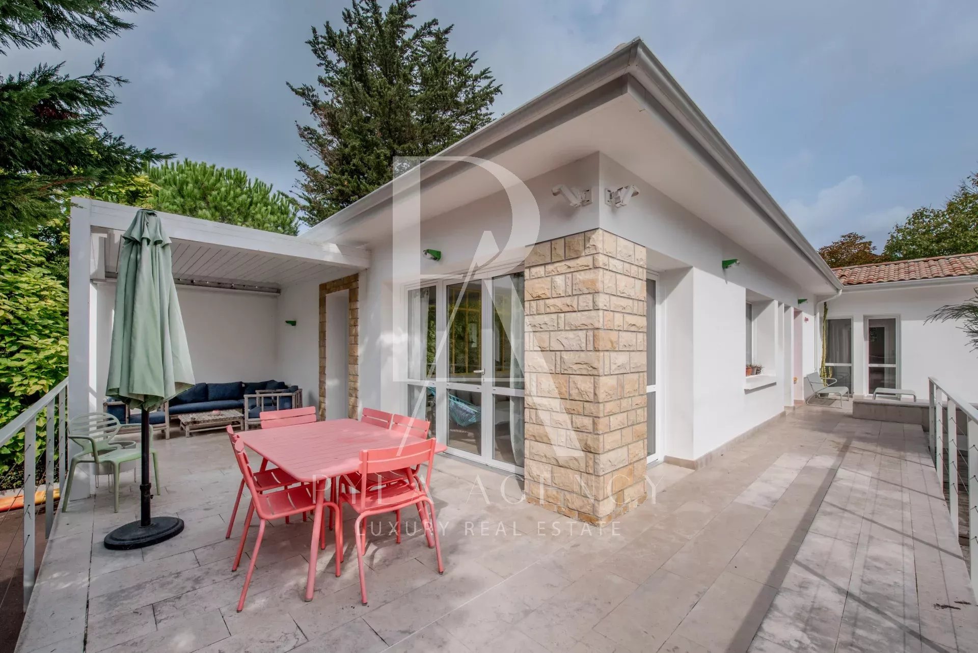 Idéalement située au cœur du Moulleau, à quelques pas de la plage, cette villa d’environ 210 m² séduit par son architecture typique et qualitatif. Édifiée sur un terrain de 980 m², elle a été rénovée en 2015 dans le respect de son style d’origine, tout en intégrant une touche contemporaine : verrière d’atelier, couleurs vives et volumes généreux offrent une atmosphère chaleureuse et actuelle. Répartie sur deux niveaux, la maison propose des espaces de vie distincts et lumineux. Le rez-de-chaussée accueille une entrée avec dressing, un vaste séjour prolongé par de grandes terrasses, ainsi qu’une cuisine séparée par une élégante verrière. Quatre chambres se partagent trois salles d’eau et trois toilettes. Le rez-de-jardin abrite un salon supplémentaire, un bureau et une buanderie, avec un accès direct au jardin paysager. À l’extérieur, un espace convivial avec terrain de pétanque, abri couvert et quatre places de stationnement complète l’ensemble. Le jardin peut accueillir une piscine (4x9 m), et la propriété offre un beau potentiel d’agrandissement d’environ 180 m².