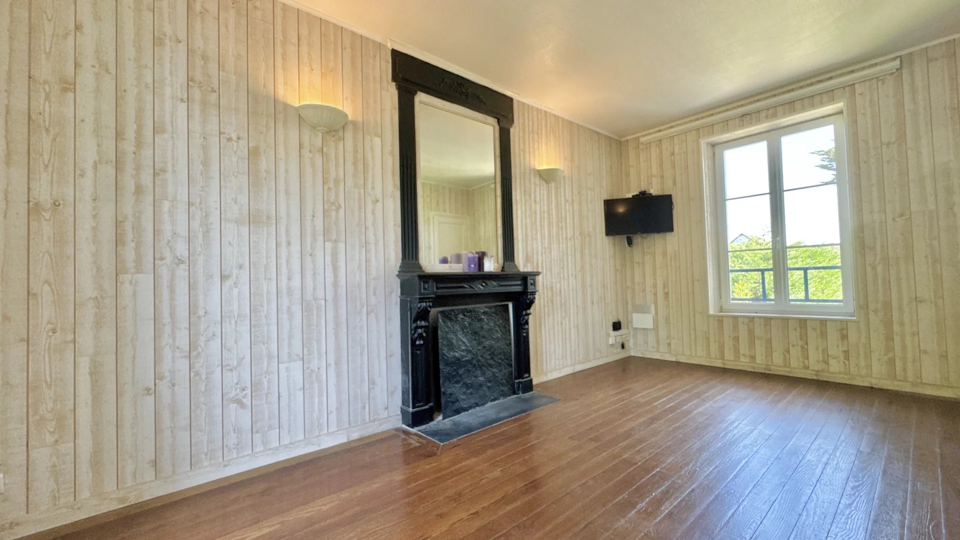 Au rez-de-chaussée, une entrée dessert une chambre, un salon cosy avec cheminée, une cuisine aménagée et équipée, ainsi qu'une salle de bains avec sanitaires.