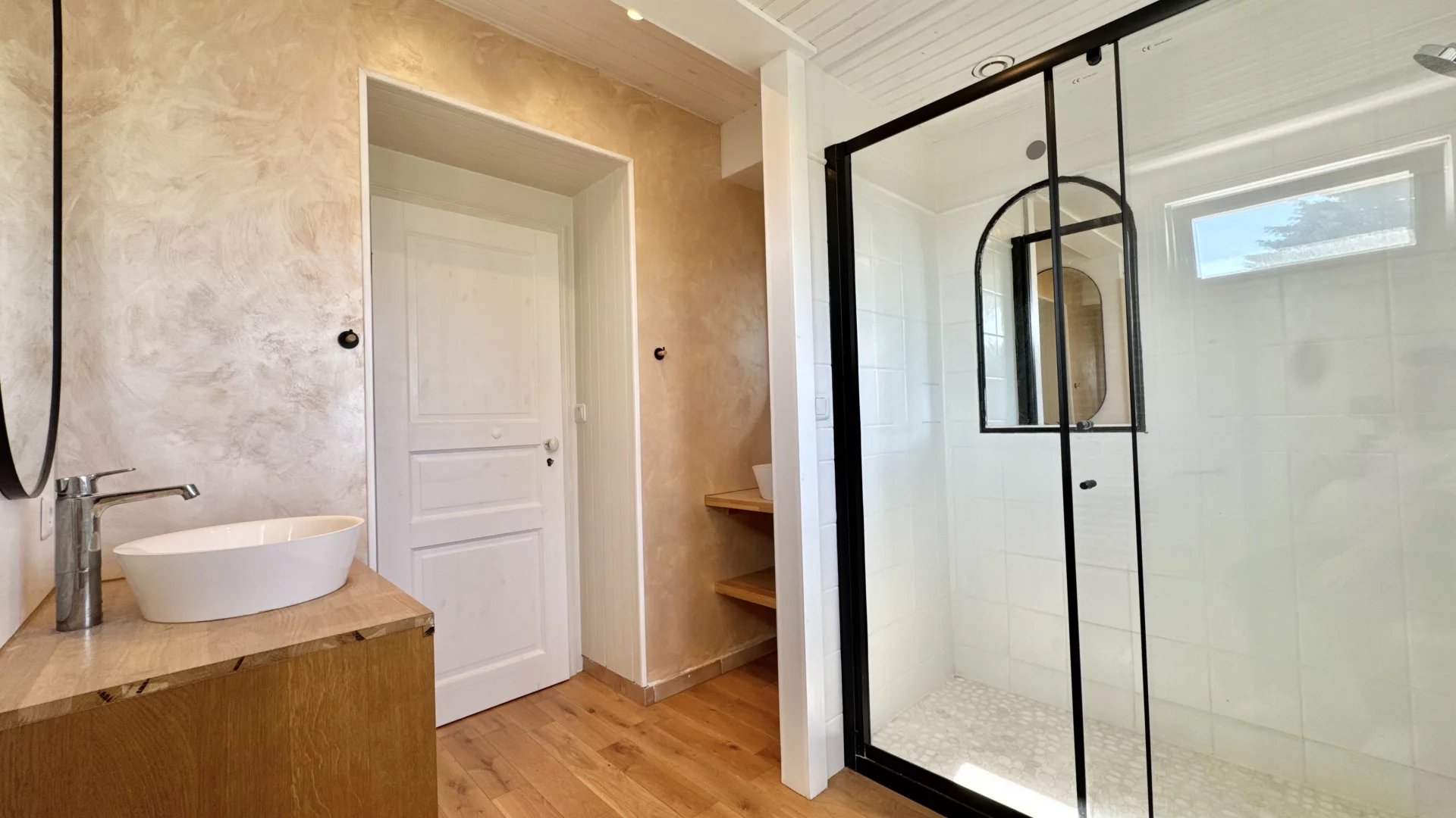 Élevée sur un joli jardin arboré sans vis-à-vis, elle offre un cadre de vie chaleureux, idéal pour une résidence principale comme secondaire.