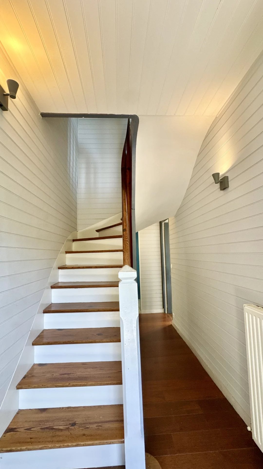 À l'étage, trois chambres, un espace commun et une salle d'eau viennent compléter l'espace nuit.