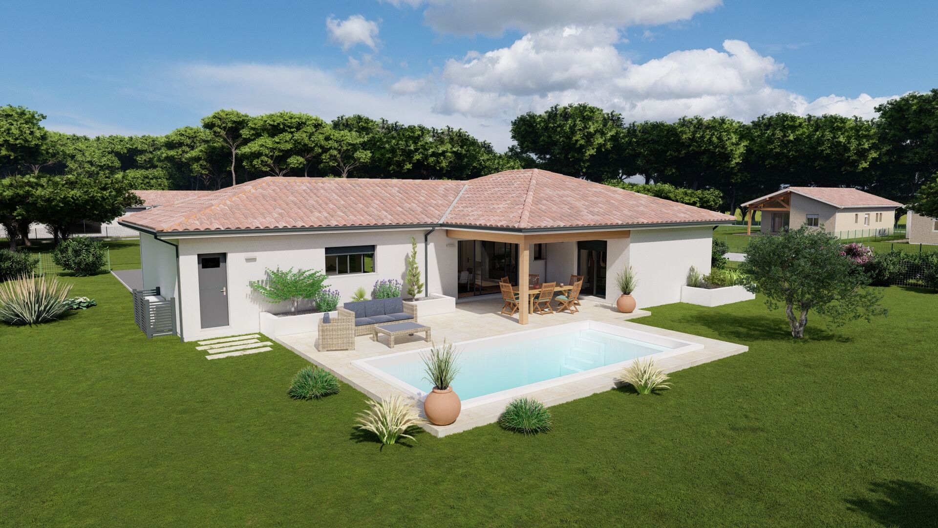 Maison + terrain + frais de notaire + terrassement + raccordements à partir de 285 000 euros. Dommage-ouvrages et garanties de parfait achèvement et de livraison à prix et délais convenus incluses.
