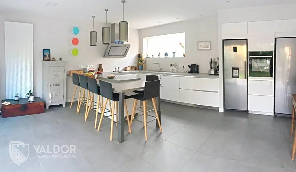 Le rez-de-chaussée propose une vaste pièce de vie lumineuse ouverte sur une cuisine équipée moderne, idéale pour les moments de convivialité. Un salon avec cheminée pour des moments de détente en hiver et une suite parentale complètent le rez de chaussé.