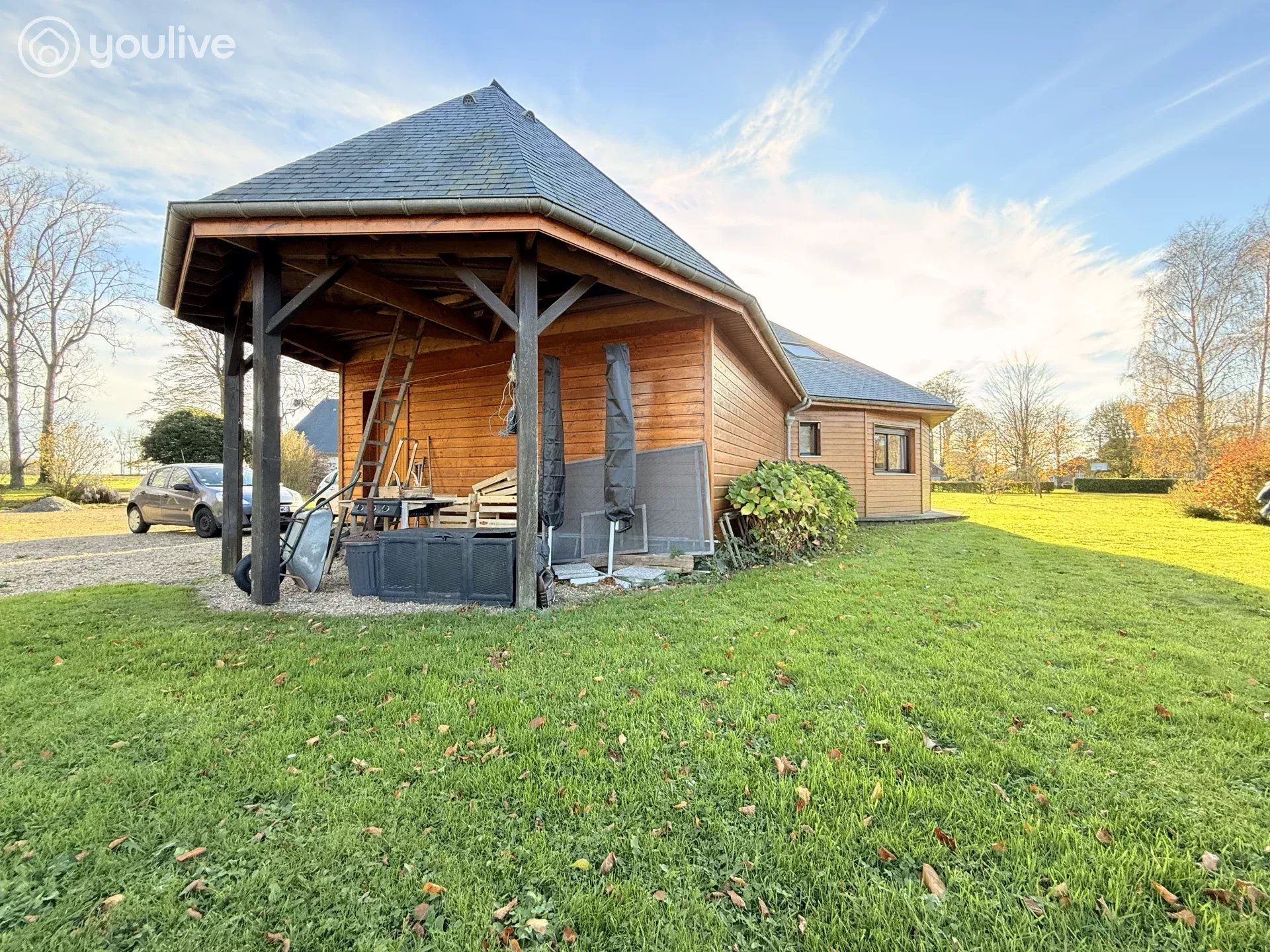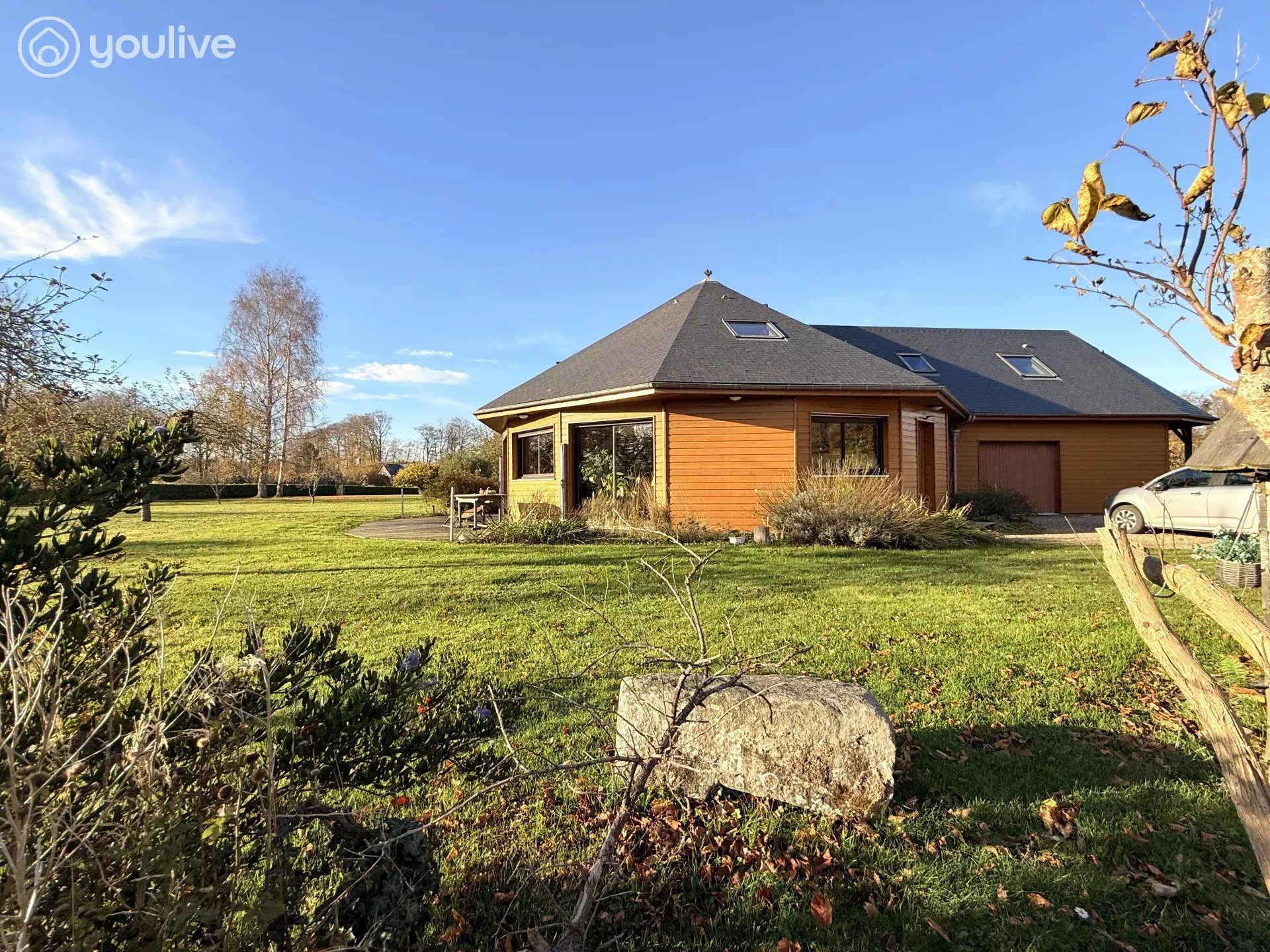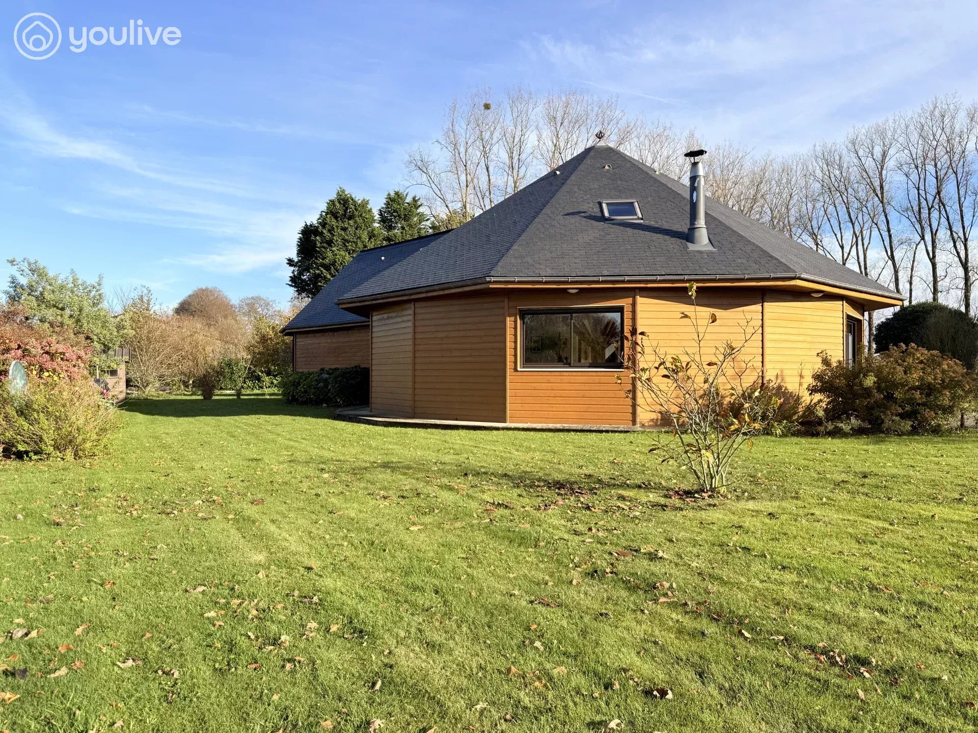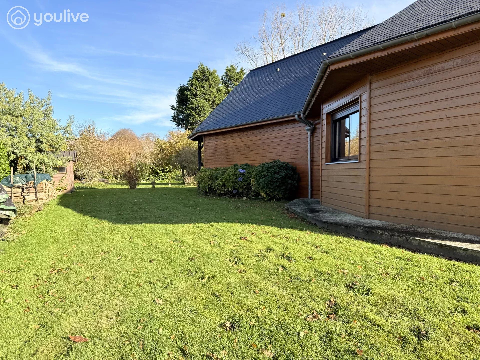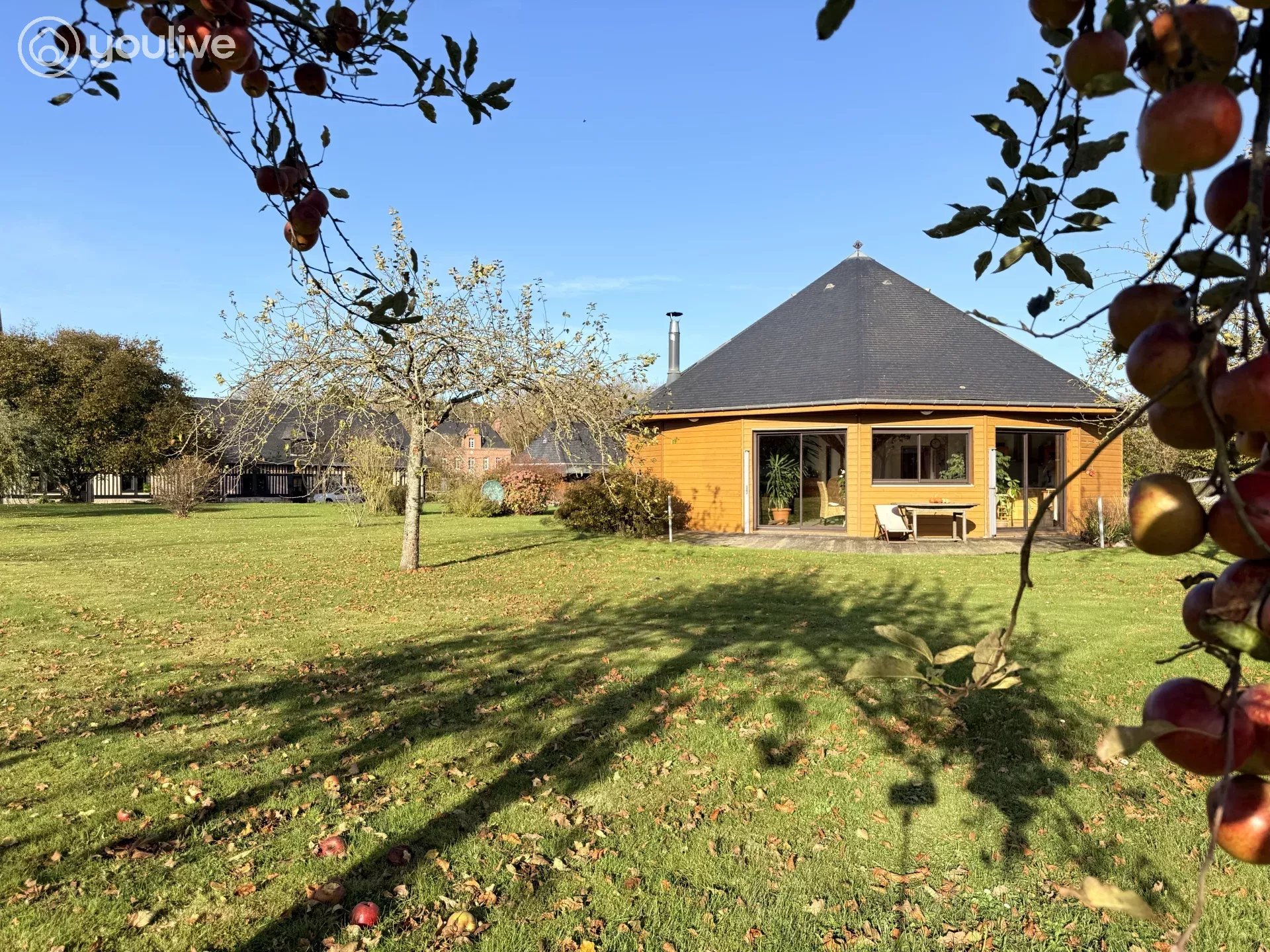 Située dans un village calme, à moins de 10 minutes de Saint-Valery-en-Caux et Veules-les-Roses, cette maison en bois au toit d’ardoises livre une combinaison rare : prestations soignées, volumes généreux et cadre naturel préservé.