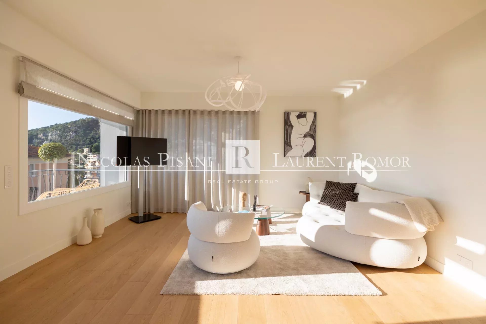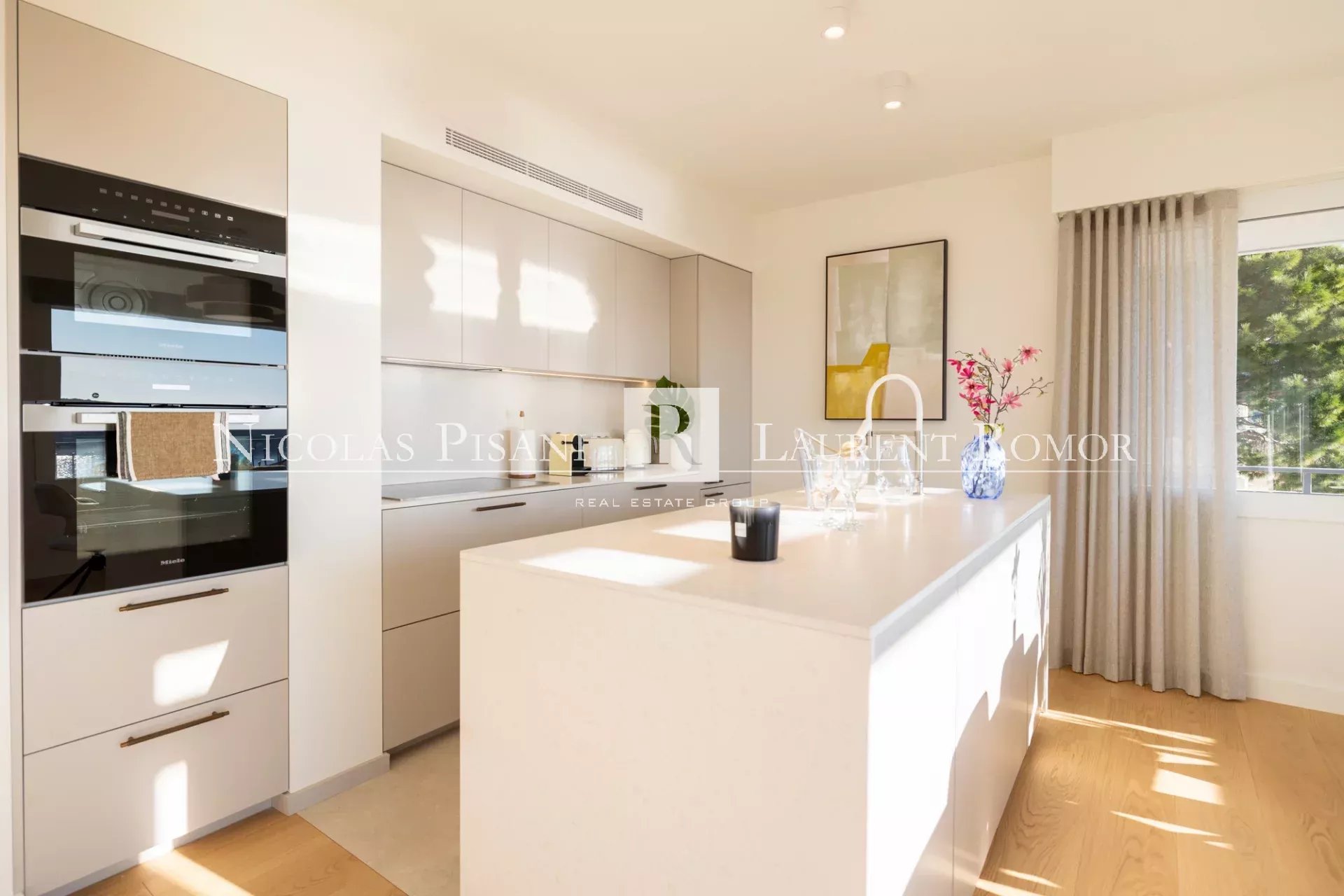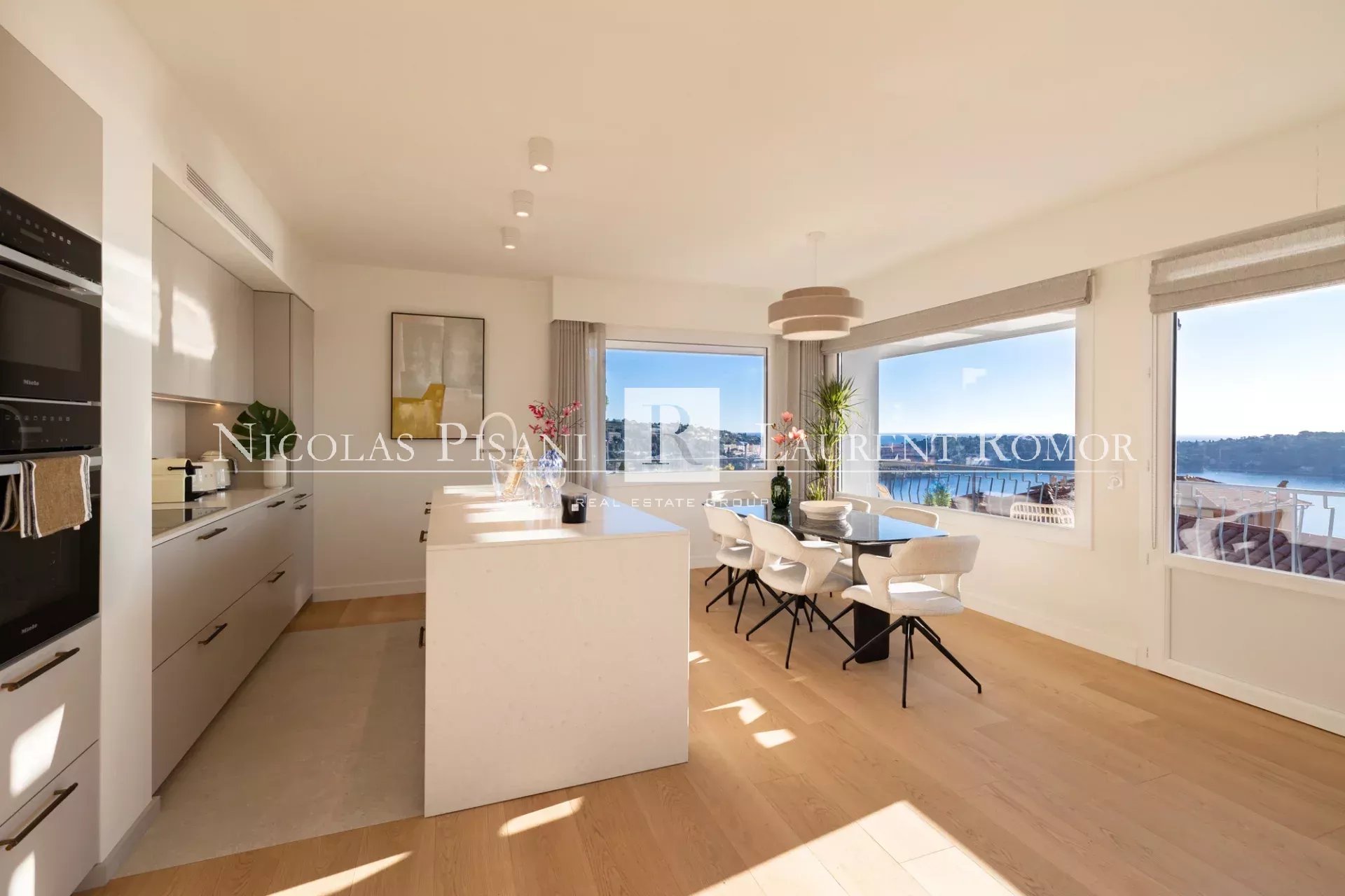 Récemment rénové, cet appartement au calme offre une belle vue dégagée sur la mer. Il se compose de trois chambres en suite ainsi que d’un vaste séjour avec cuisine ouverte, prolongé par une large terrasse orientée face à la pièce de vie. Le toit-terrasse, entièrement aménagé, constitue un espace extérieur supplémentaire particulièrement appréciable. Un stationnement aisé devant la copropriété. Honoraires d'agence sont à la charge du vendeur.