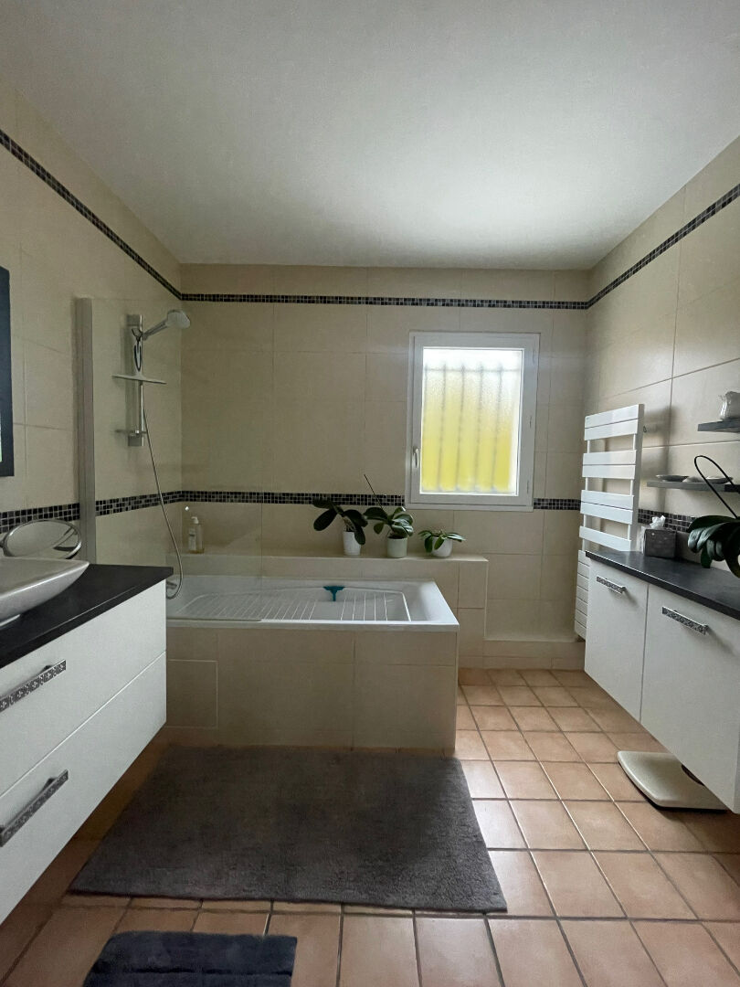 Elégante maison familiale de style néo-classique de 180 m² habitables de type 7, se distingue par son charme et ses volumes généreux. Salon-séjour salle à manger de 65m². Cuisine aménagée équipée. 5 chambres dont 1 suite parentale au rez de chaussée. Buanderie. Cour pavée. Garage accolé de 22m. Implantée sur une parcelle arborée de 1060 m².