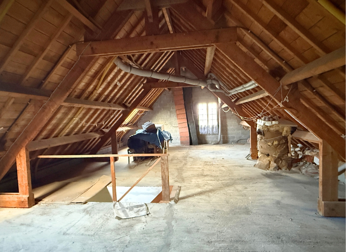 JT 997 - Située en campagne à Saint-Alban, cette maison de 1979 offre une véritable vie de plain-pied sur 73,90 m², complétée par un étage à aménager selon vos besoins. Au rez-de-chaussée, ce bien dispose d'une cuisine de 14 m², d'un séjour lumineux de 23 m², de deux chambres, d'une salle d'eau et d'un WC indépendant. L'étage, accessible par un escalier existant, propose un grand volume brut permettant la création de chambres supplémentaires, d'une salle de bains ou d'un bureau... tout y est envisageable grâce au plancher béton déjà en place. Le terrain de 1 600 m², actuellement en cours de bornage, offre une cour, une pelouse et un potager, sans clôture, avec une orientation Sud-Est côté façade principale. La propriété comprend également un garage accolé avec grenier et un grand hangar indépendant de 85 m², idéal pour un atelier, du stockage ou des loisirs. Un bien à rénover, mais dont la localisation, les volumes et les possibilités d'évolution en font une opportunité rare dans un environnement calme. (5.00 % honoraires TTC à la charge de l'acquéreur.)