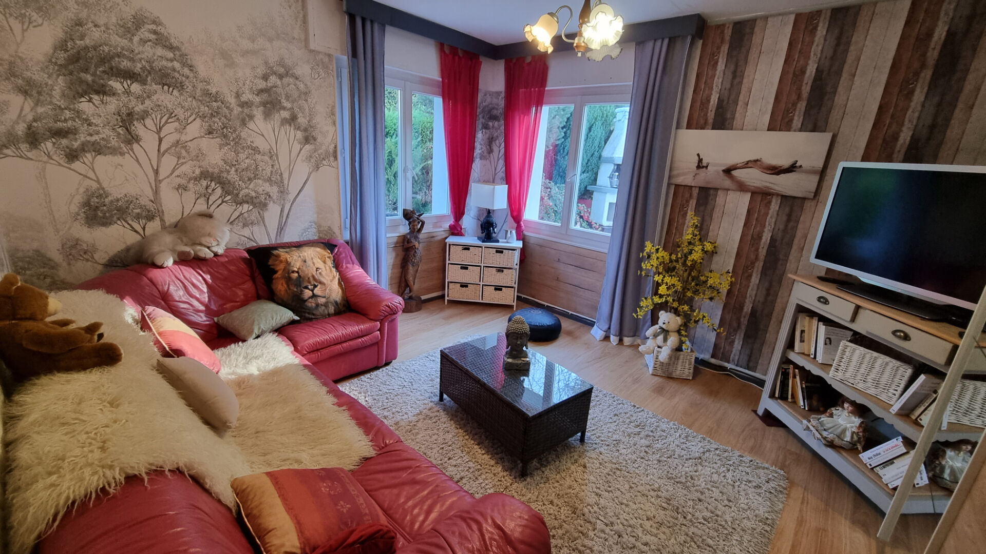 Pavillon de 1970 en bon état général, proche écoles et commerces, dans un quartier calme avec vue dominante, rénové avec isolation extérieure ( double vitrage - pompe à chaleur air/air - toiture - tableau électrique - etc ) comprenant au rez de chaussée surélevé, hall d'entrée, cuisine aménagée, salon-séjour avec cheminée avec accès terrasse exposée Sud et jardin avec vue panoramique, 2 chambres, salle d'eau, wc ( tout à l'égoût ), à l'étage, 1 chambre, salle d'eau équipée avec wc, greniers. Au sous-sol, garage, buanderie, 2 pièces, local bois. Cour macadam avec carport, portail électrique. Terrain attenant clôturé d'une surface de 930 m². Taxe foncière 2024 : 1346 euros