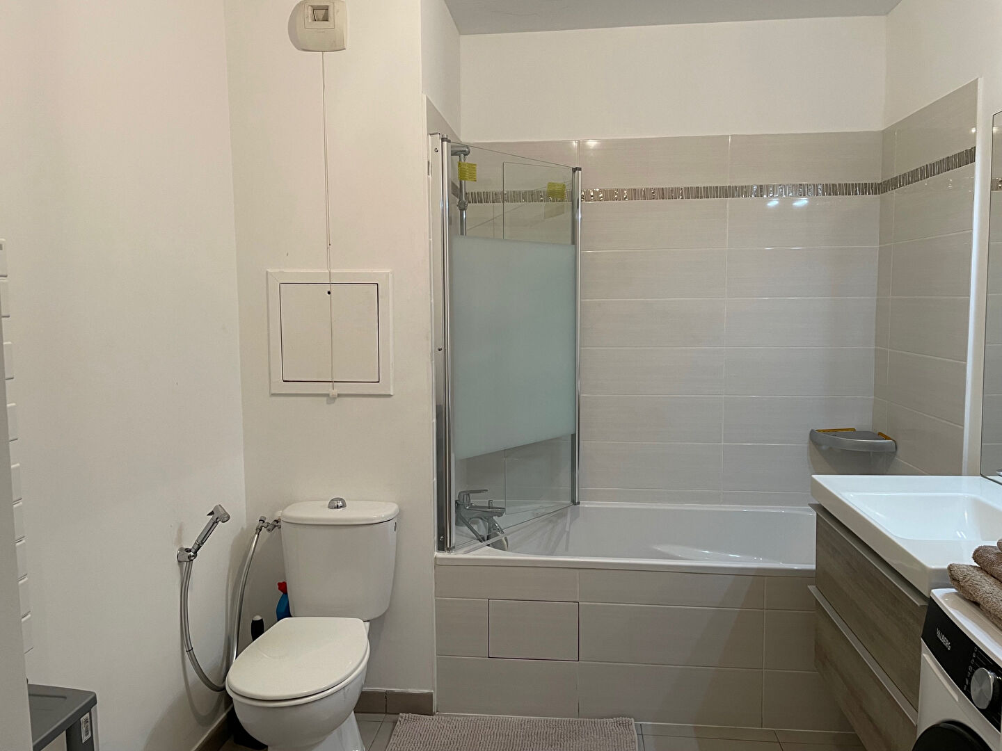436, Avenue du Général de Gaulle. Beau 2 pièces de 45,80 m² situé au 3ème étage sur 5 d'une copropriété récente de 2019. Ce bien, situé à proximité immédiate de la station de Tram du Pavé-Blanc (T6) et de toutes les commodités (boulangerie, supermarché, restaurants, médecins, écoles...), comprend : entrée de 4,32 m² avec placard, séjour de 22,74 m² avec cuisine aménagée et équipée (plaques à induction, hotte, four, lave-vaisselle, réfrigérateur-congélateur...) exposé Sud-Est sur balcon-loggia de 3,09 m², grande chambre de 13,01 m² avec un lit de 160 X 200 cm, rangements et placard, salle de bains avec wc de 5,73 m². Un parking en sous-sol. Charges prévisonnelles annuelles = 1.660 euros comprenant : Syndic professionnel, Chauffage collectif au gaz par radiateurs réglables individuellement, ascenseur, parking, entretien des parties communes, sortie des poubelles... (3.36 % honoraires TTC à la charge de l'acquéreur.) Copropriété de 160 lots - dont 80 lots habitation. Charges annuelles : 1660 euros.
