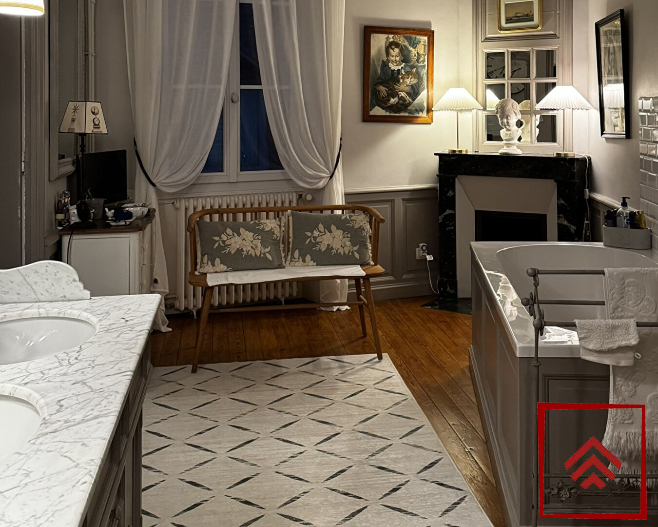Demeures du Perche et de Normandie vous dévoile, un élégant hôtel particulier des XVIIème, XVIIIème et XIXème siècles, situé dans l'un des quartiers les plus prisés du centre de d'Alençon. A quelques pas du château des ducs d'Alençon, cette demeure de charme présente une architecture typique dont le premier acte connu date du XVIIème siècle avec la construction d'un logis en pierre, suivi aux XVIIIème et XIXème siècles, en retour de pignon, d'un hôtel particulier aux lignes sobres et élégantes. L'ensemble propose très belles prestations : parquets en chêne, point de Hongrie, cheminées en pierre / marbre, boiseries, escalier à visse, tomettes à cabochons, solives, hauteurs sous plafond agréables. D'une surface habitable d'environ 210 m², un escalier en pierre à double volée vous conduira à l'entrée principale de la demeure. Le rez-de-chaussée présente un hall d'entrée sur carreaux de travertin à cabochons, distribuant sur sa droite un chaleureux salon avec alcôve, sur sa gauche une salle à manger, un dégagement, puis en retour, une cuisine aménagée/équipée tournée sur le jardin (tomettes à cabochons, escalier à visse du XVIIème, solivage,). Vestiaire et toilettes. L'hôtel particulier propose à l'étage, côté nuit, un premier espace composé d'une chambre avec son bureau feutré, son dressing, sa salle de bains avec cheminée et des toilettes indépendantes. Le second espace propose une belle chambre de 18 m² avec sa salle de bains, toilettes et dressing. Le deuxième étage, sous combles, propose de vastes volumes avec greniers et anciennes chambres, parfaitement aménageables. Accessible par le dressing de la seconde chambre de l'hôtel particulier ou par un second escalier au départ de la cuisine, le logis d'origine propose au premier étage une troisième chambre avec sa salle d'eau/toilettes puis une quatrième chambre au second niveau également dotée de salle d'eau/toilettes. Petit grenier dessus. Caves sous la demeure principale, Dépendance mitoyenne avec une chaufferie et un garage couvert pour une voiture, Orientation sud-ouest, Chauffage gaz de ville, tout à l'égout, fibre, Jardin d'environ 200 m², en gazon et arboré d'un joli érable raffiné et d'aubépines, Portail électrique. Commerces, rues piétonnes, écoles et tous les autres services sont accessibles à pied, Gare d'Alençon à 5 minutes. Paris à 2 h 30, Le Mans à 45 minutes (Gare TGV), Sées est à 25 minutes et Mortagne-au-Perche, à 30. Les plages normandes à 1 h 20 et Le Mont-Saint-Michel, à 2 heures. Si vous souhaitez obtenir plus d'informations pour cet hôtel particulier de charme, nous sommes à votre entière disposition au 02.33.25.25.44