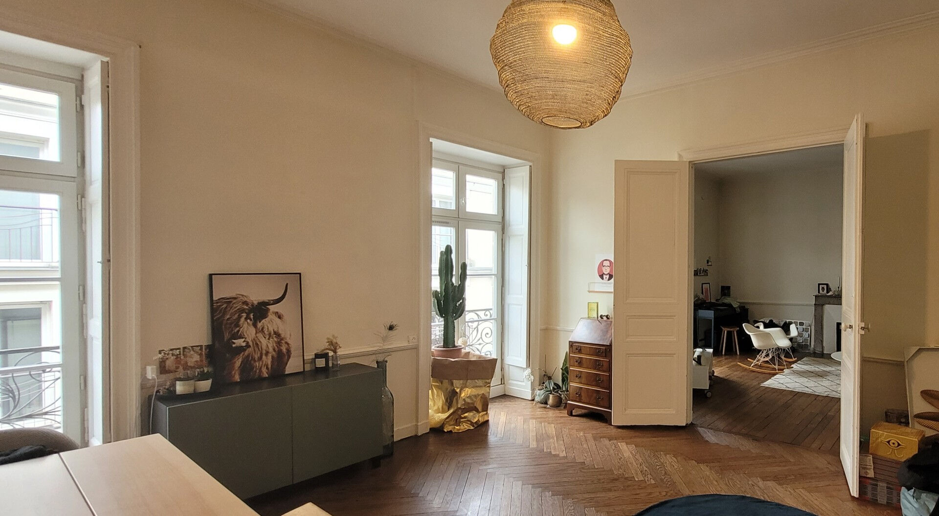 Centre, situation de 1er ordre (quartier Aristide-Radisson) pour cet appartement de charme situé au 2ème étage. Il se compose d'une entrée spacieuse avec wc, une grande cuisine aménagée, de 2 superbes pièces de réception en enfilade, sur parquet avec cheminée, 2 chambres au calme sur courette, un bureau (ou 3ème chambre de 8,75 au sol), et une salle de bains. Belle hauteur sous plafond (3,15m). Prévoir rafraichissement. A proximité immédiate des commerces, restaurants, bus-tram3 (arrêt J-Jaurès) et écoles, square Faustin Hélie. Contact tel 06 81 21 17 32. (3.69 % honoraires TTC à la charge de l'acquéreur.) Copropriété de 20 lots - dont 9 lots habitation. (Pas de procédure en cours). Charges annuelles : 1512 euros.