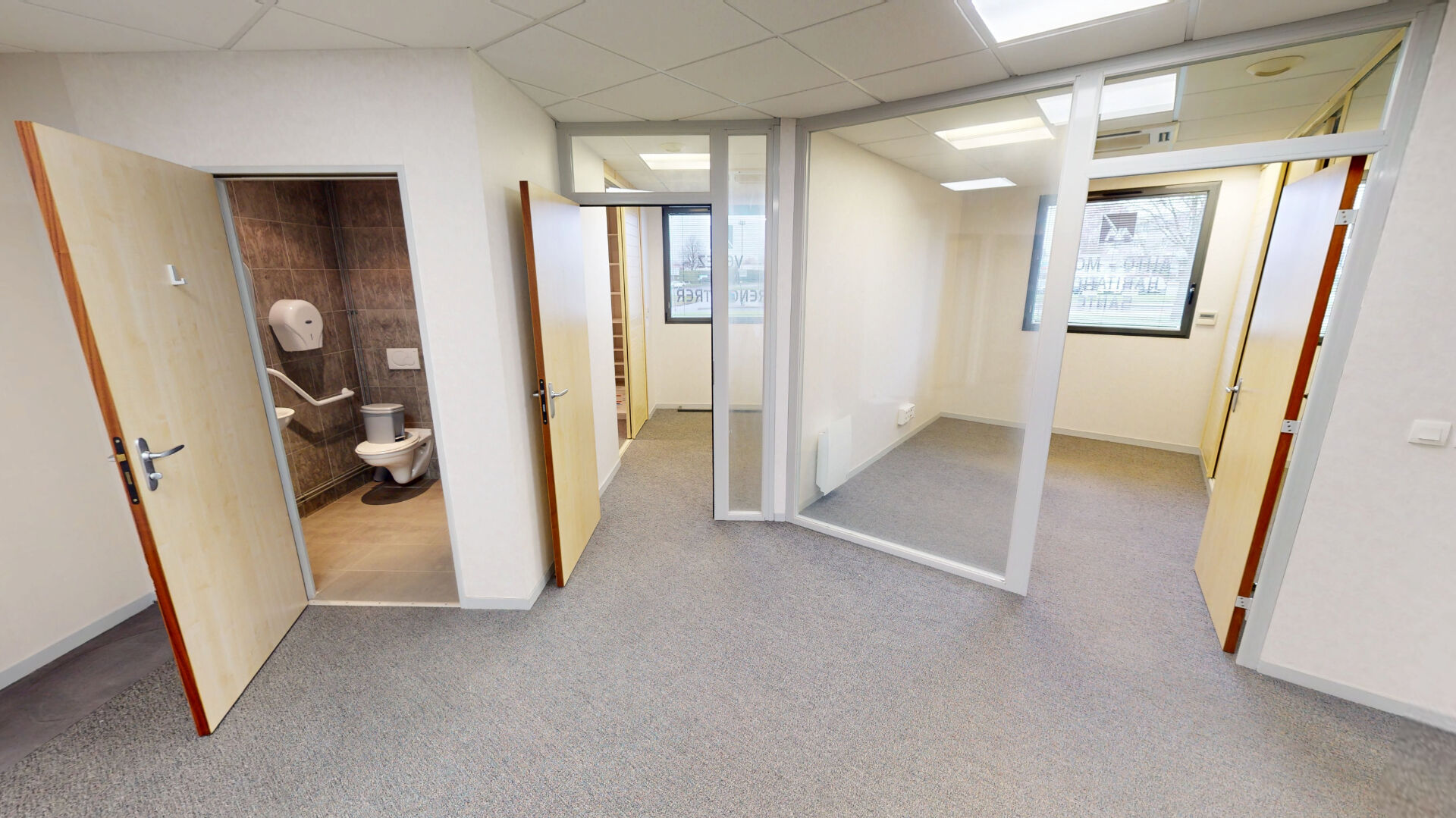 MURS COMMERCIAUX VENDUS LIBRES - 140 m2 - EMPLACEMENT N1 Rue du Particulier vous propose à la vente ces murs commerciaux, libres de locataire, de 140 m² au rez-de-chaussée dans un immeuble de 2006 en excellent état. Lumineux et spacieux, le local se compose d'une zone d'accueil, de 6 bureaux tous équipés d'un placard de rangement, d'une salle de pause, un coin imprimante, d'une baie de brassage et de 2 WC privatif dont 1 PMR. En complément une cave de 11,32 m2. Loué précédemment 1820 euros HT. Charges mensuelles facturées au locataire à titre de provision sur charges : 375 euros (électricité comprise). Grandes ouvertures double vitrage, accès PMR, 7 places privatives et cave privative. Bâtiment bien isolé - chauffage par le biais de radiateurs électriques. Idéalement situé dans un quartier dynamique avec visibilité directe du By-Pass de Bayeux, à proximité de commerces, restaurants, médecins et transports. Parc, crèche et hôpital accessibles rapidement. Éligible à la fibre, ce bureau est prêt à accueillir votre activité dans un cadre pratique et agréable. Ce bien est soumis au statut de la copropriété. Nombre de lots : 12 Aucune procédure en cours Montant annuel de la quote-part : 375 euros/mois Libre de toute occupation Honoraires à la charge du vendeur. Copropriété de 12 lots (Pas de procédure en cours). Charges annuelles : 4500 euros. Marlène MORICEAU (EI) Agent Commercial - Numéro RSAC : - .