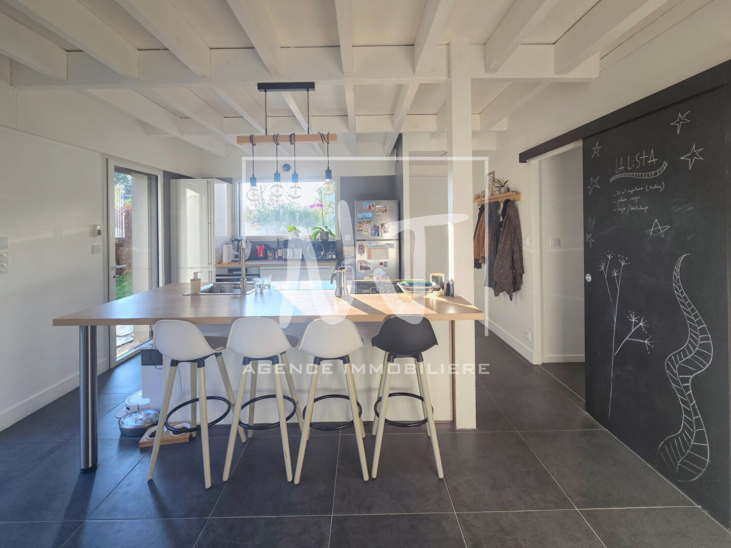 IDEAL FAMILLE Vous recherchez une belle maison familiale, avec un jardin, moderne et économique, cette maison est pour vous. Située sur la commune de Saint-Sylvain-d'Anjou, à proximité des commodités, cette maison de 2014 vous séduira par : - son architecture moderne - sa performance énergétique : DPE A - Sa belle pièce de vie lumineuse - Son jardin - Son potentiel avec ses 4 chambres et 2 bureaux La maison se compose au rez-de-chaussée d'une entrée, d'un dégagement avec placard, de WC, d'une chambre avec sa salle d'eau privative, d'une grande pièce de vie dotée d'immense baies vitrées, d'un poêle à granulés et d'une cuisine aménagée et équipée, A l'étage : un palier desservant 3 chambres (toutes avec un espace en mezzanine), 2 bureaux, 2 salles d'eau dont une avec WC Le jardin paysager dispose d'un grand cabanon de jardin et de 2 jolies terrasses. Ref : 1718O (5.00 % honoraires TTC à la charge de l'acquéreur.)