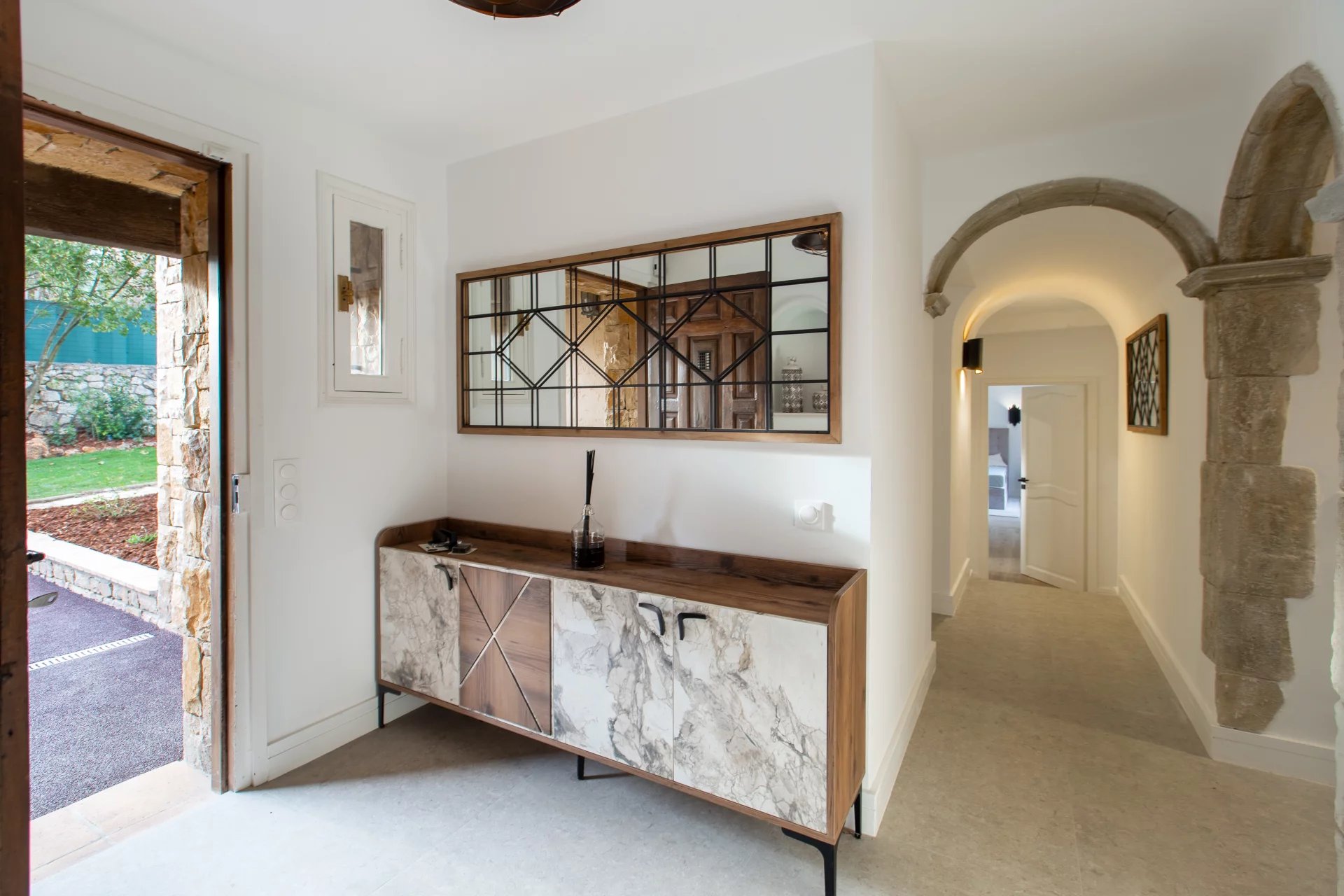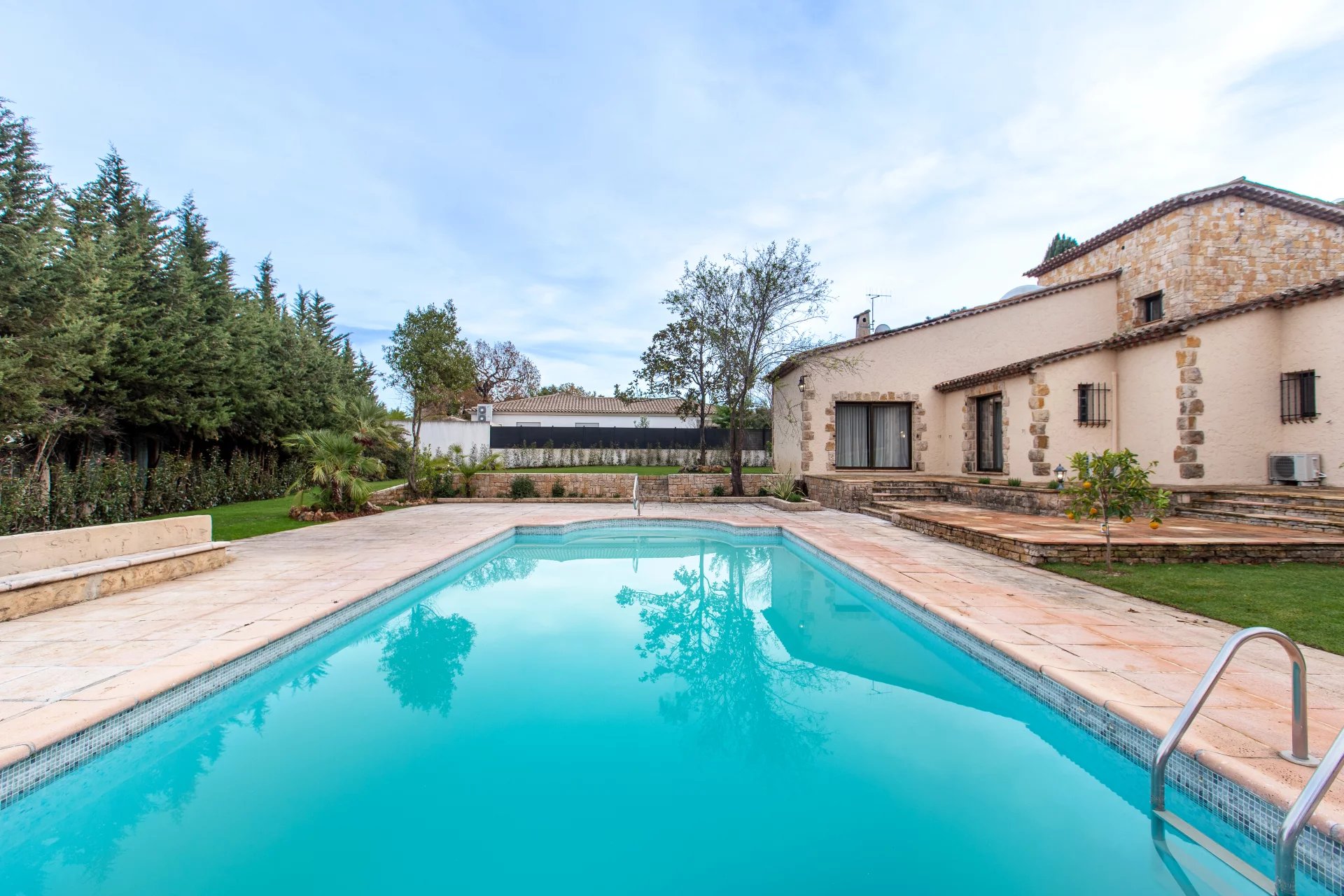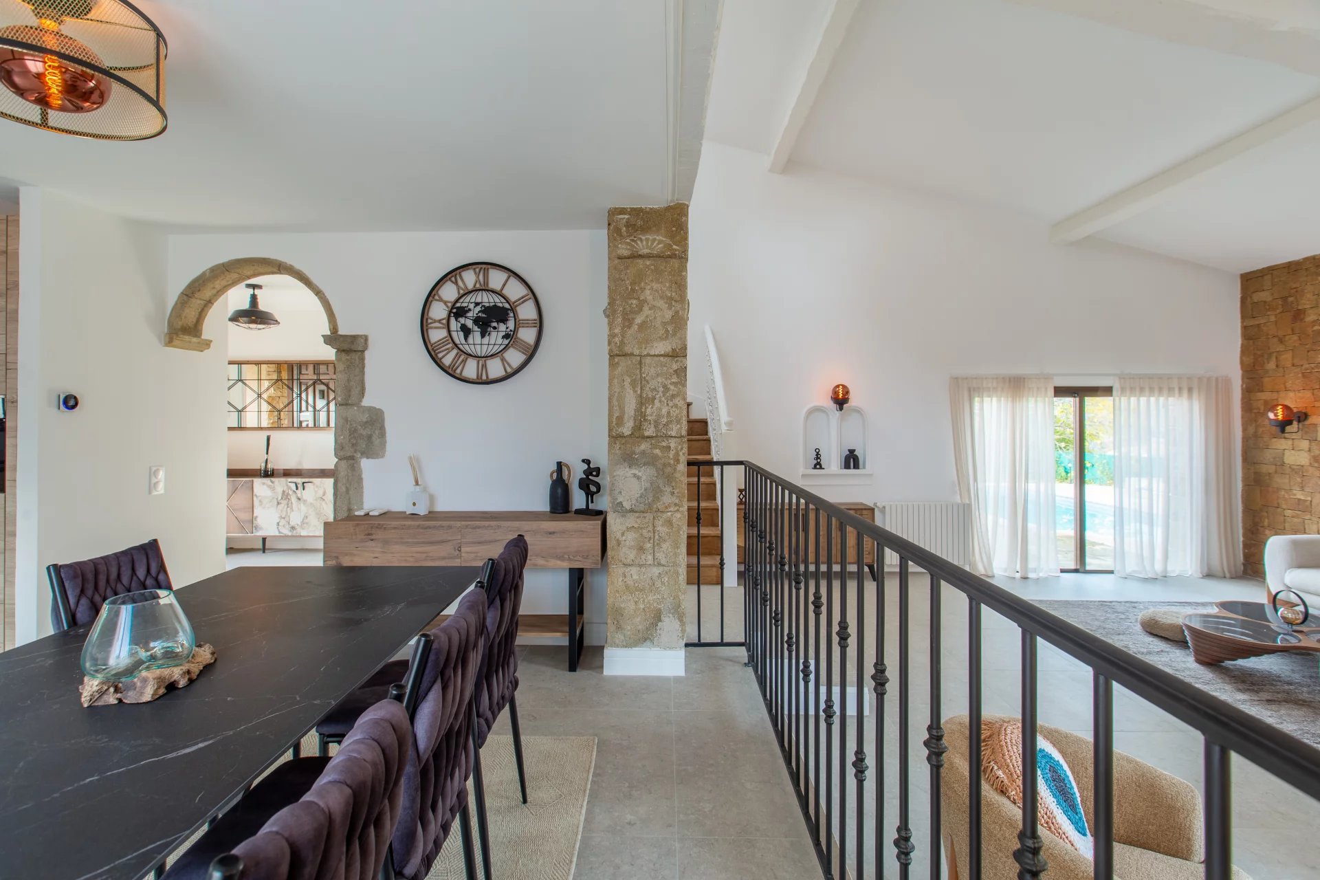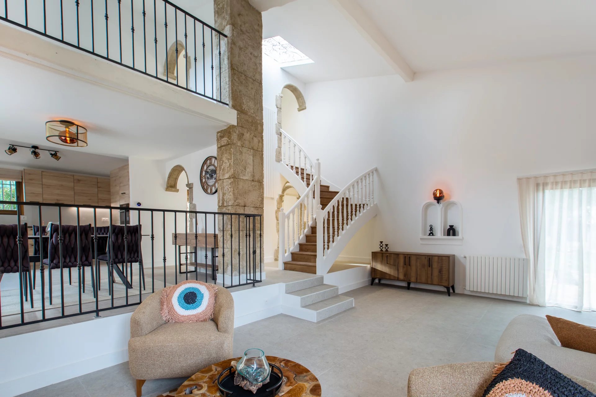 Sous offre - Située dans un environnement calme et résidentiel, à seulement quelques minutes du village de Valbonne, cette superbe maison de caractère de 170 m² habitables se trouve sur un beau terrain plat de 2 528 m², agrémenté d’une piscine et de nombreux arbres fruitiers. Entièrement rénovée avec goût et climatisée, la maison offre de beaux volumes et une grande luminosité. Elle se compose d'une entrée, d’un vaste séjour cathédrale avec cheminée, d’une cuisine ouverte avec salle à manger, d'une buanderie, et de trois chambres de plain-pied, dont une suite parentale. À l’étage, une mezzanine spacieuse dessert une quatrième chambre avec sa propre salle de douche. À l’extérieur : abri voiture et plusieurs places de stationnement. Informations sur les risques disponibles sur : georisques.gouv.fr