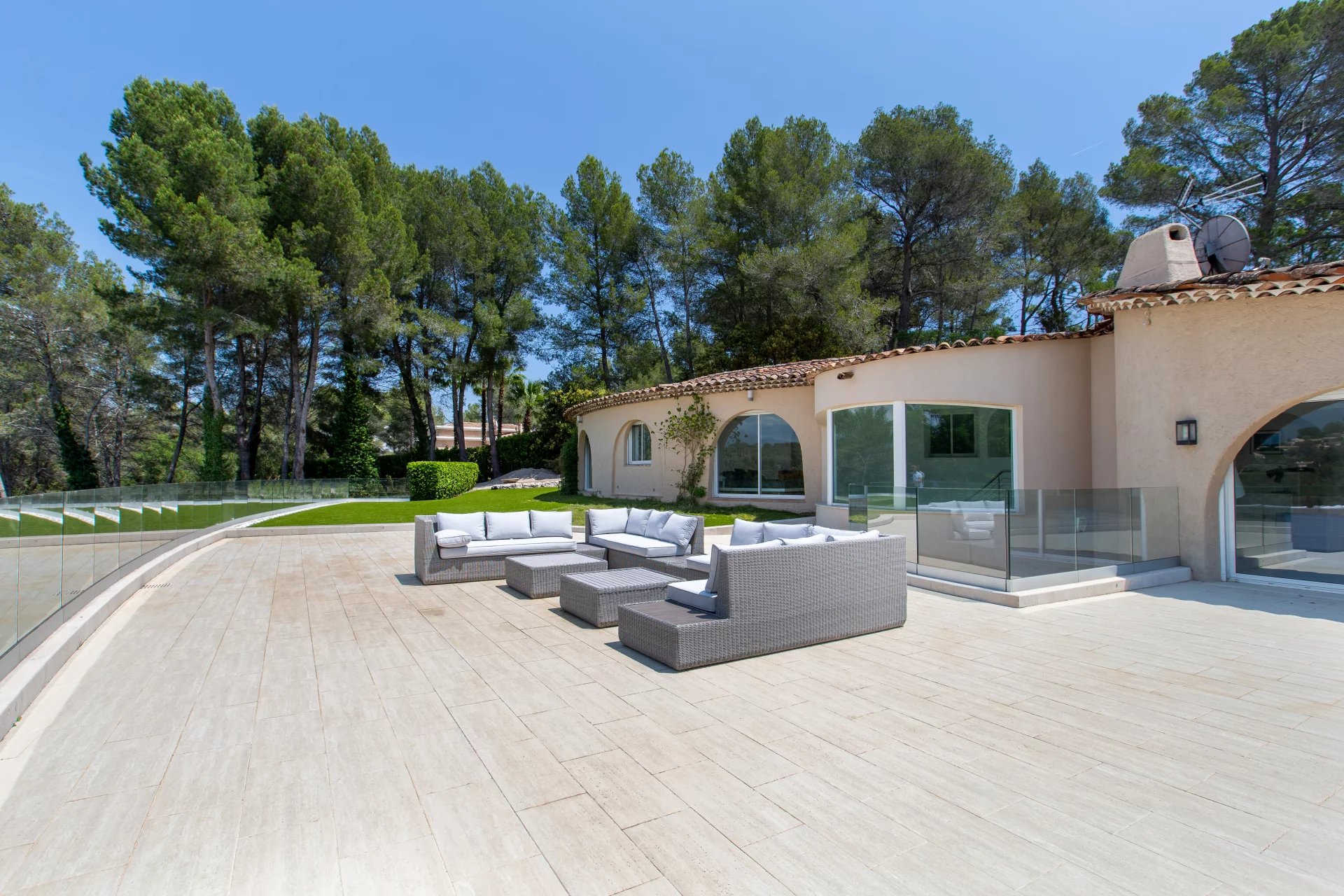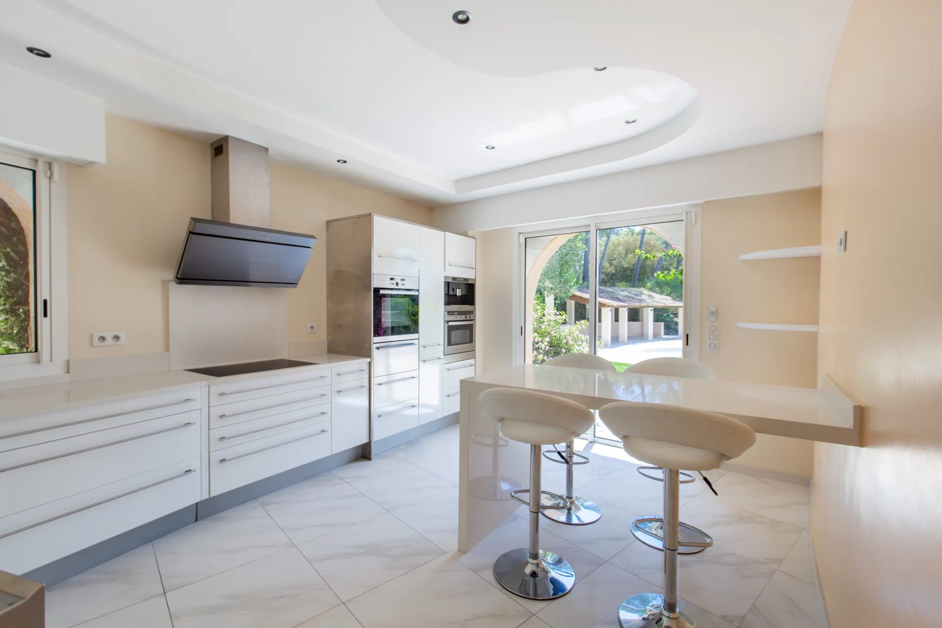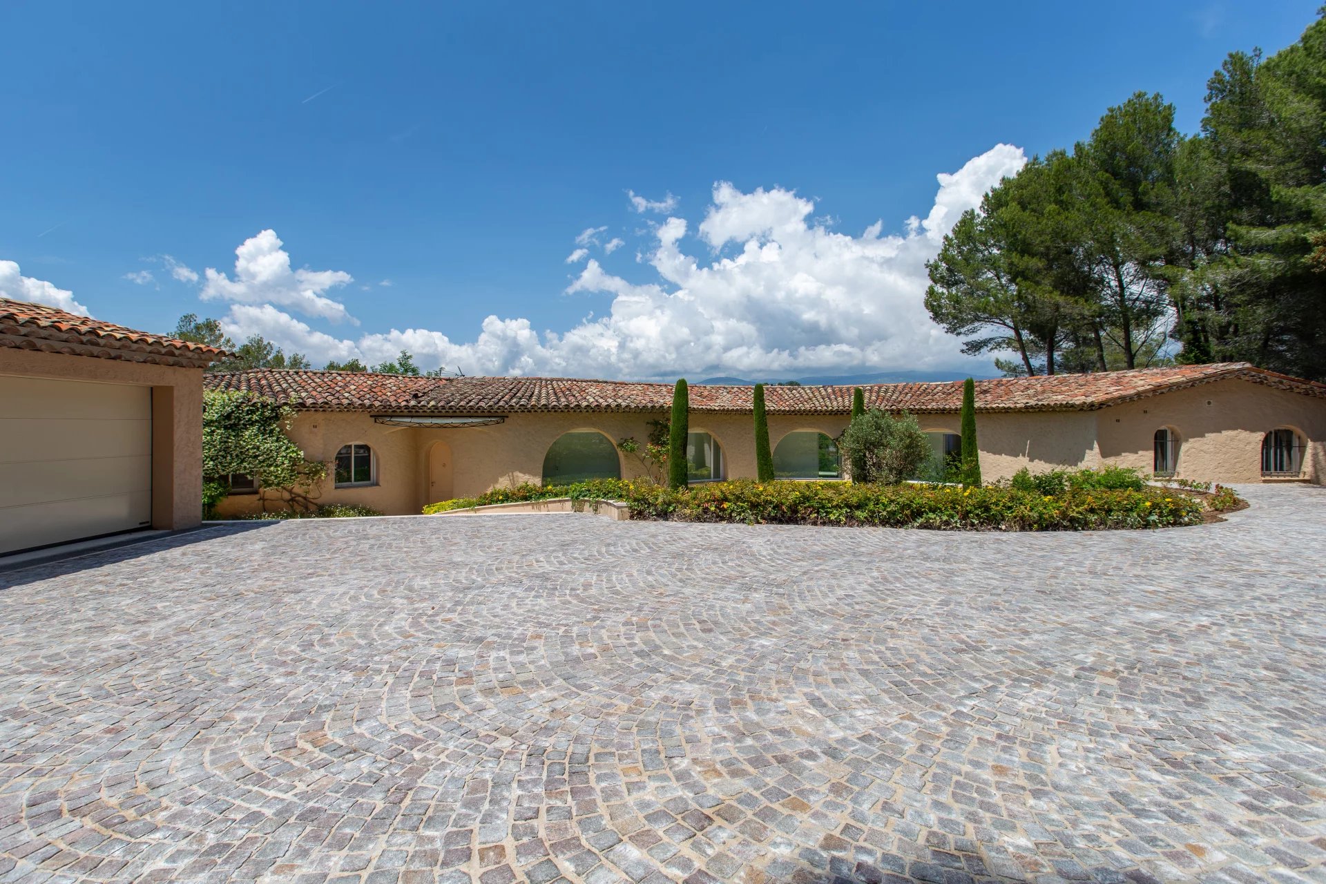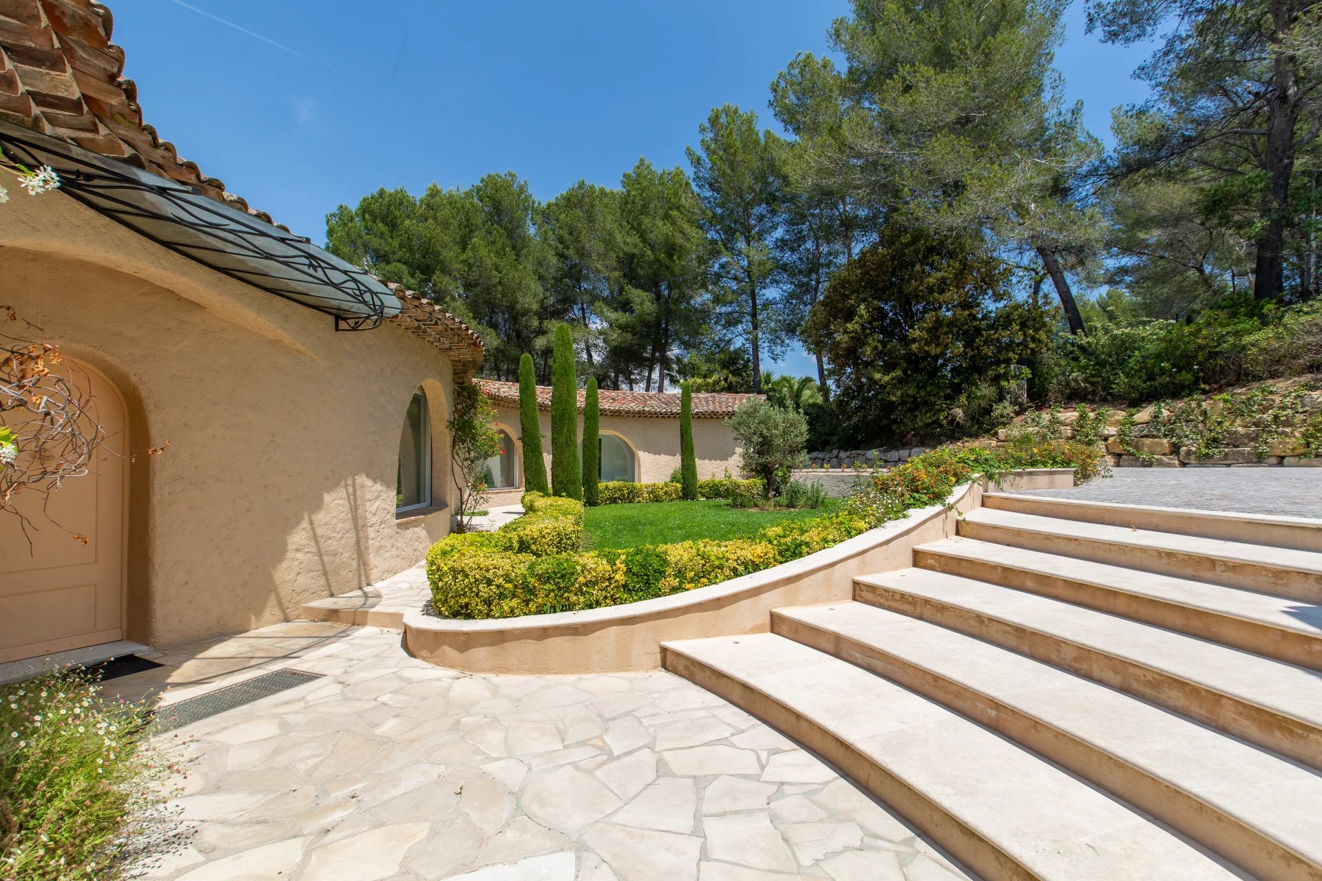 Située dans un environnement résidentiel prisé et calme, à quelques minutes de Mougins et Mouans-Sartoux, cette villa de prestige de 540 m² offre une vue panoramique sur le Château de Castellaras et s’étend sur un parc paysager d’un hectare avec piscine, jacuzzi et pool-house. Bâtie dans un style provençal élégant et entièrement entretenue, la propriété se compose de deux niveaux indépendants reliés par deux escaliers intérieurs, permettant la création de trois logements autonomes. Elle comprend un vaste séjour lumineux avec cuisine ouverte, 8 chambres dont plusieurs suites avec salle de bains et dressing, une salle de sport, une buanderie, ainsi qu’une dépendance aménagée. À l’extérieur, les terrasses plein sud, les jardins fleuris et le calme absolu offrent un cadre de vie exceptionnel. Double garage, nombreux stationnements et prestations haut de gamme : climatisation, cheminée, stores électriques, éclairage extérieur. Idéale pour une grande famille ou une résidence secondaire de prestige. Prix : 3.890.000 € – Honoraires à la charge du vendeur Informations sur les risques : georisques.gouv.fr
