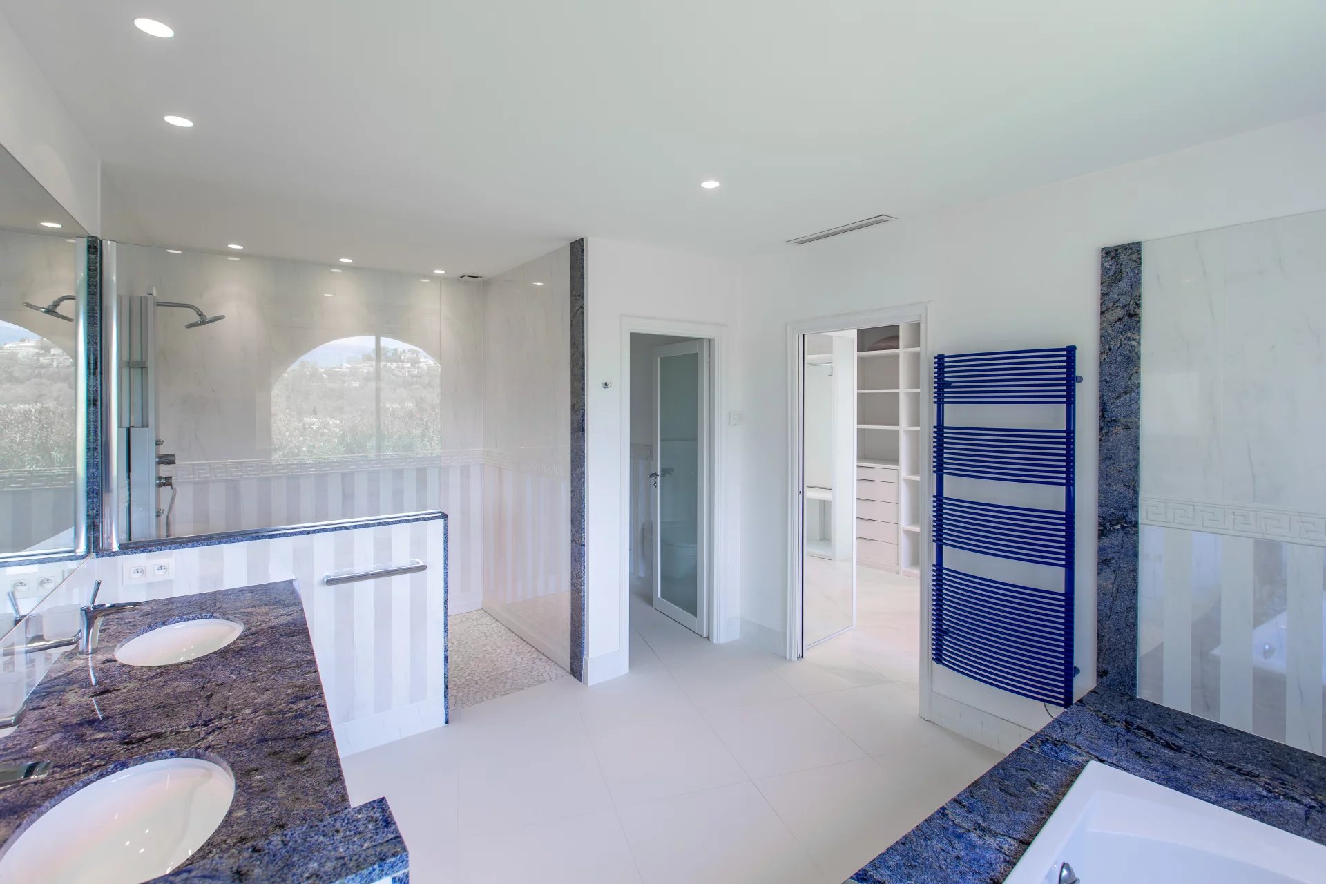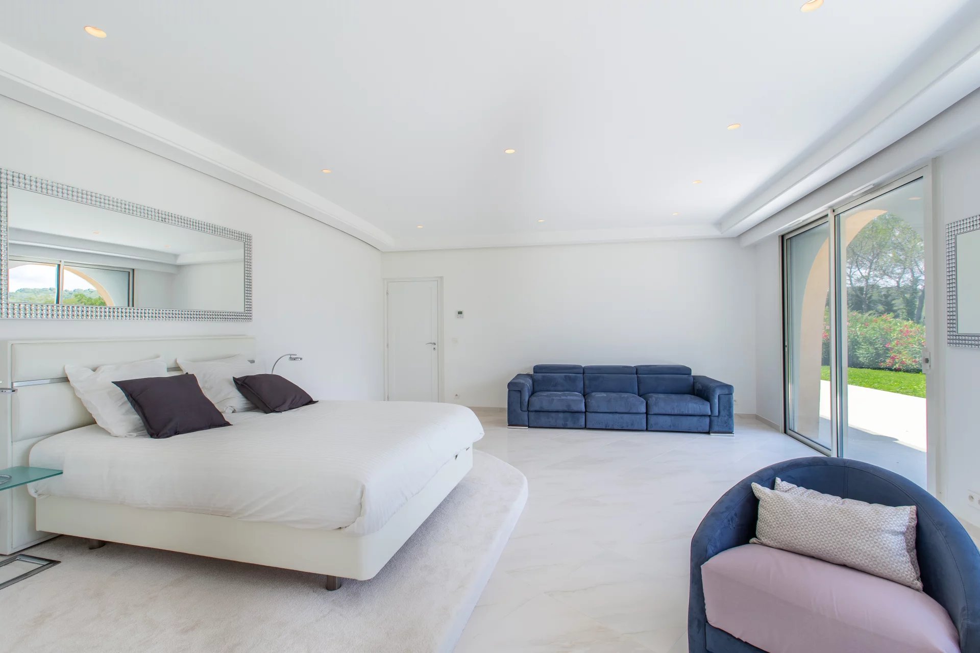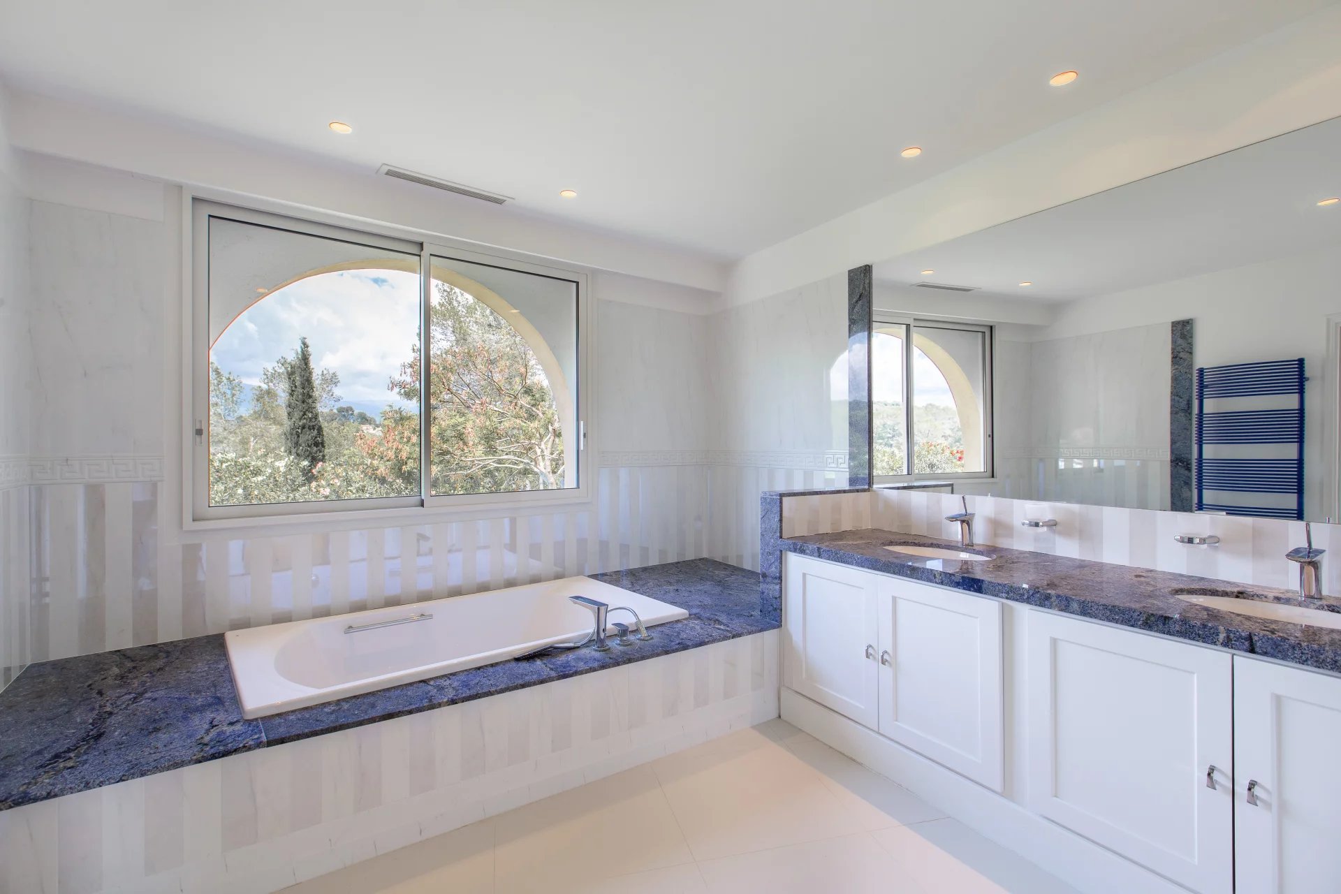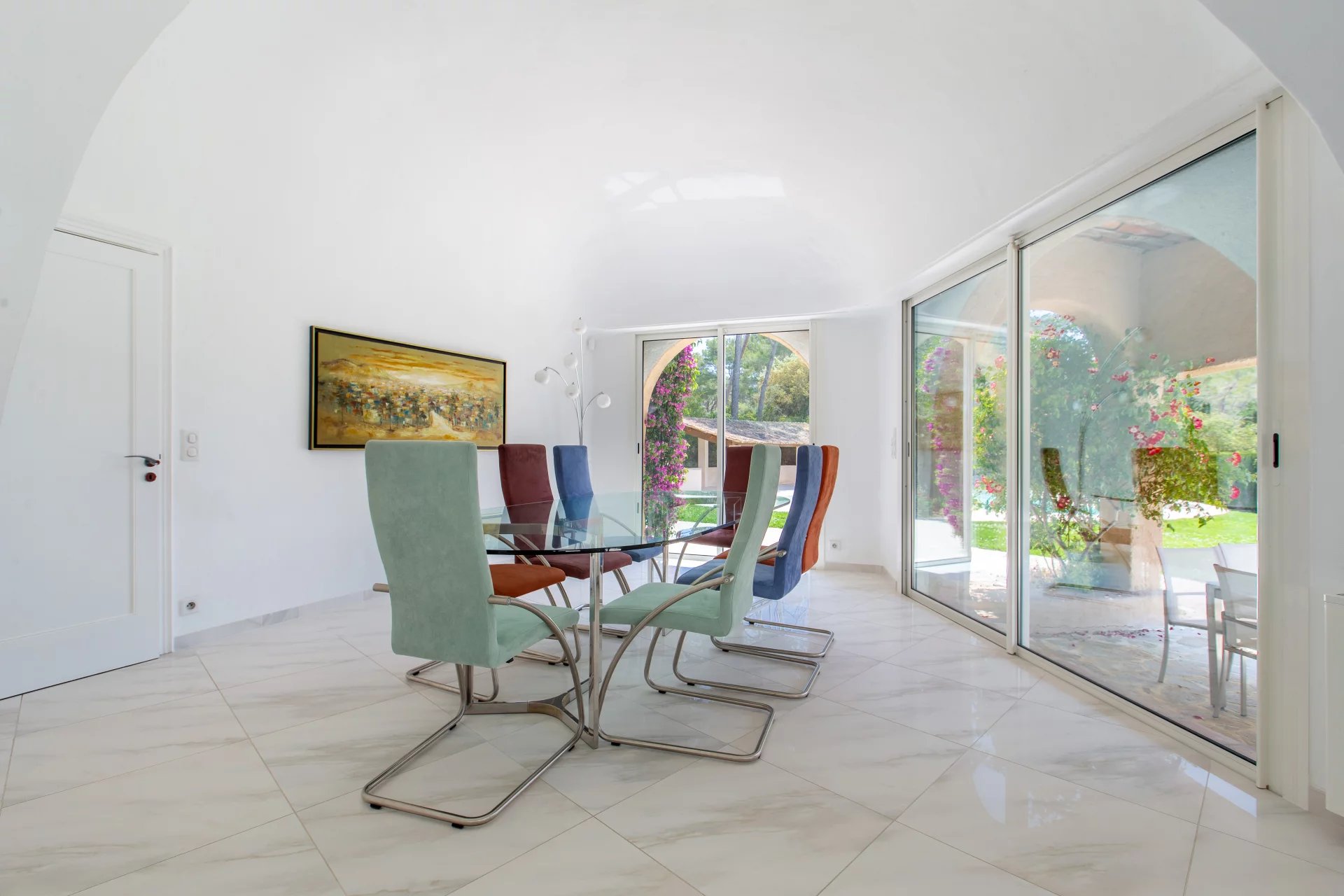Située dans un environnement résidentiel prisé et calme, à quelques minutes de Mougins et Mouans-Sartoux, cette villa de prestige de 540 m² offre une vue panoramique sur le Château de Castellaras et s’étend sur un parc paysager d’un hectare avec piscine, jacuzzi et pool-house. Bâtie dans un style provençal élégant et entièrement entretenue, la propriété se compose de deux niveaux indépendants reliés par deux escaliers intérieurs, permettant la création de trois logements autonomes. Elle comprend un vaste séjour lumineux avec cuisine ouverte, 8 chambres dont plusieurs suites avec salle de bains et dressing, une salle de sport, une buanderie, ainsi qu’une dépendance aménagée. À l’extérieur, les terrasses plein sud, les jardins fleuris et le calme absolu offrent un cadre de vie exceptionnel. Double garage, nombreux stationnements et prestations haut de gamme : climatisation, cheminée, stores électriques, éclairage extérieur. Idéale pour une grande famille ou une résidence secondaire de prestige. Prix : 3.890.000 € – Honoraires à la charge du vendeur Informations sur les risques : georisques.gouv.fr