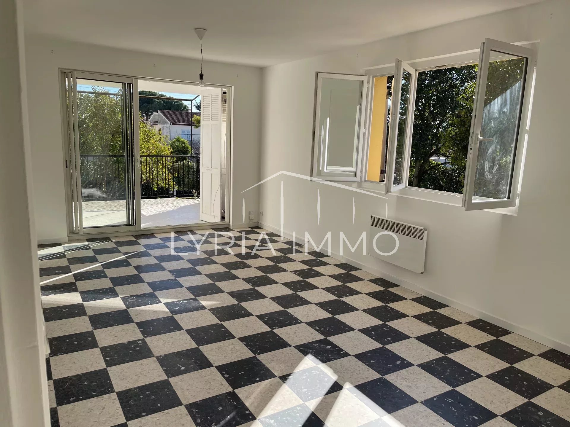 Situé dans le quartier Villeneuve à Fréjus, cet appartement en haut de villa d’environ 76 m² dispose d'un séjour donnant sur une terrasse ainsi qu'un jardin clos d'une superficie d'environ 230 m², d'une cuisine séparée, de deux chambres, d'un bureau, d'une salle de douche ainsi que d'un WC indépendant.