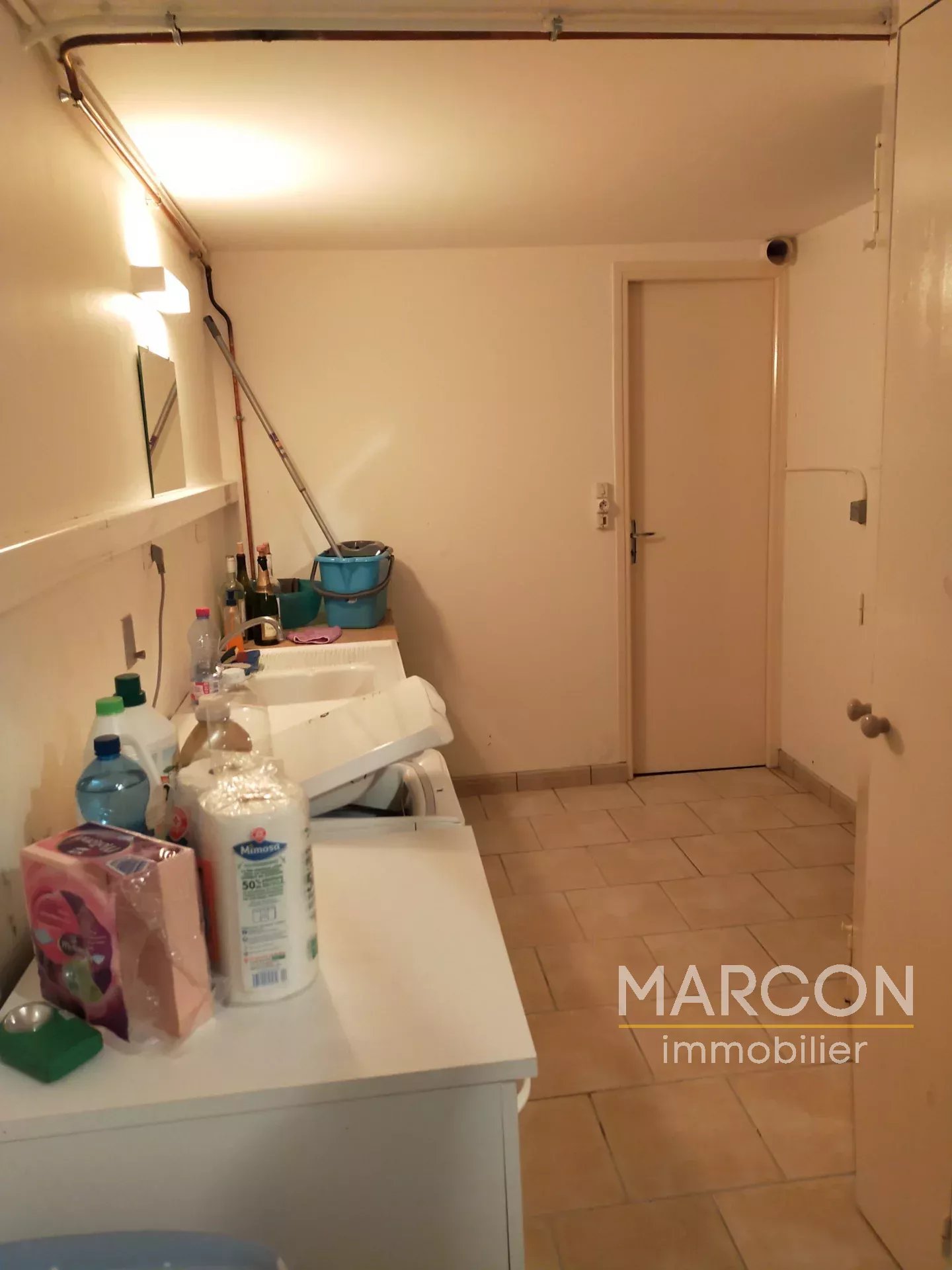 Au sous-sol : une buanderie, un cellier, deux pièces pouvant servir de chambres d'appoint ou de bureau, une salle d'eau / wc aménagée récemment et un grand garage carrelé.